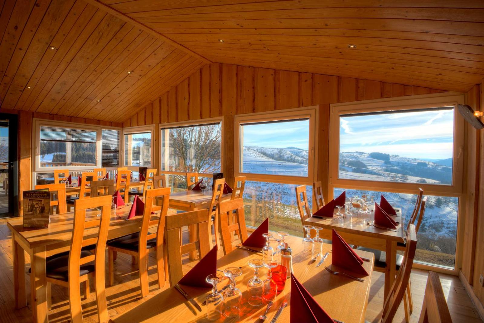 Experience modern comfort in a traditional mountain setting at Logis Hotel Beauséjour. Enjoy beautifully renovated rooms with picturesque views of the green surroundings.