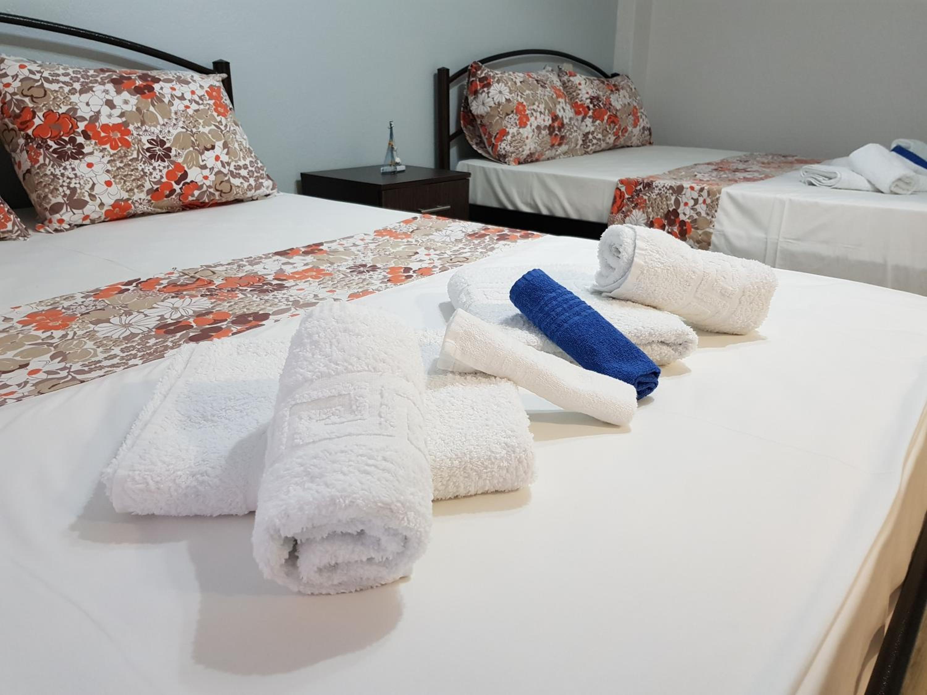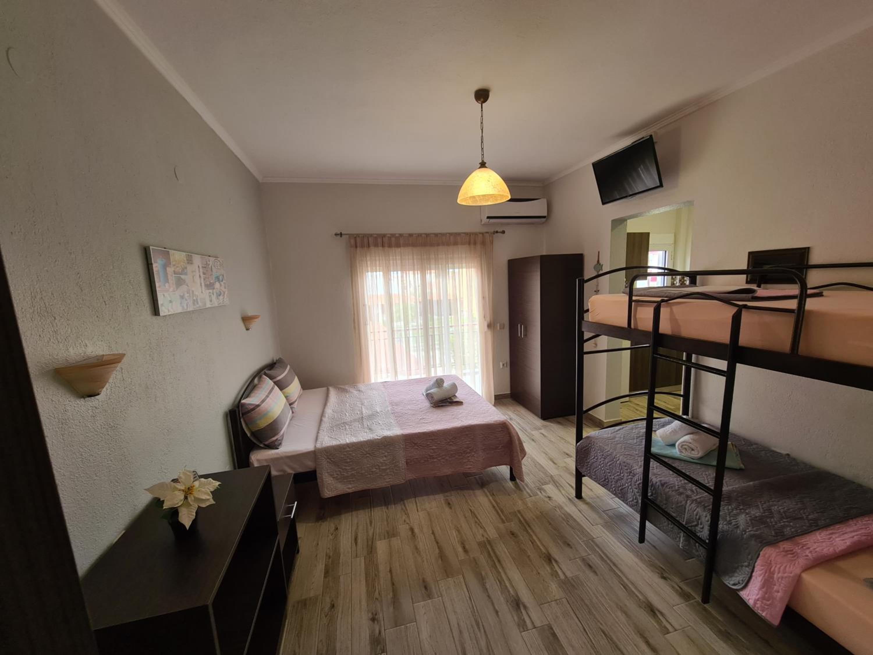 Modern Comforts: Enjoy air conditioning, flat-screen TVs, and private bathrooms in every room. Some rooms even feature a fully equipped kitchen for added convenience.