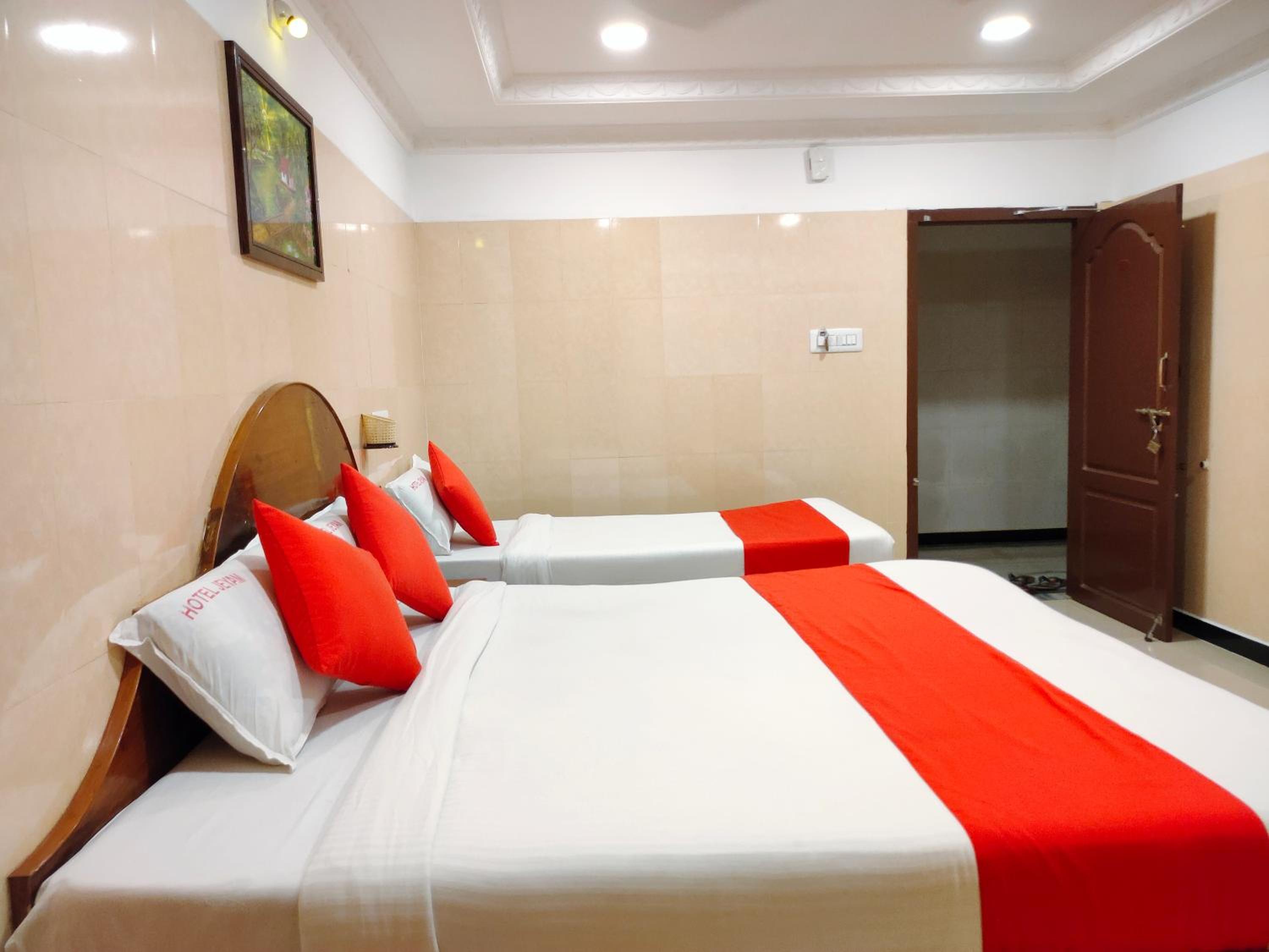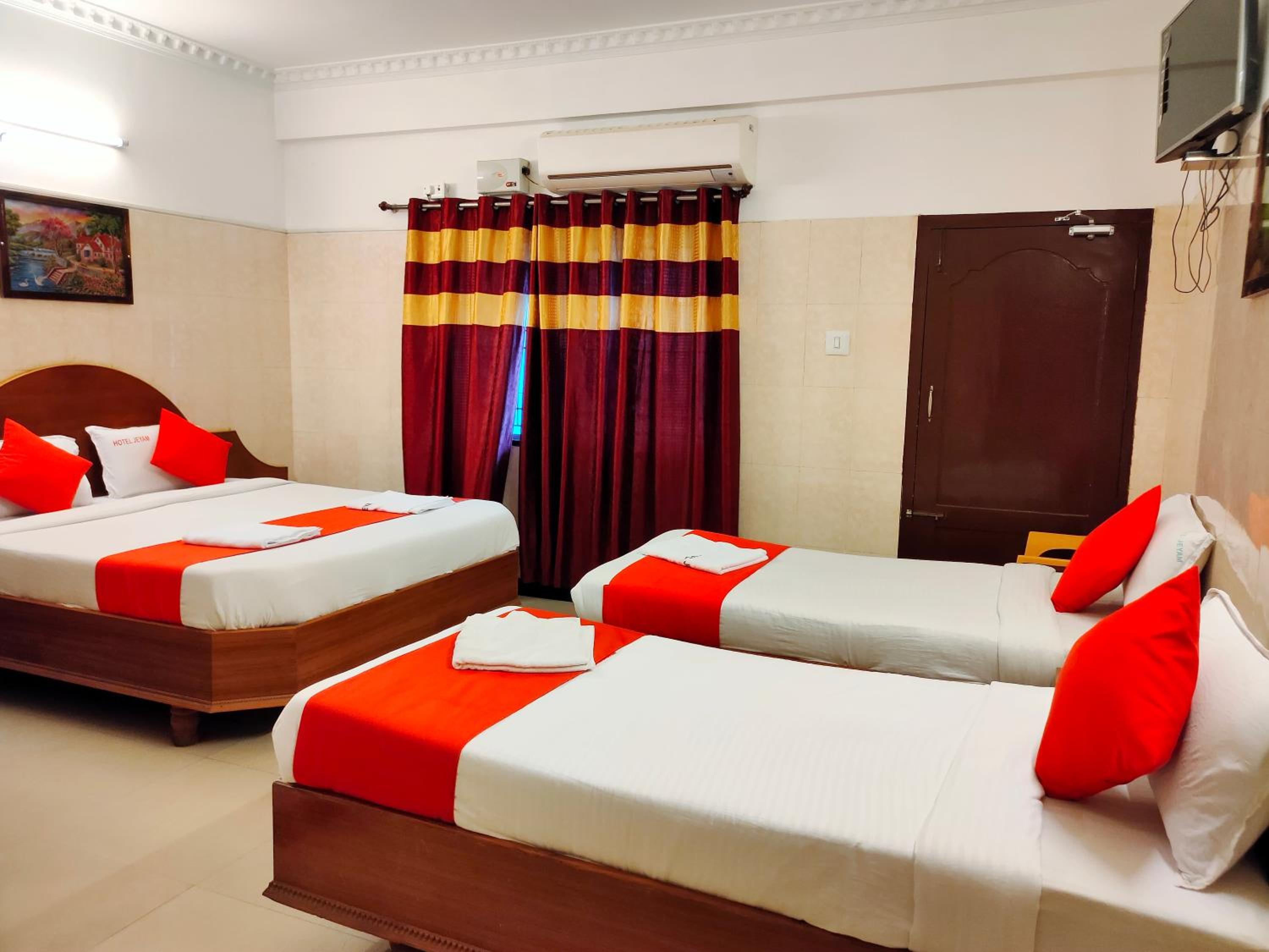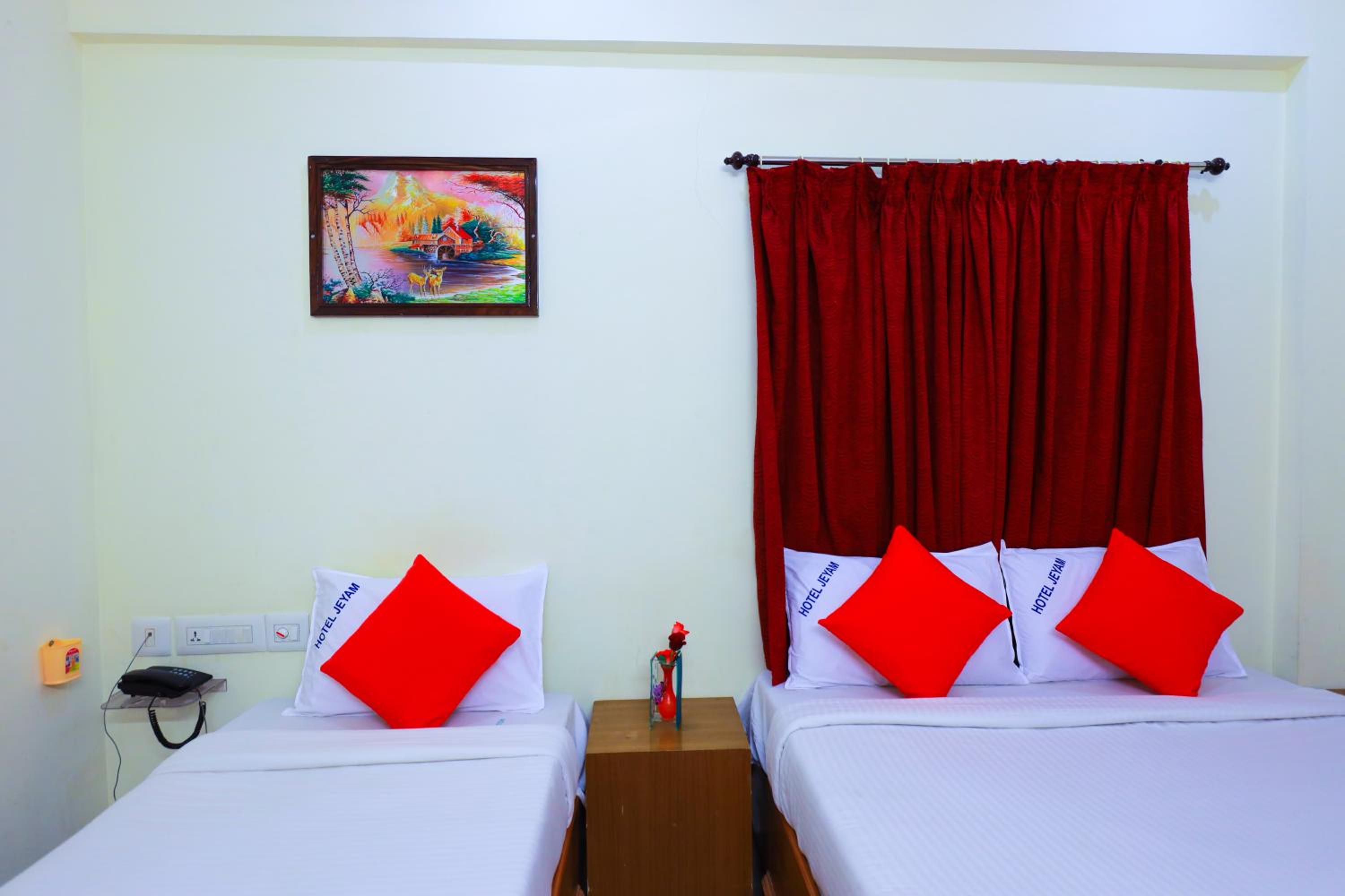 The guest rooms at Hotel Jeyam are elegantly designed, featuring amenities like a flat-screen TV, air conditioning, and a private bathroom with free toiletries. Some rooms even boast a terrace for guests to unwind and enjoy the view. The hotel ensures a cozy stay with quality bed linen and towels provided in each room.