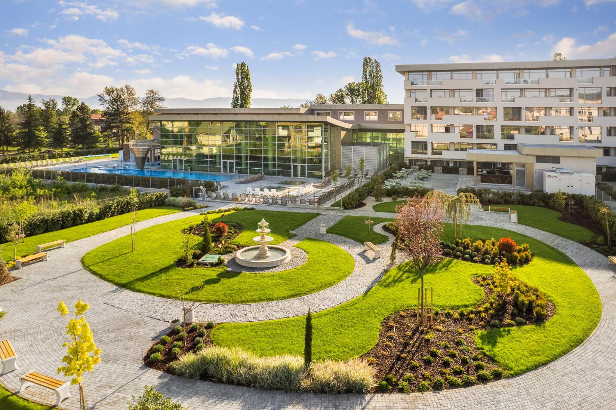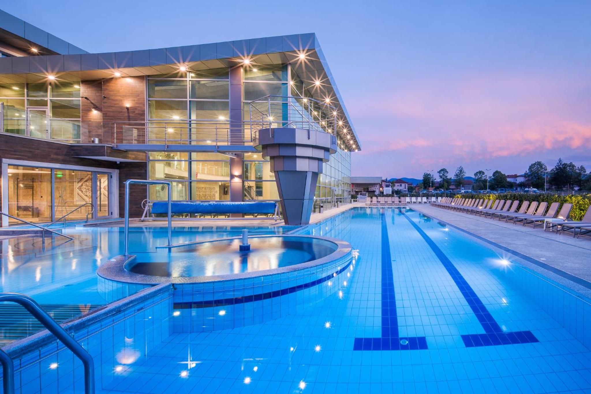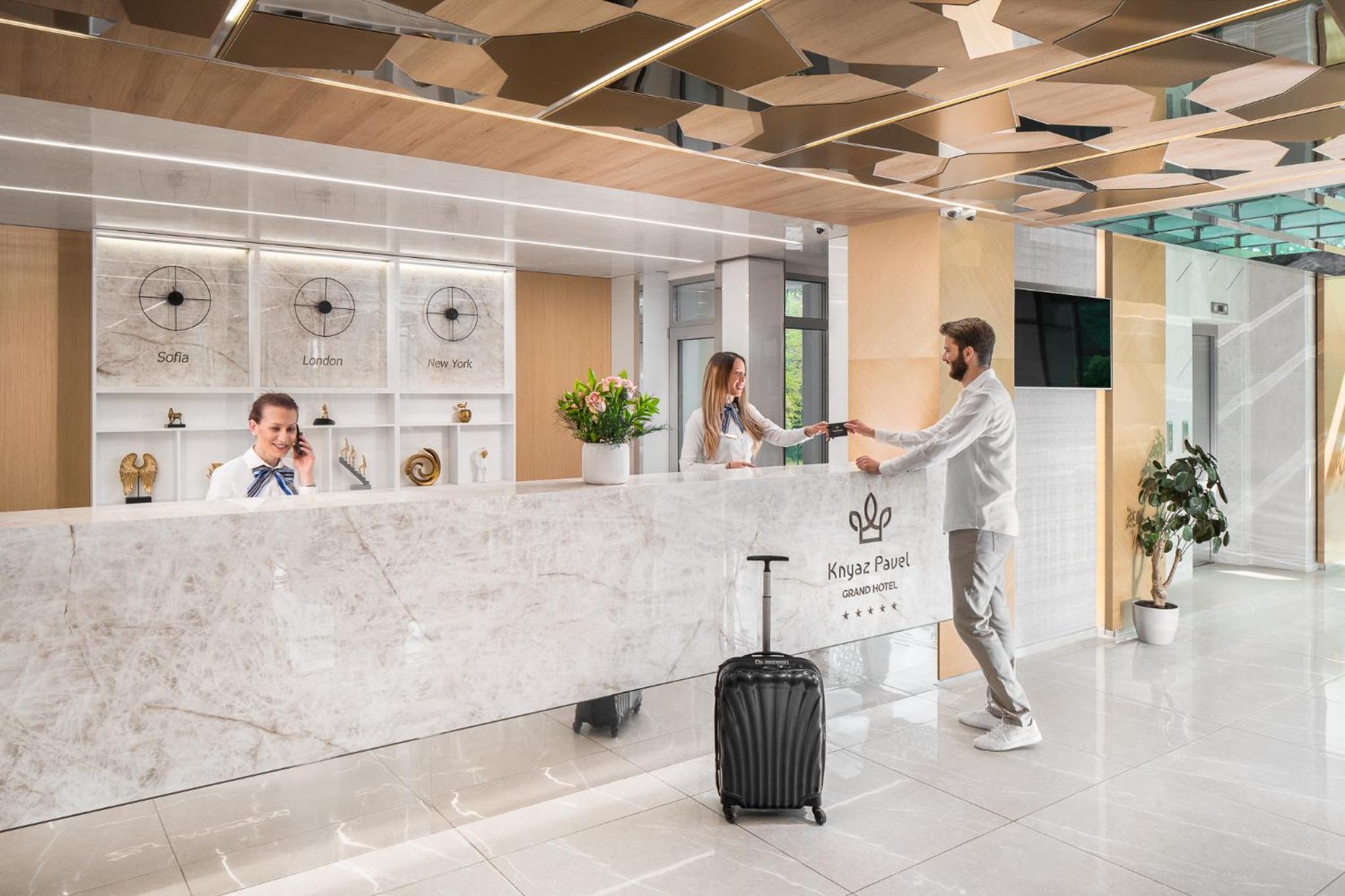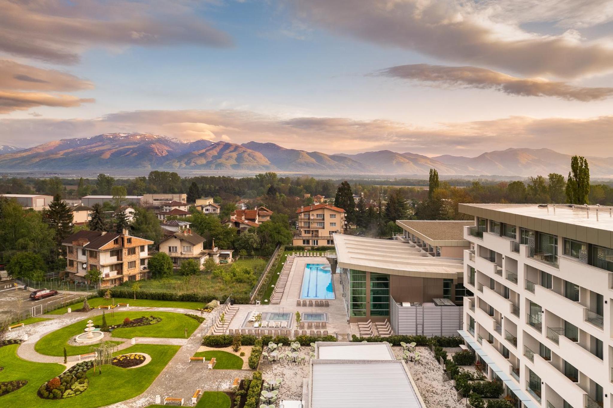Гранд Хотел Княз Павел in Pavel Banya offers a 5-star experience with air-conditioned rooms, free WiFi, and a spa with indoor pool, sauna, and hot tub. Enjoy city views from your balcony and modern conveniences like a coffee machine and flat-screen TV.