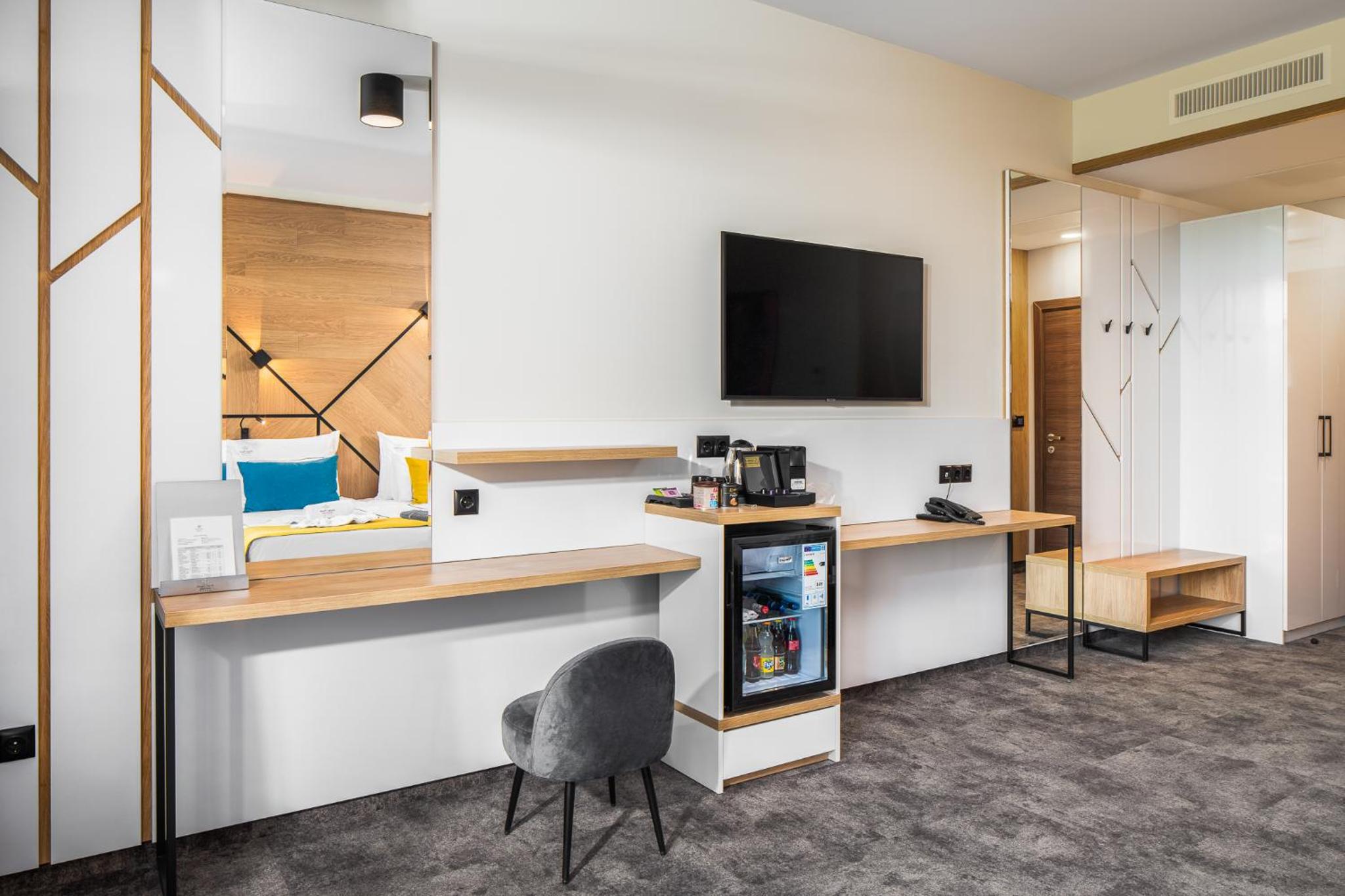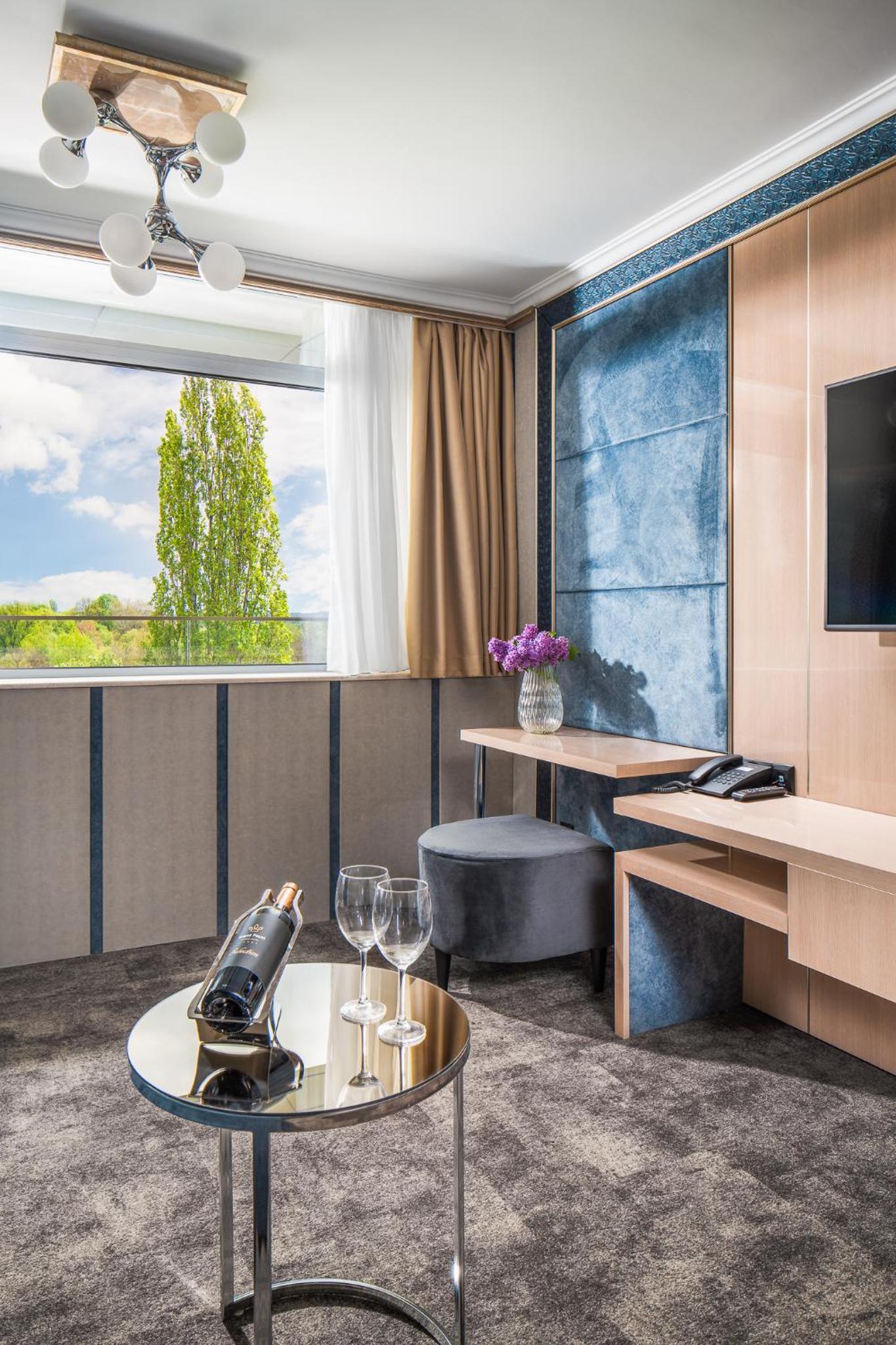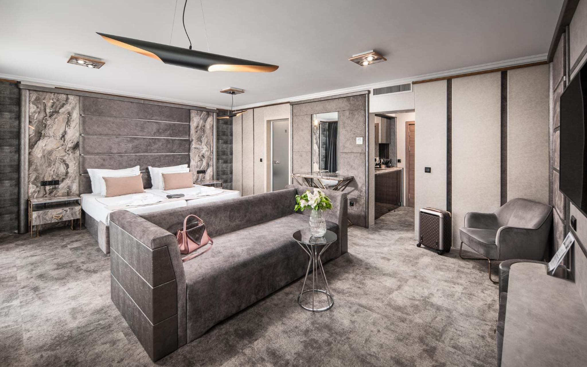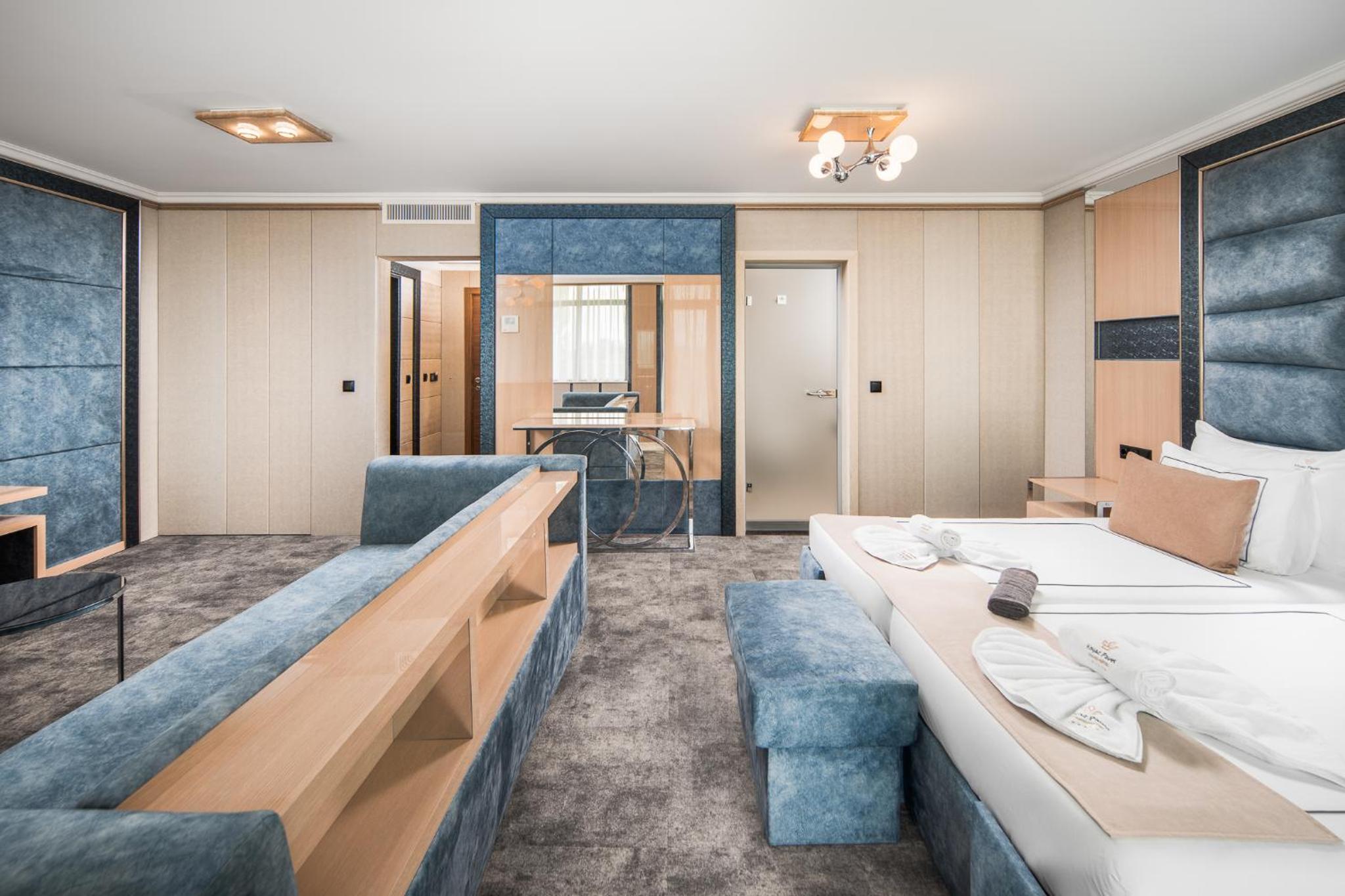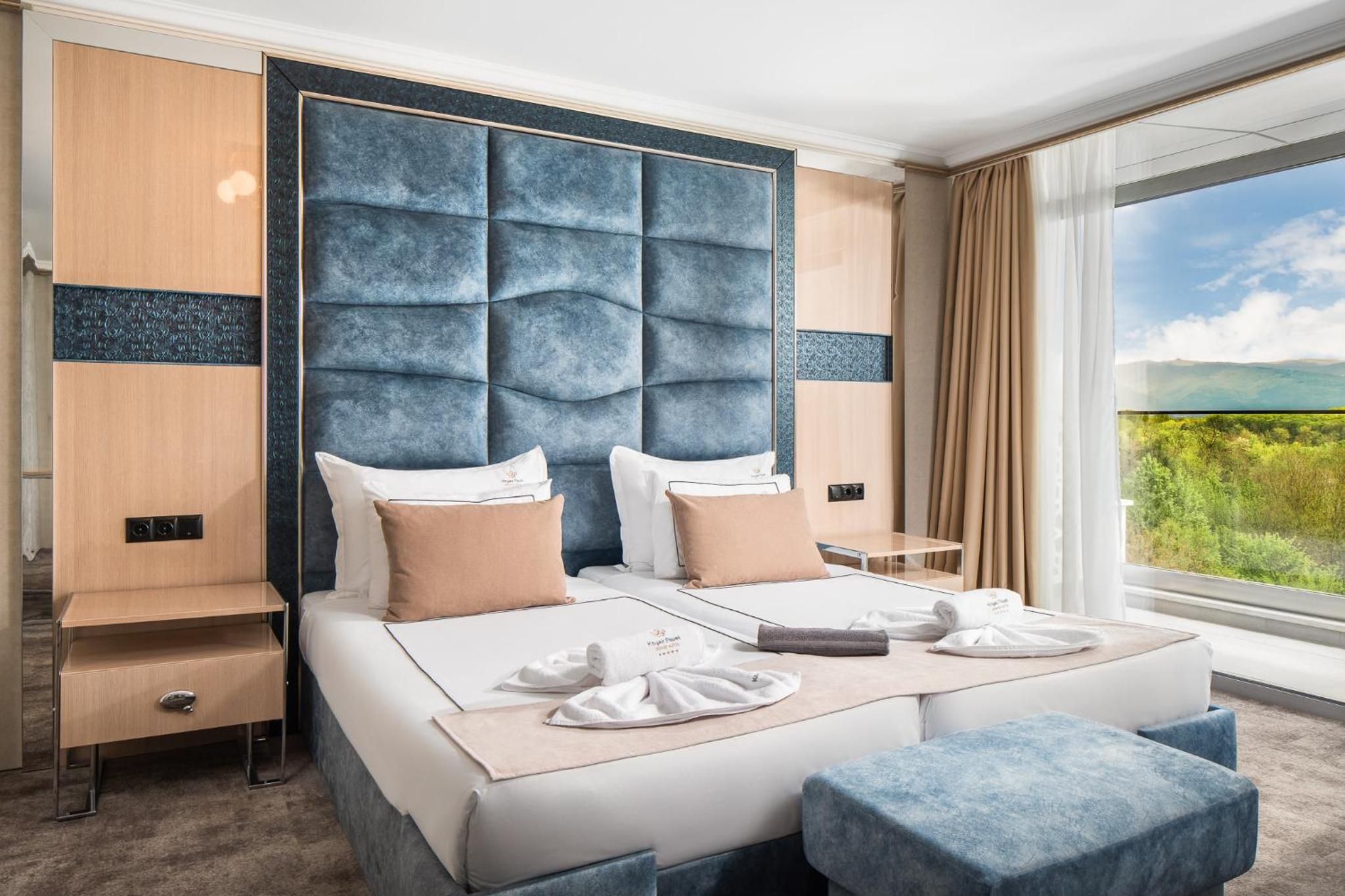 Гранд Хотел Княз Павел in Pavel Banya offers a 5-star experience with air-conditioned rooms, free WiFi, and a spa with indoor pool, sauna, and hot tub. Enjoy city views from your balcony and modern conveniences like a coffee machine and flat-screen TV.