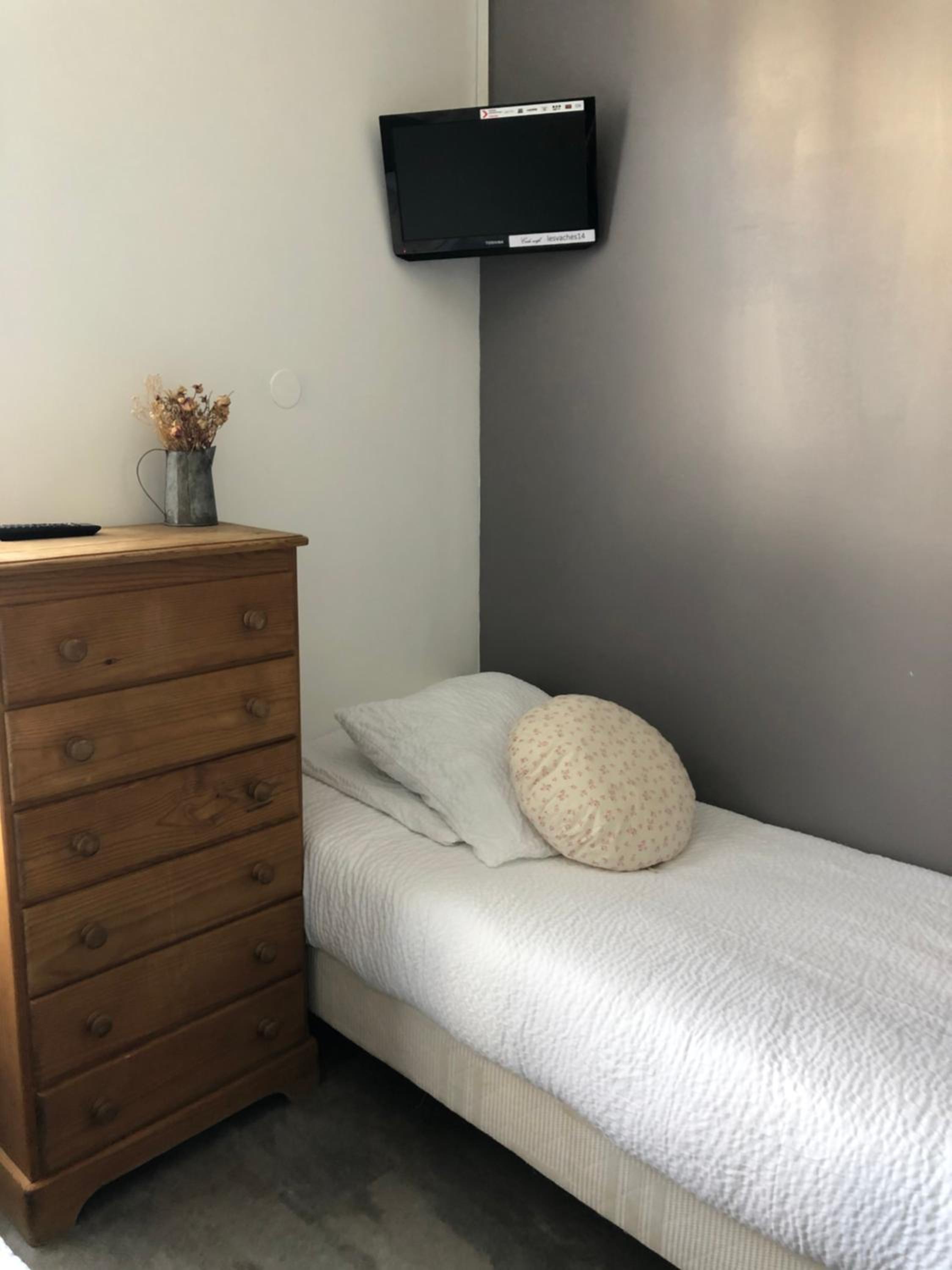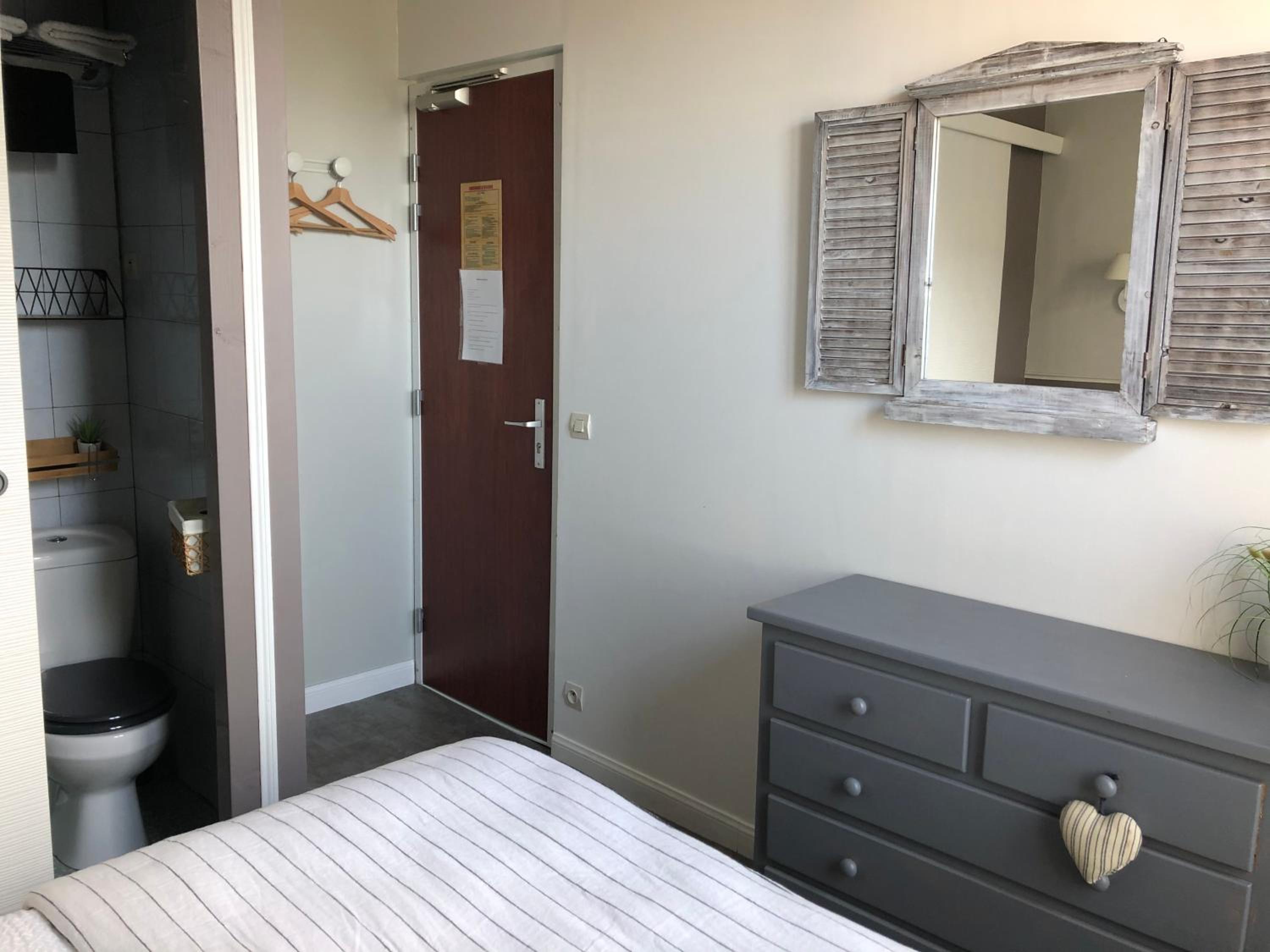 Dans la chambre peu de confort manque une table et un grand miroir salle de bain très étroite