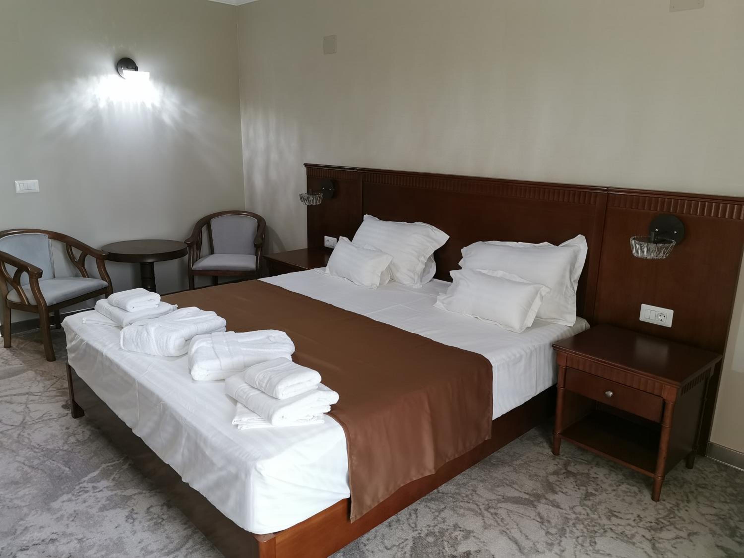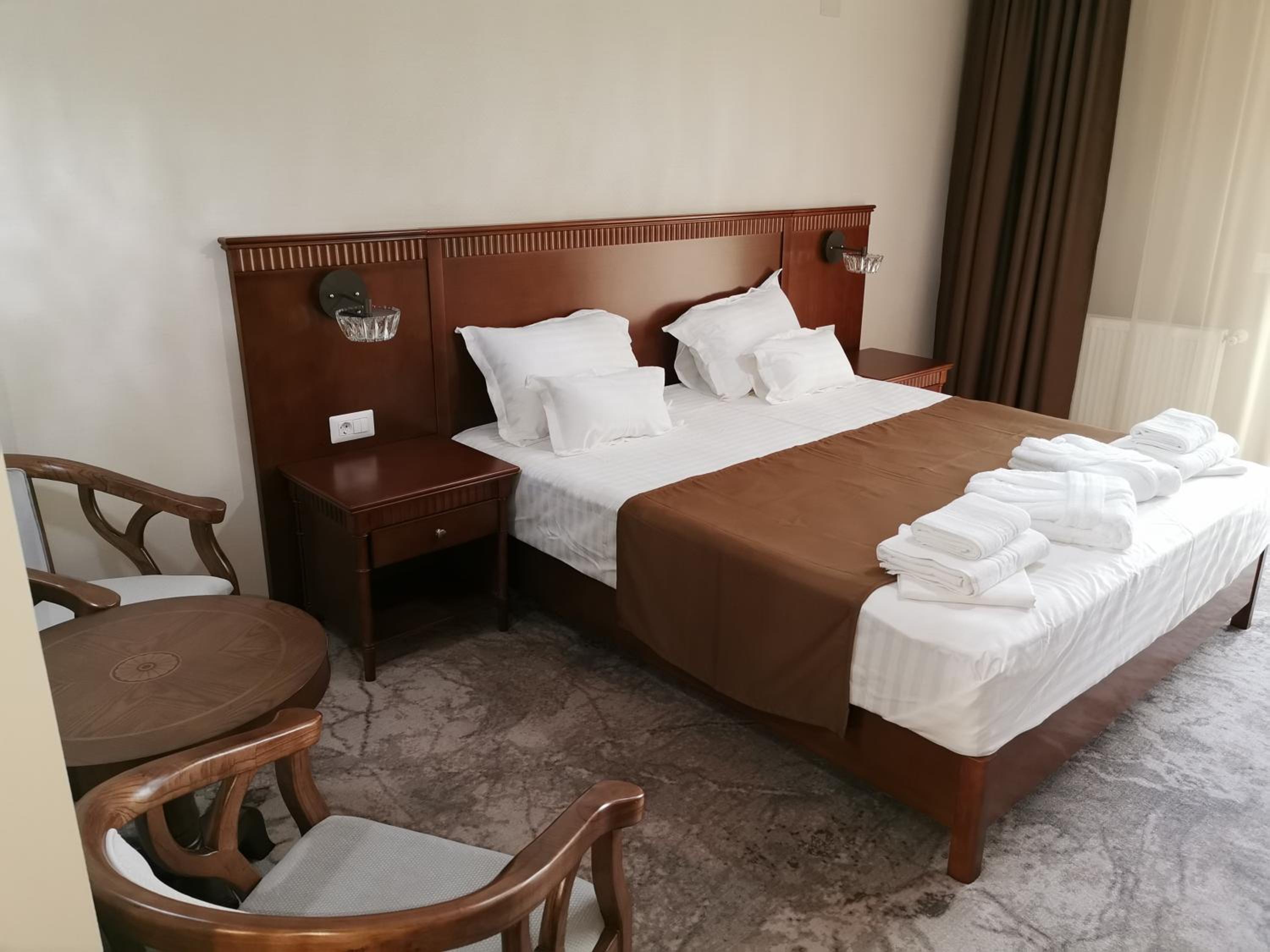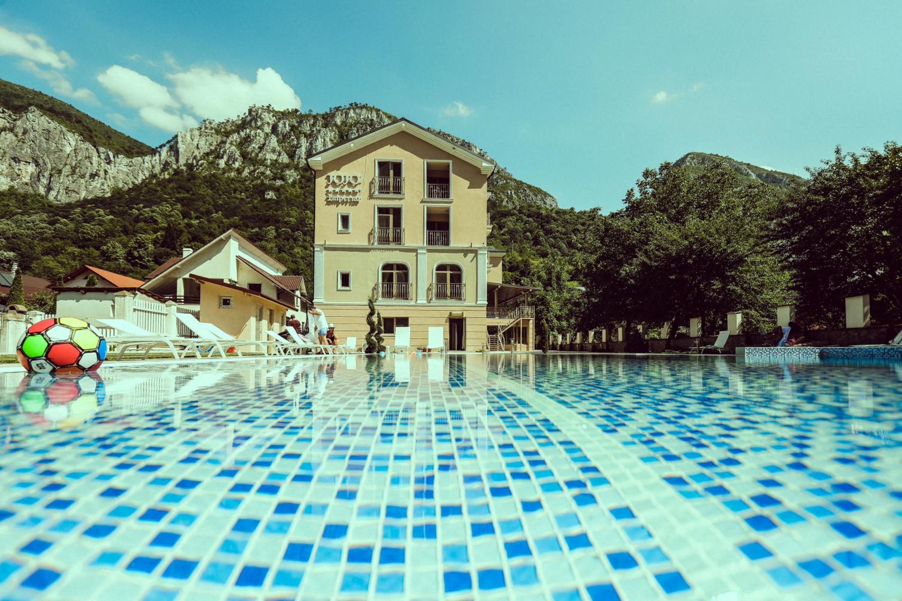 Escape to Pensiunea JOJO Imperial Resort&Spa for a luxurious retreat in Băile Herculane. Enjoy breathtaking mountain views from your private balcony, relax in the indoor pool and sauna, and rejuvenate at the spa center. With free WiFi, room service, and a flat-screen TV in every room, your comfort is our priority. Treat yourself to delicious meals at the restaurant and unwind with a drink at the bar. Don't miss the chance to explore the nearby Rock Sculpture of Decebalus. Experience ultimate relaxation and comfort at our resort. Book your stay now for an unforgettable getaway.