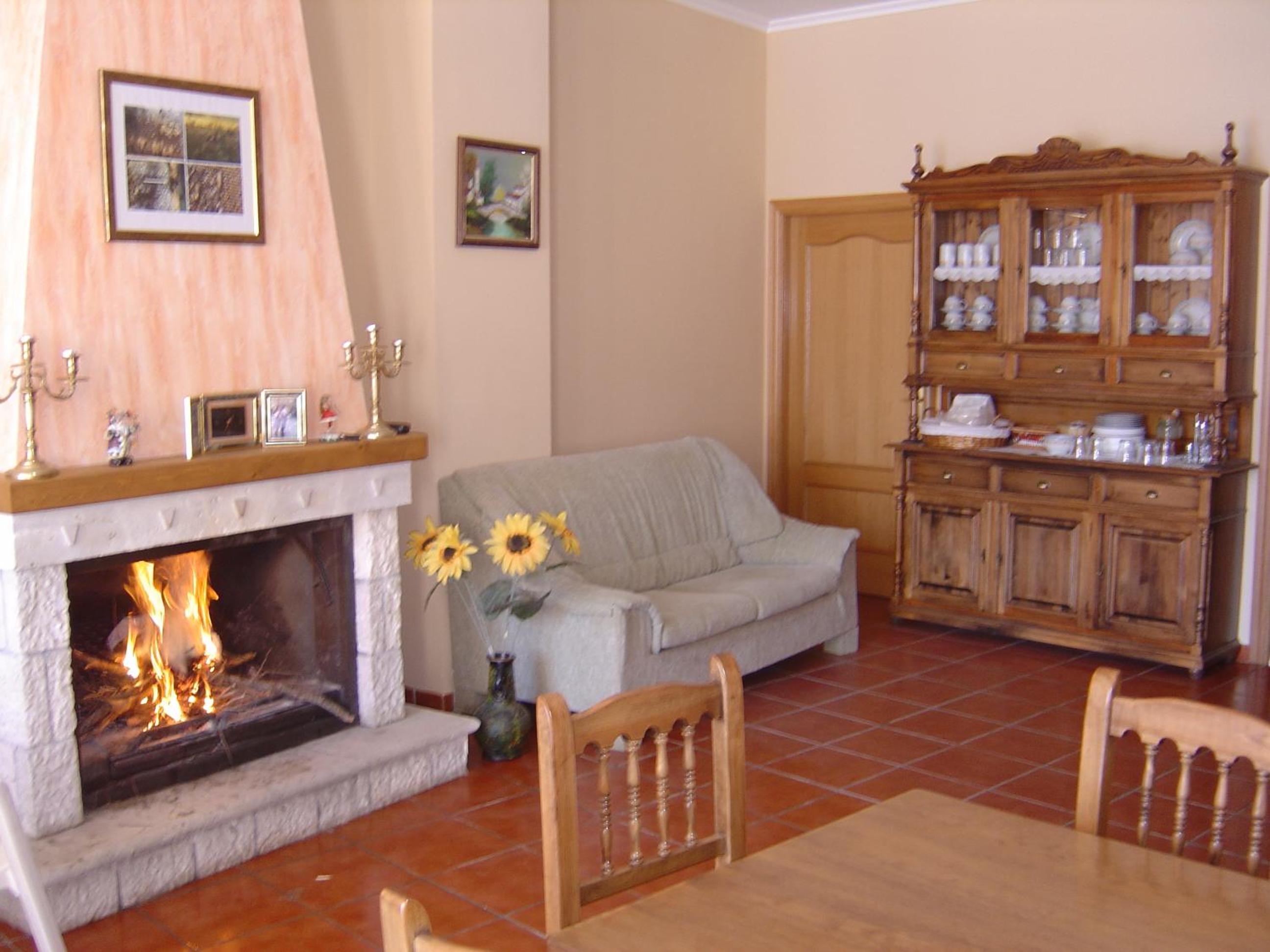 Guests can unwind in the inviting shared lounge area at Hostal D´Ernes, complete with a cozy fireplace. Whether it's to socialize with other guests or simply to enjoy a good book, this space adds an extra charm to your stay.