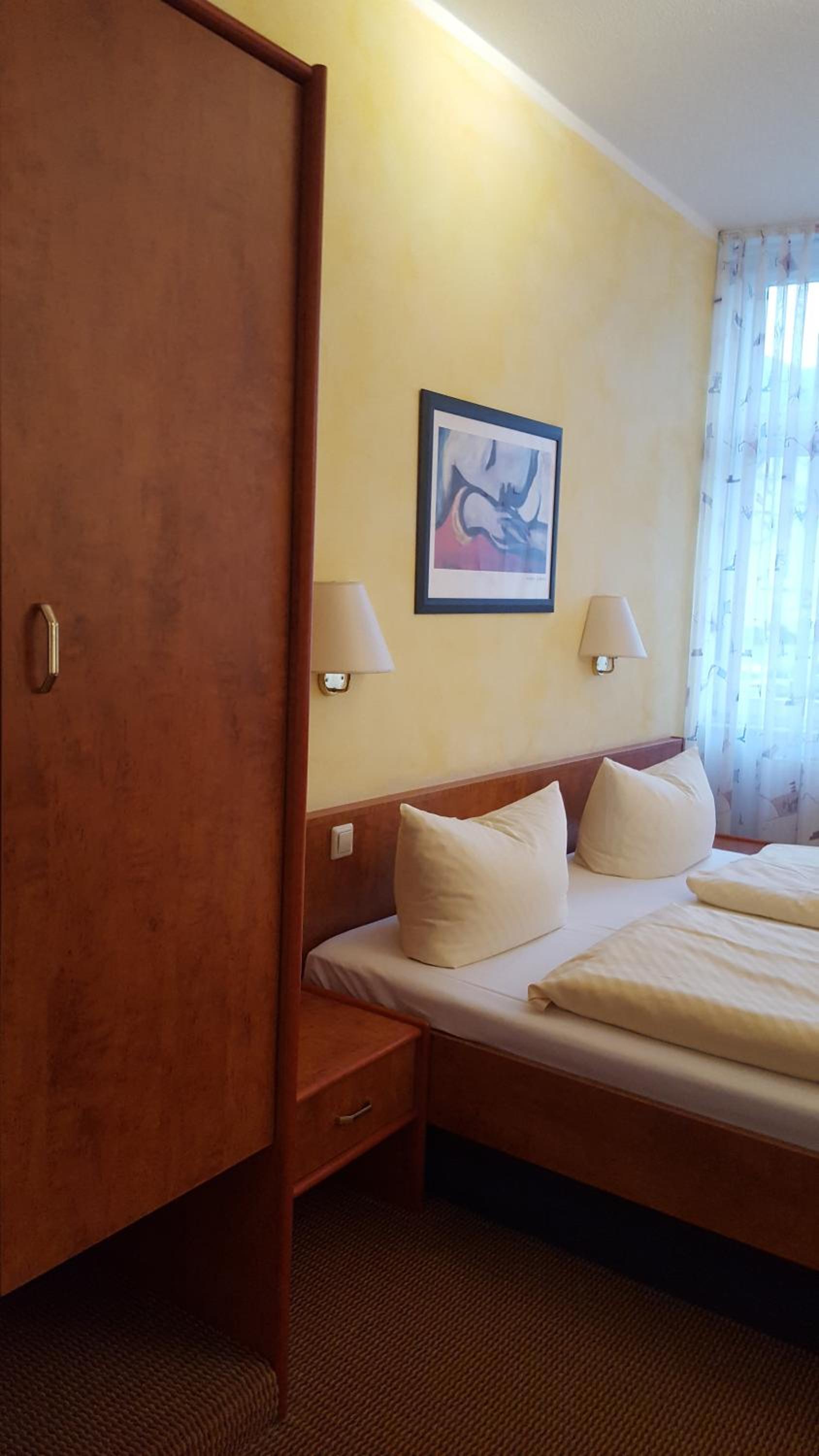 Wir sind sehr freundlich empfangen worden. Wir hatten ein sehr schönes Zimmer. Der Parkplatz war direkt vor dem Hotel für 5 €. Das Frühstück war hervorragend und liebevoll angerichtet. Es gab Müsli, Eier, Wurst, Käse, Tomaten, Gurken, Paprika, Säfte, Wasser, Tee und einen sehr leckeren Kaffee. Uns hat es an nichts gefehlt. Ausserdem war die Lage topp. Direkt in der Innenstadt.