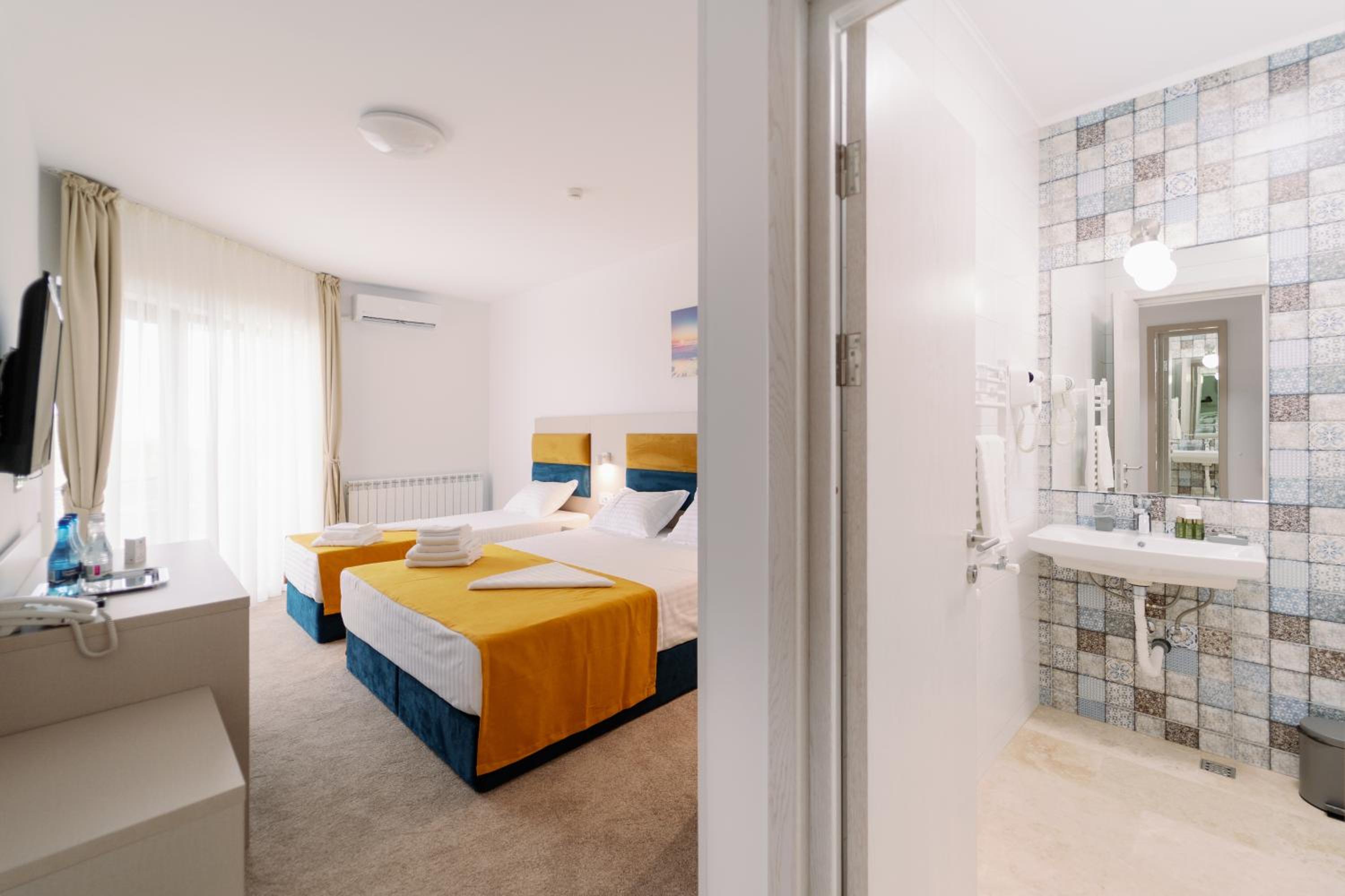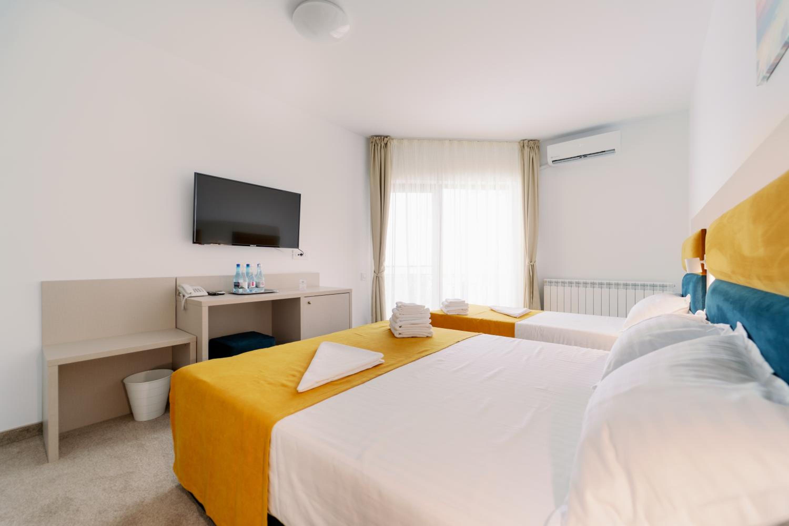 NOVUS Hotel, located in Eforie Nord, offers contemporary 3-star rooms with free WiFi and air-conditioning. Each room features a private bathroom, balcony, desk, and a flat-screen TV. Some rooms even boast a terrace for a more elevated experience.