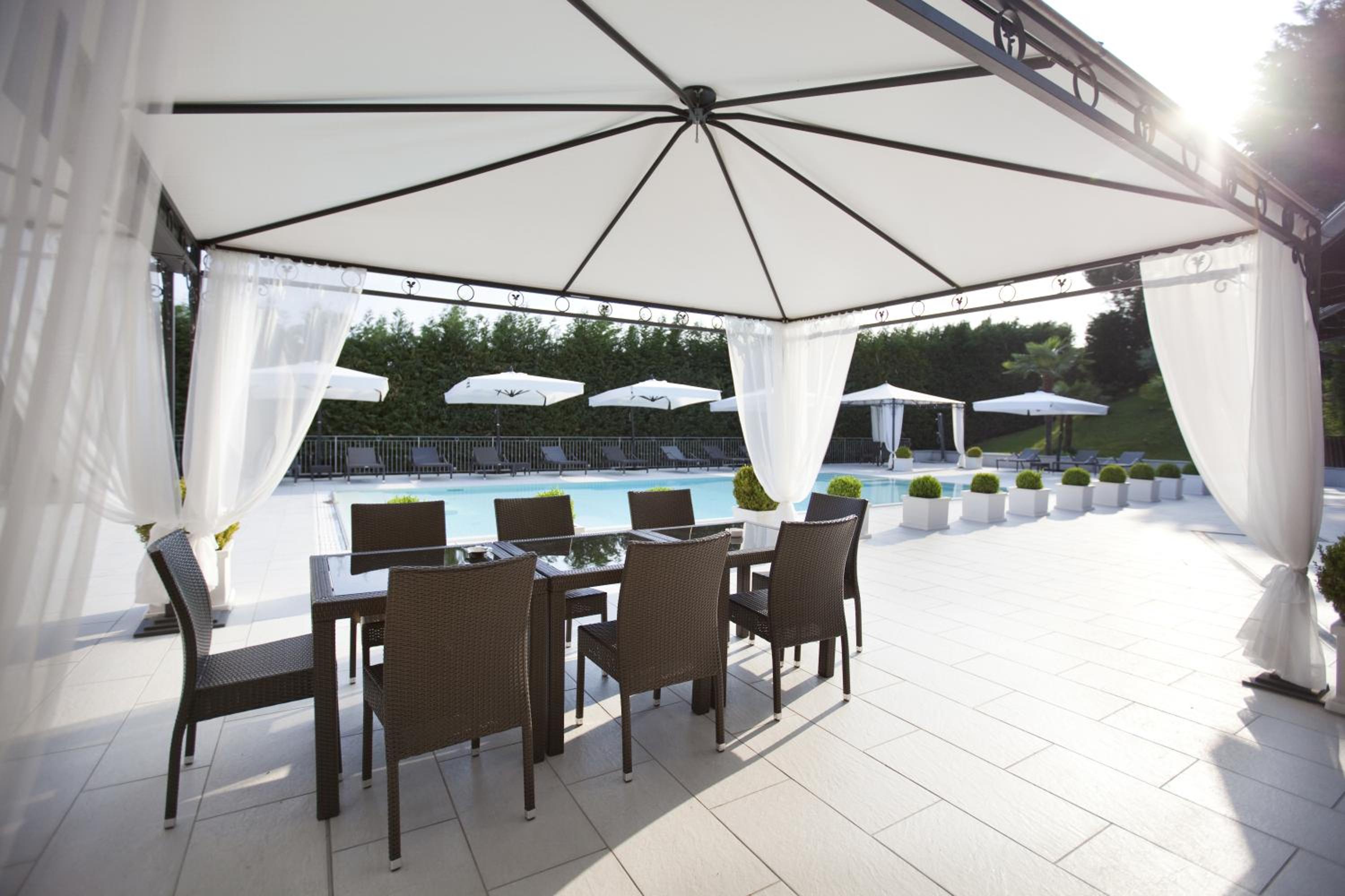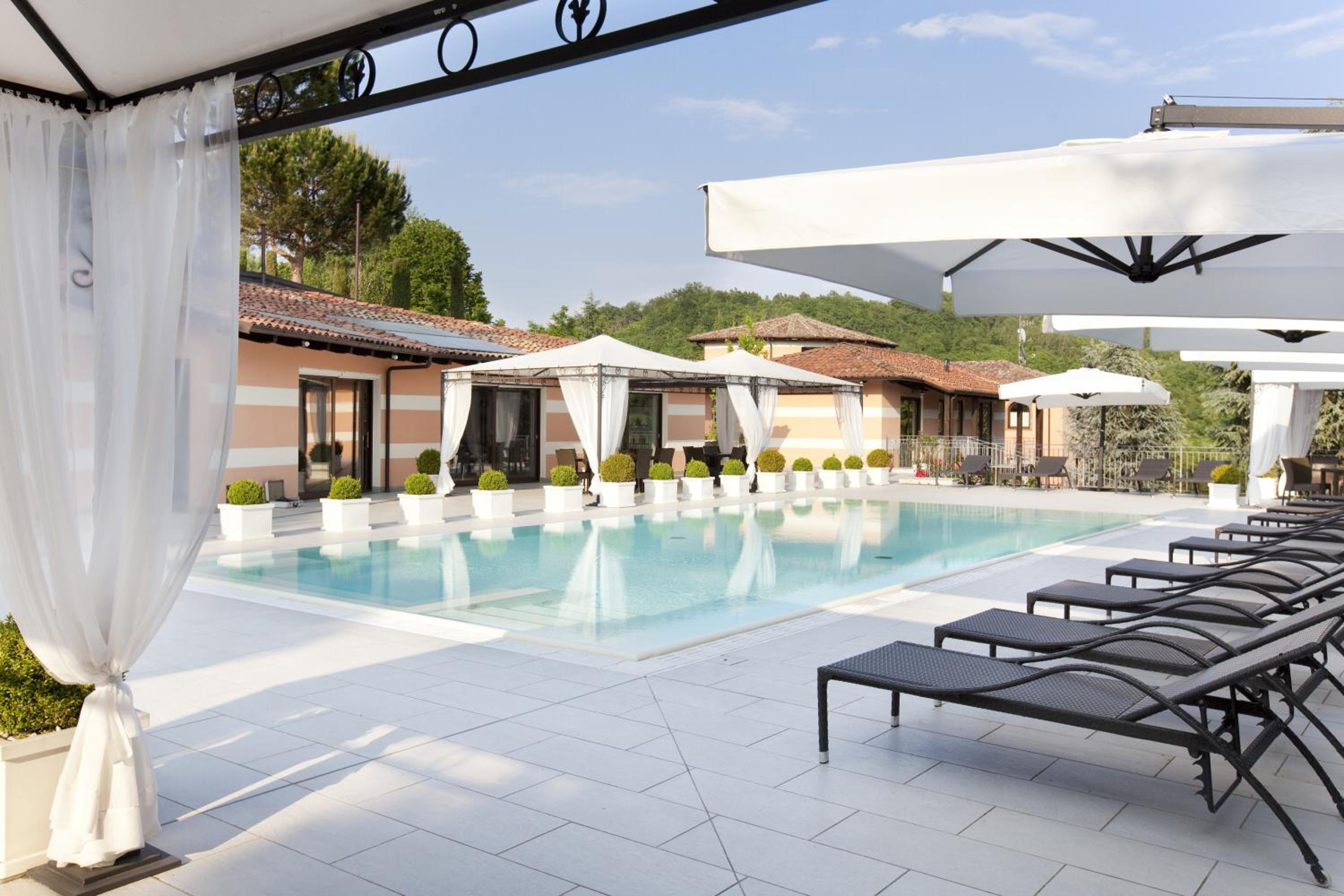 Enjoy our serene grounds with a summer swimming pool, perfect for unwinding under the sun. Start your day with a sweet Italian breakfast and stay connected with complimentary WiFi in our lobby. Additionally, benefit from free parking during your stay.
