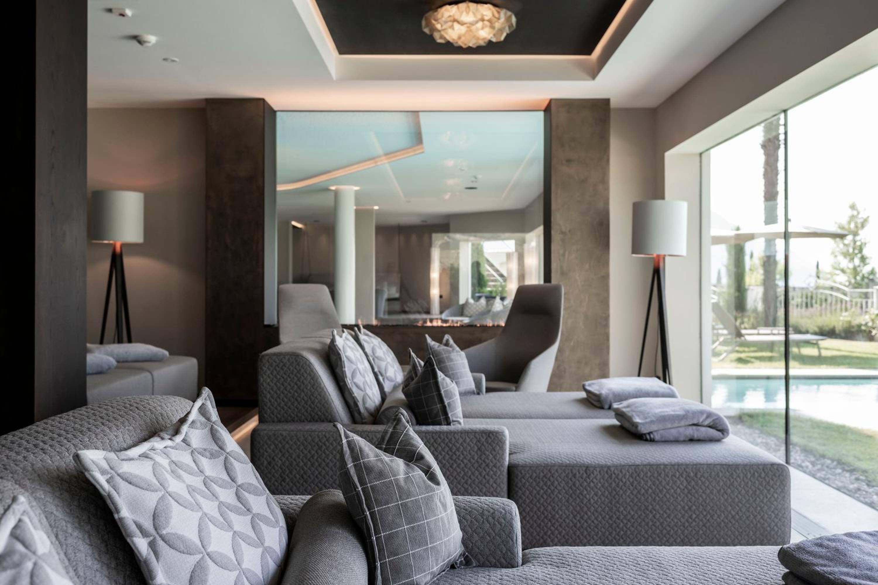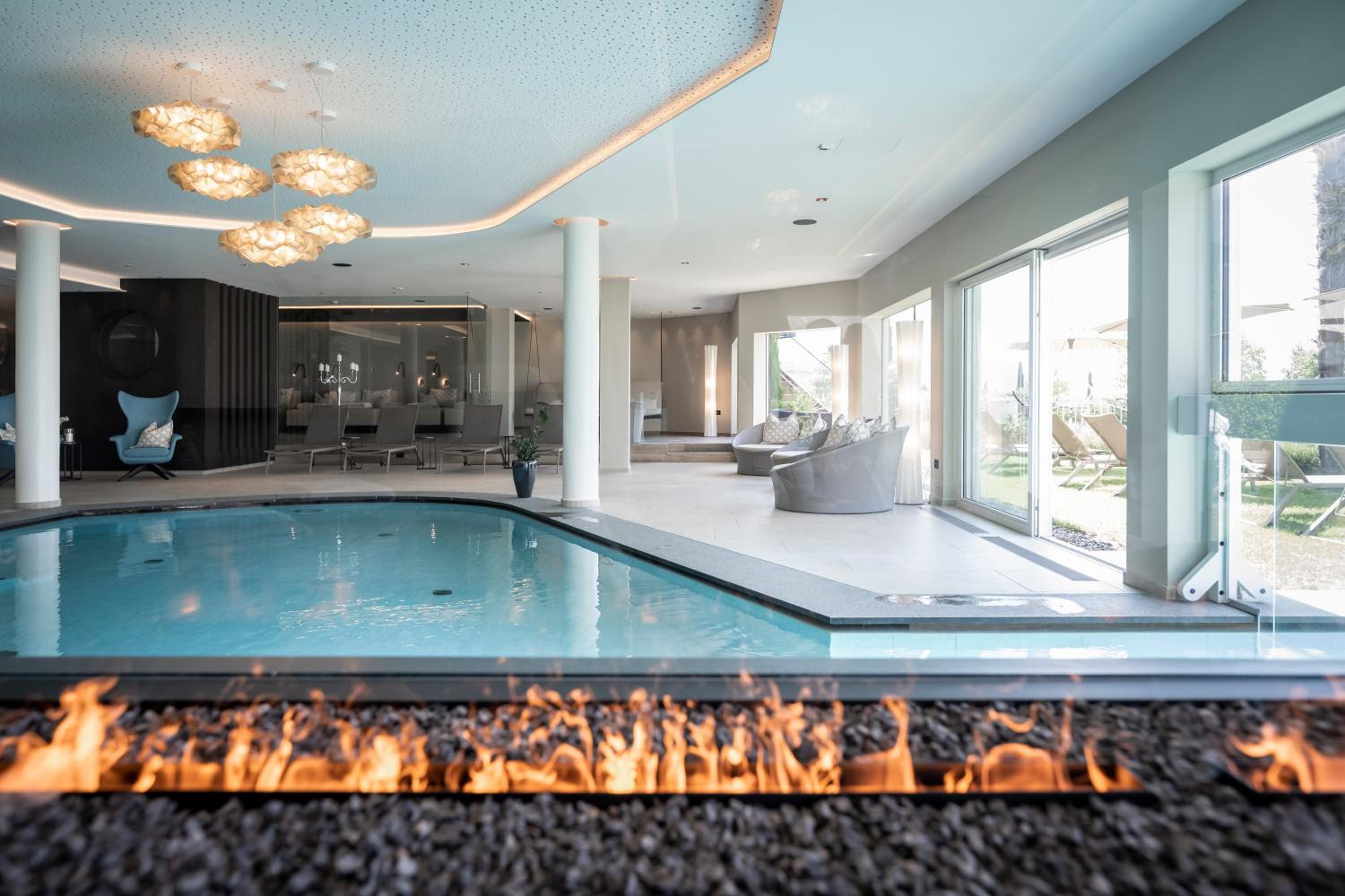 Toll ist auch der Wellnessbereich und der Pool mit perfekten Outdoormöbeln, die auch auf der Panorama Terrasse keine Wünsche offen lassen.