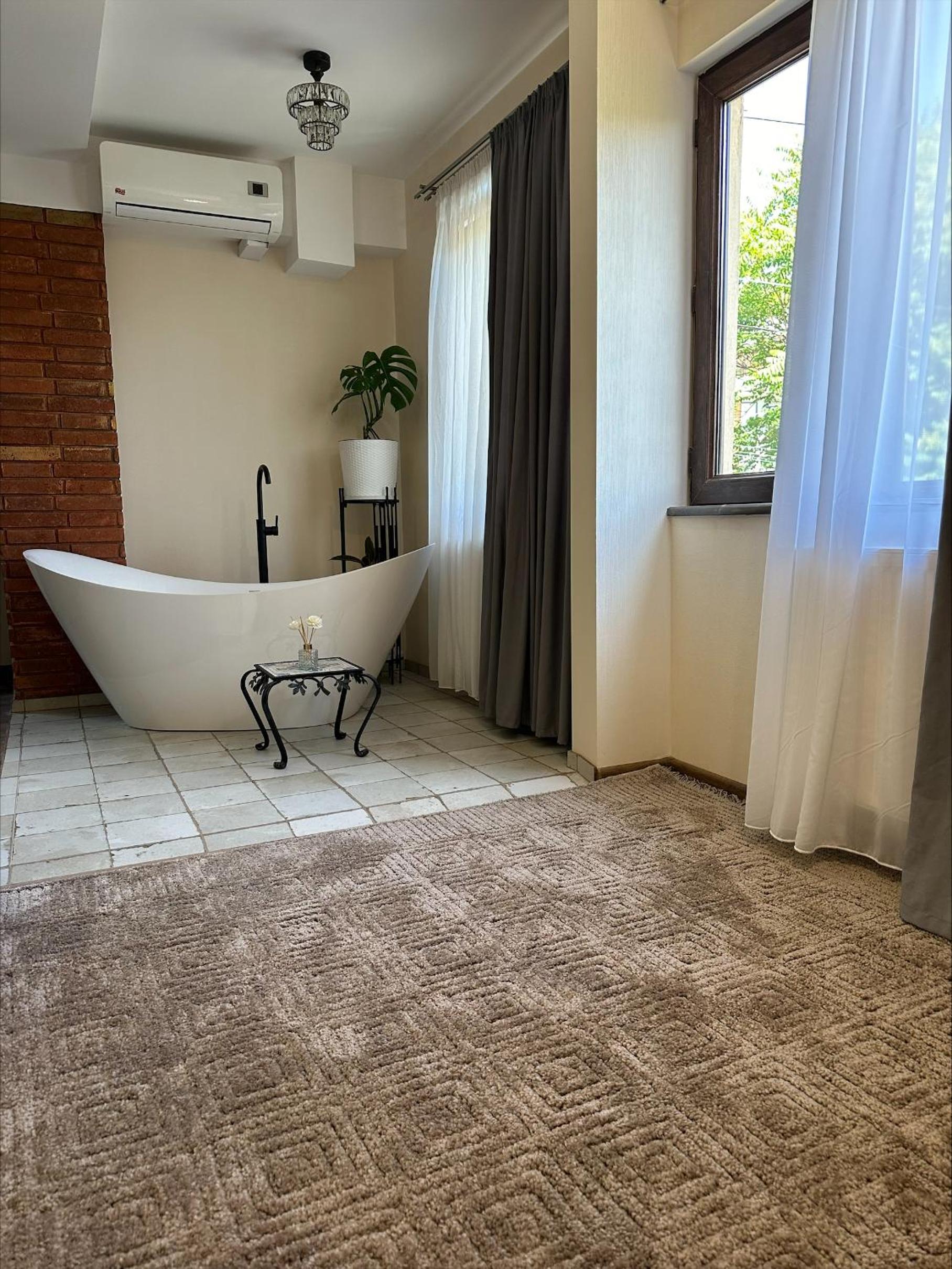 Well located accommodation close to the city centre. As a surprise there was a bathtub in the middle of the room. This was a modern studio apartment with a suitable accommodation. Kind and helpful staff.