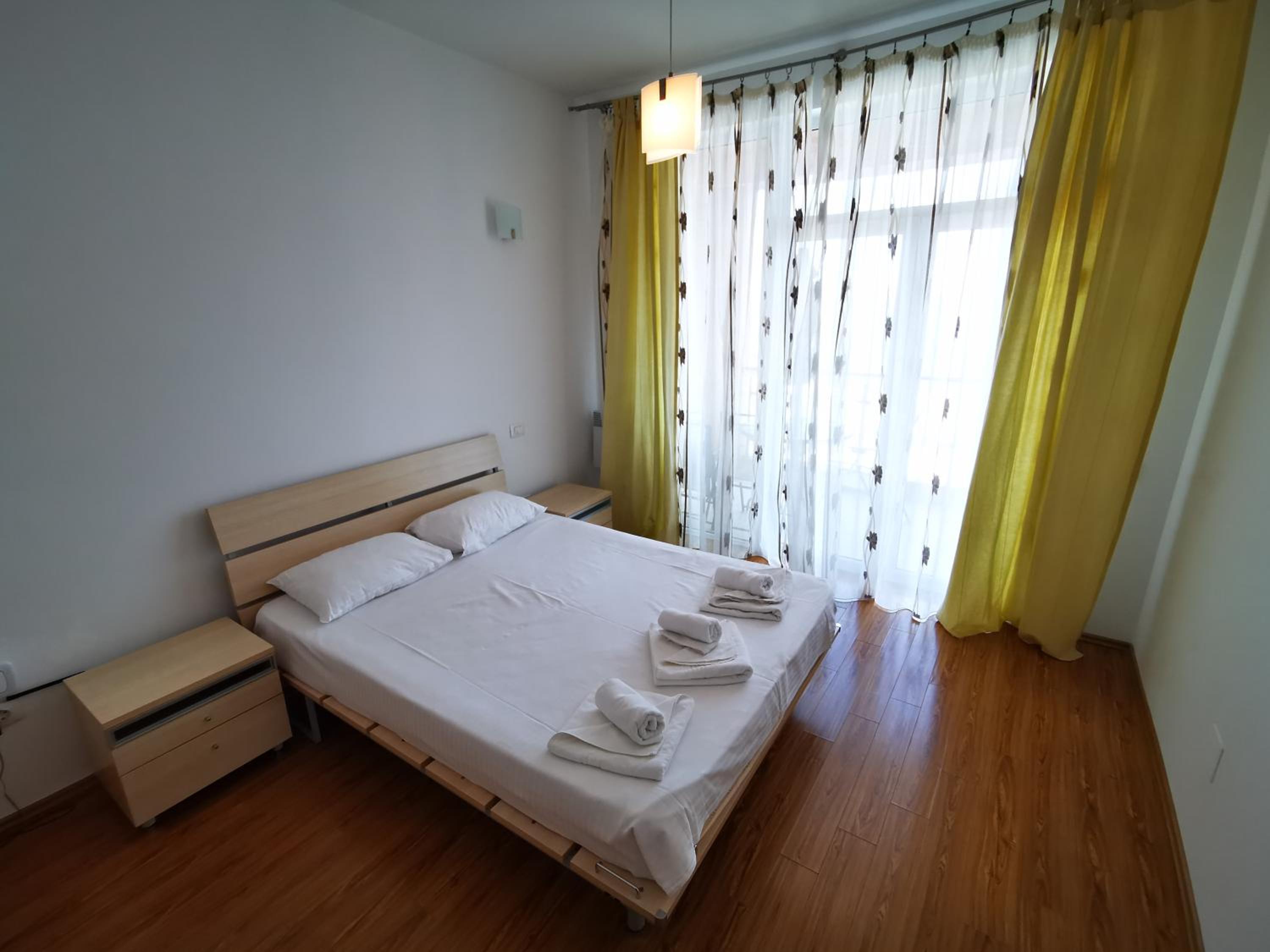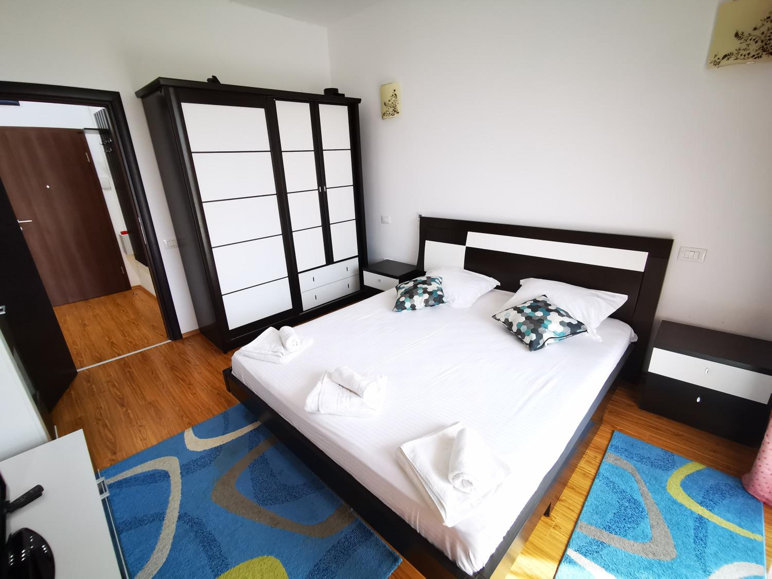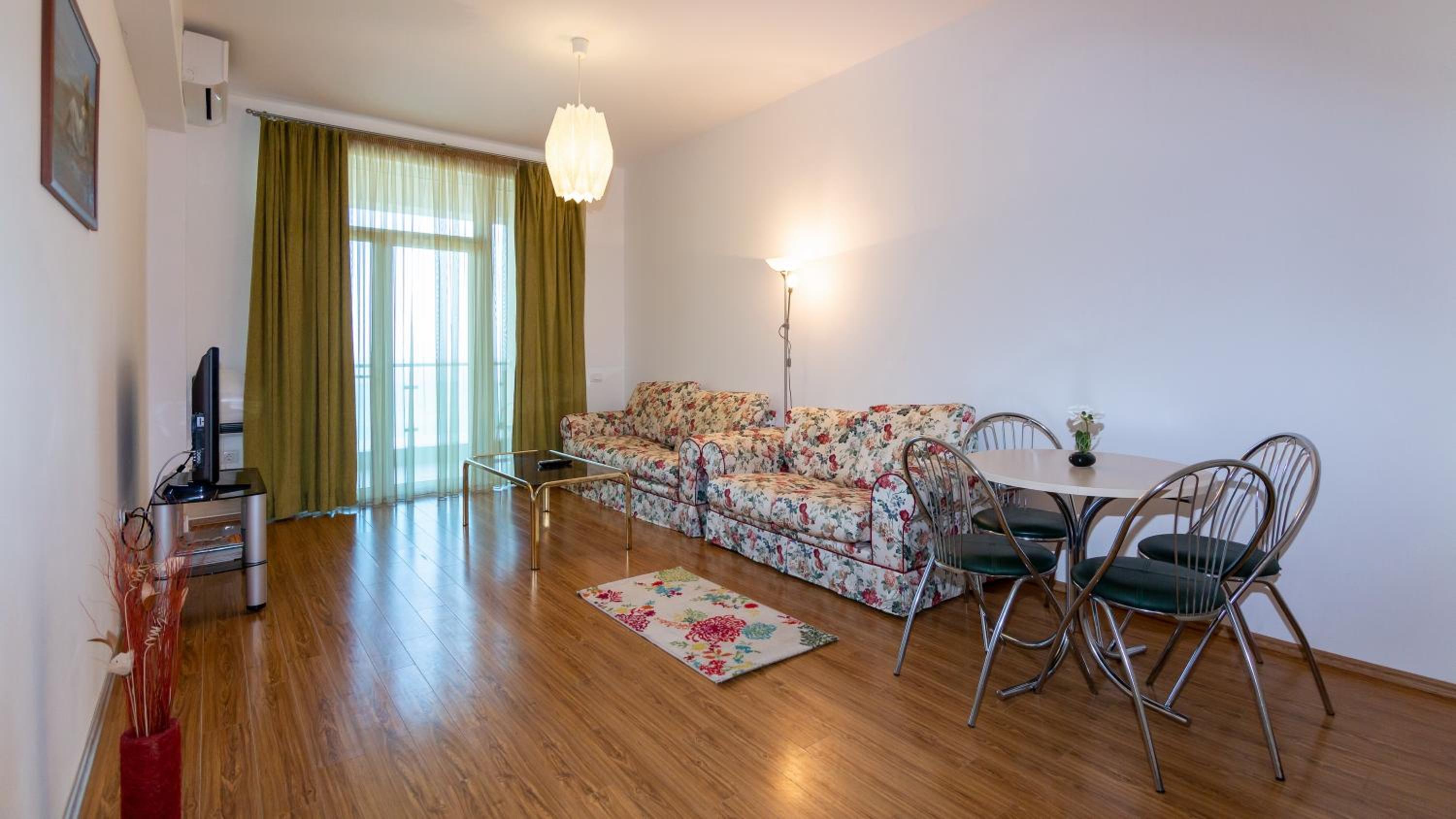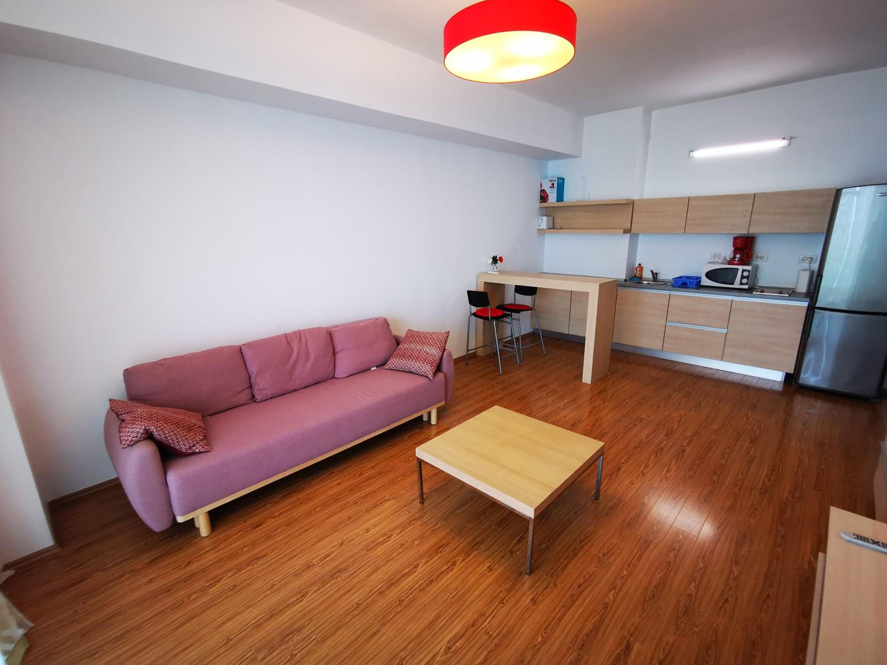 Nu mi-a plăcut mirosul din camere, lenjeria are un miros greu închis, iar livingul spune că are canapea extensibilă..asta nu e canapea de dormit nici o persoană, cu atât mai mult 2, astfel încât am dormit pe jos..