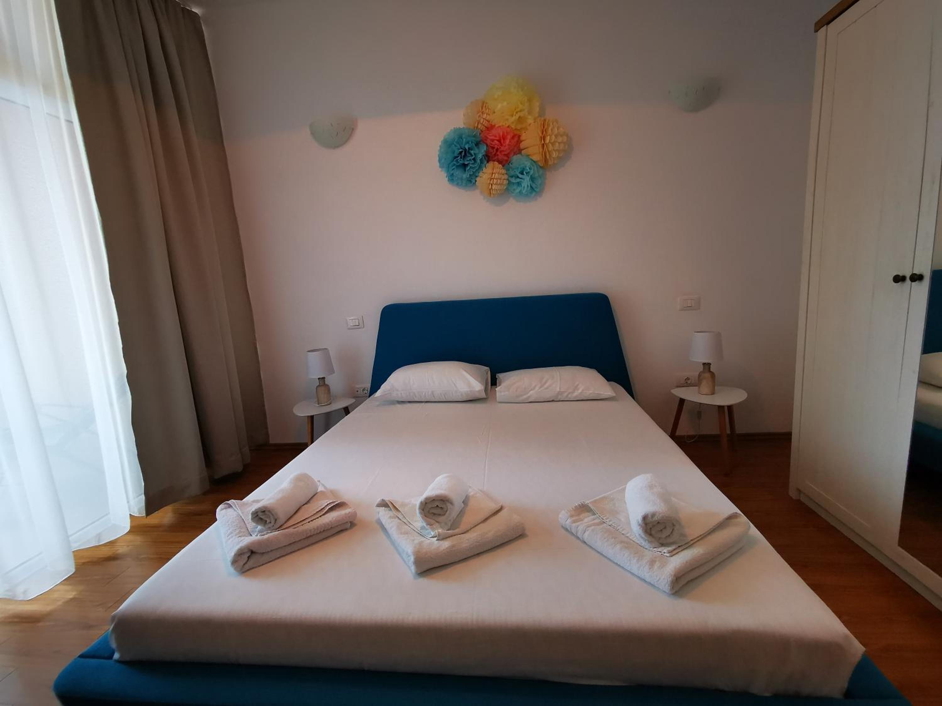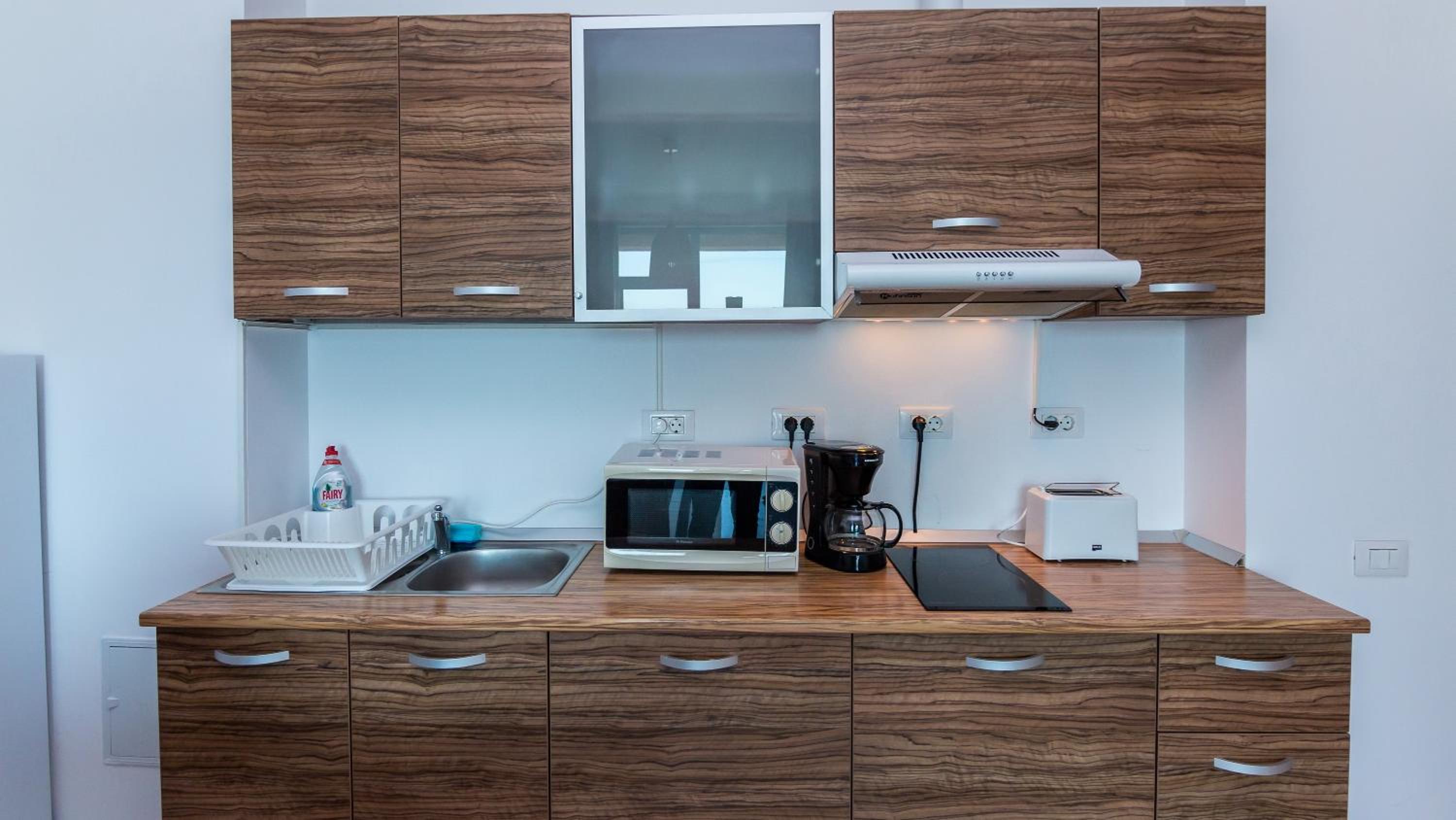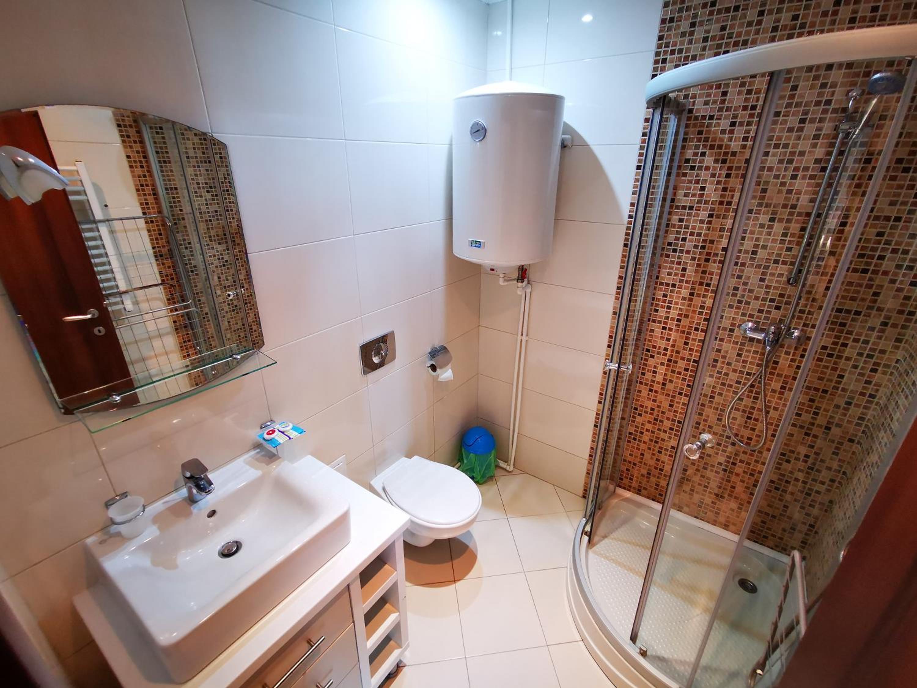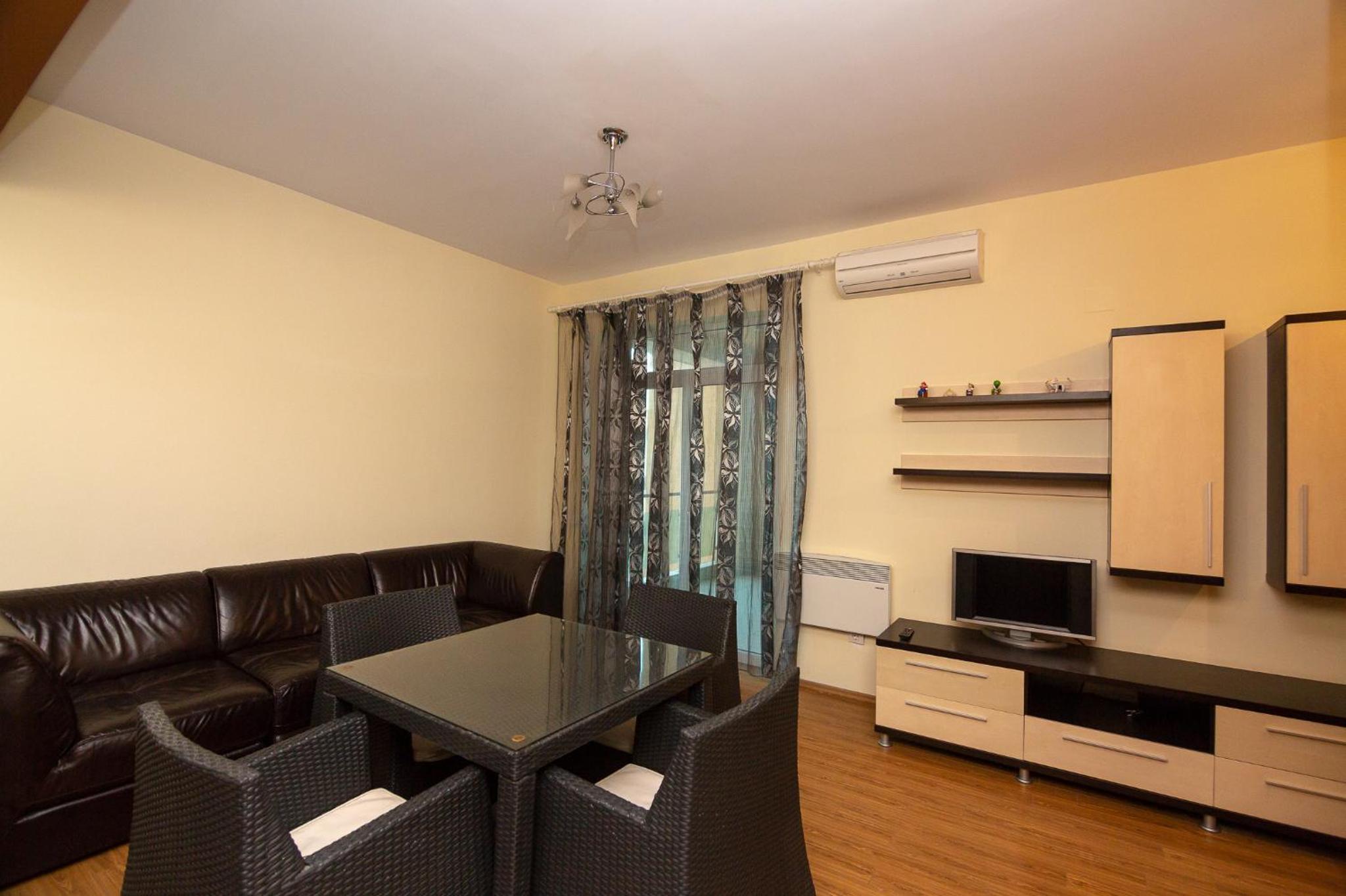 Nu mi-a plăcut mirosul din camere, lenjeria are un miros greu închis, iar livingul spune că are canapea extensibilă..asta nu e canapea de dormit nici o persoană, cu atât mai mult 2, astfel încât am dormit pe jos..
