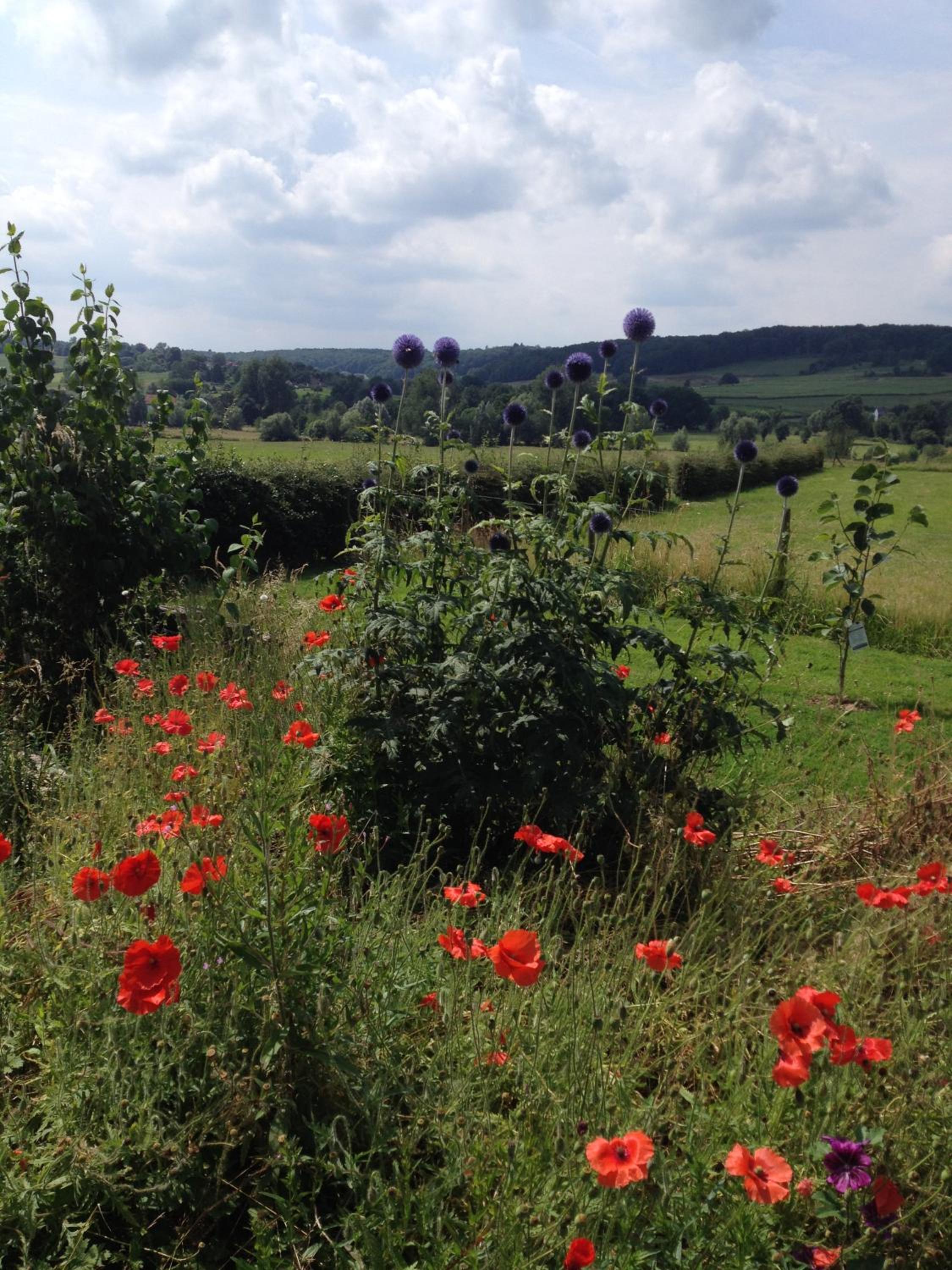 De ligging. Prachtig uitzicht vanuit onze kamer op het Geul dal.