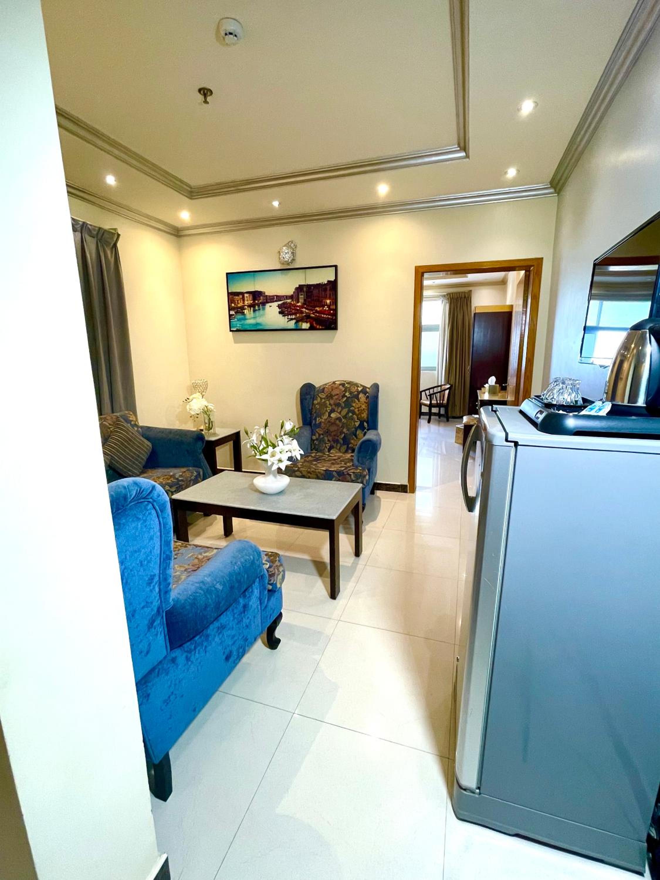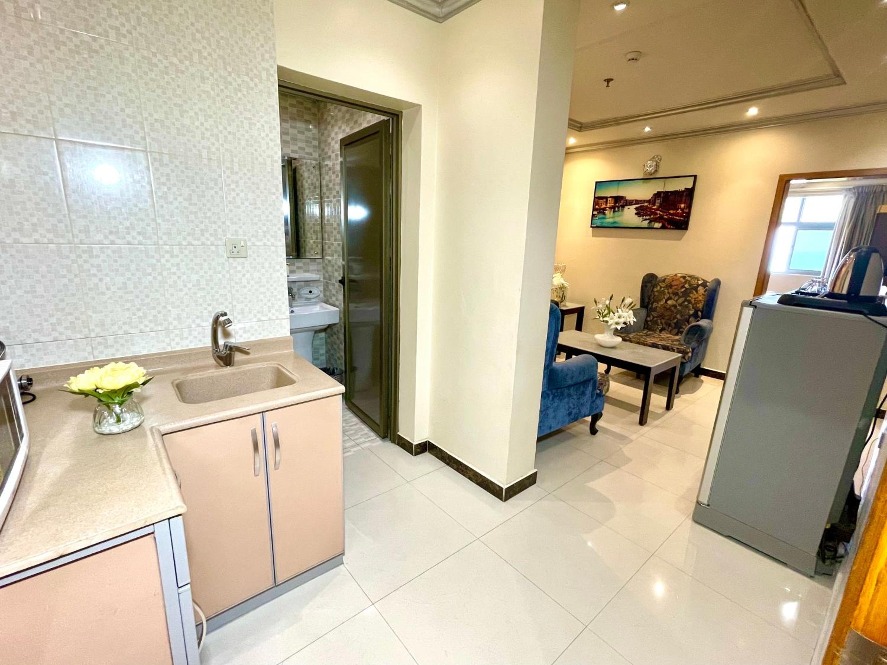 The marble-tiled apartments at Suite Tower offer a cozy ambiance and are equipped with a flat-screen TV, a fully furnished living room, and a convenient kitchenette. Enjoy the comfort of a washing machine, electric kettle, and refrigerator during your stay. For your convenience, the hotel provides free WiFi, a 24-hour front desk for luggage storage, and complimentary private parking on site.