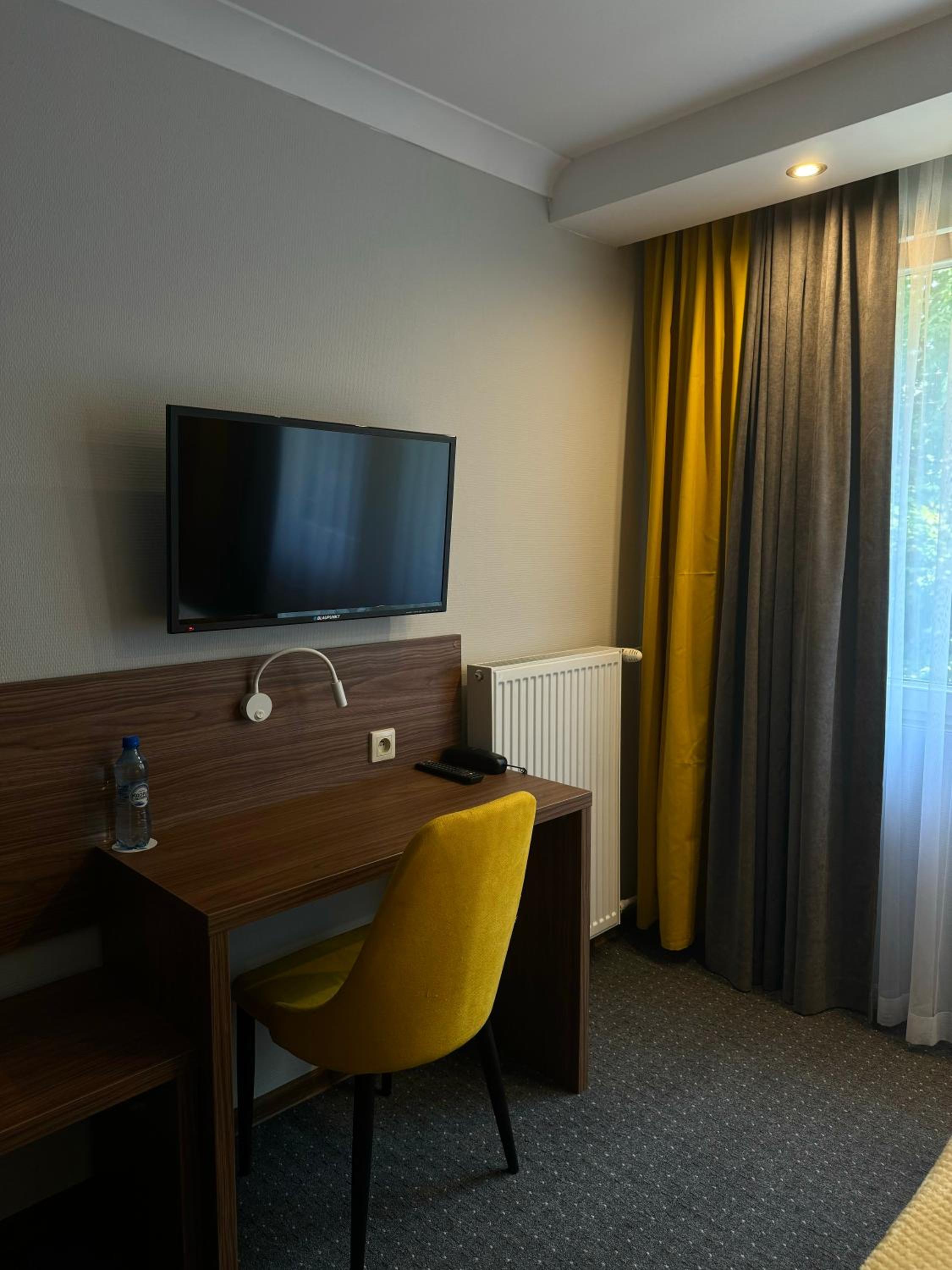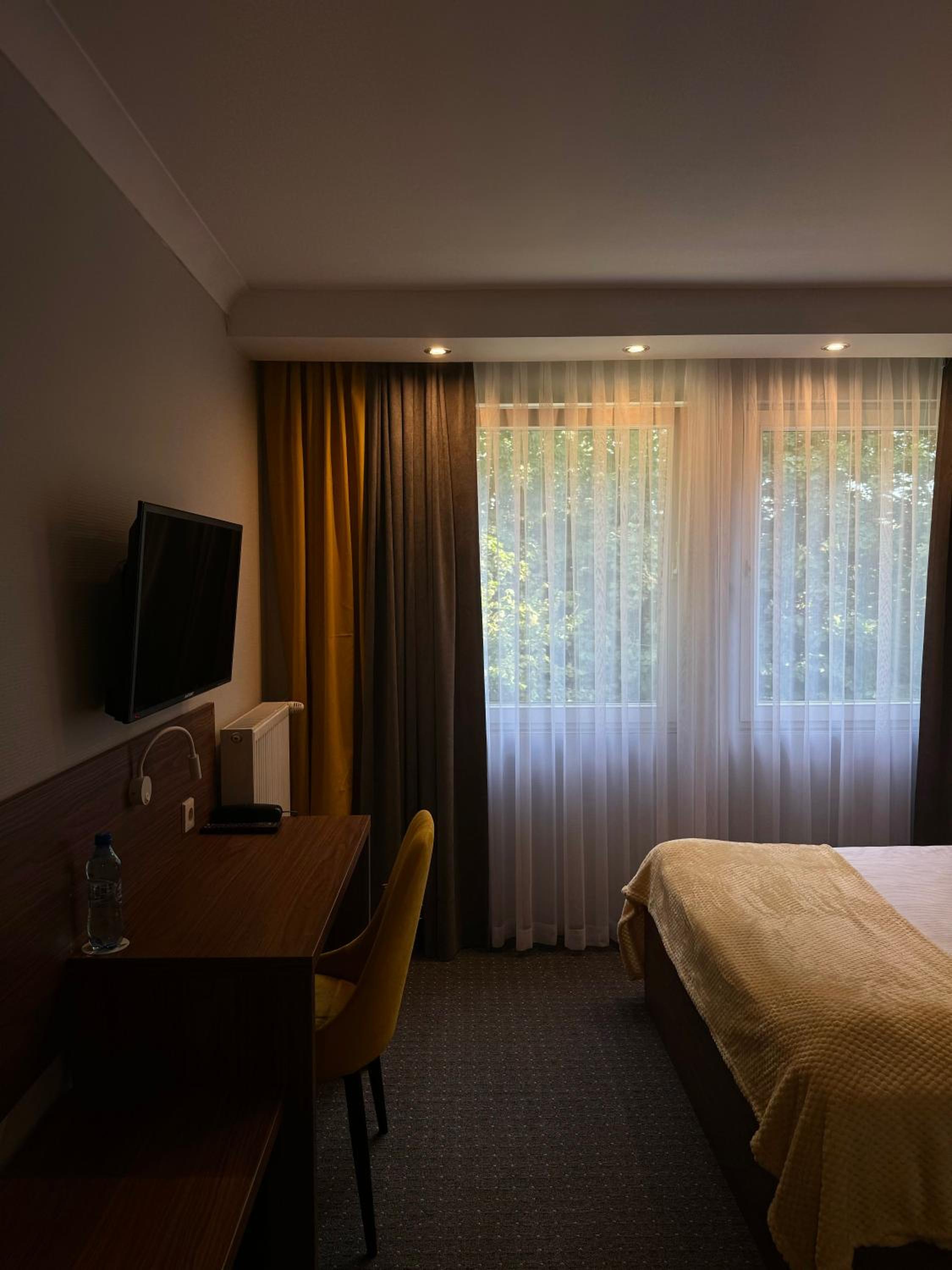 Jedyne, czego brakło to zwykły już w hotelach saganek elektryczny i kawa plus herbata w pokoju. Hotel trochę na uboczu, parenaście minut jazdy od centru,.