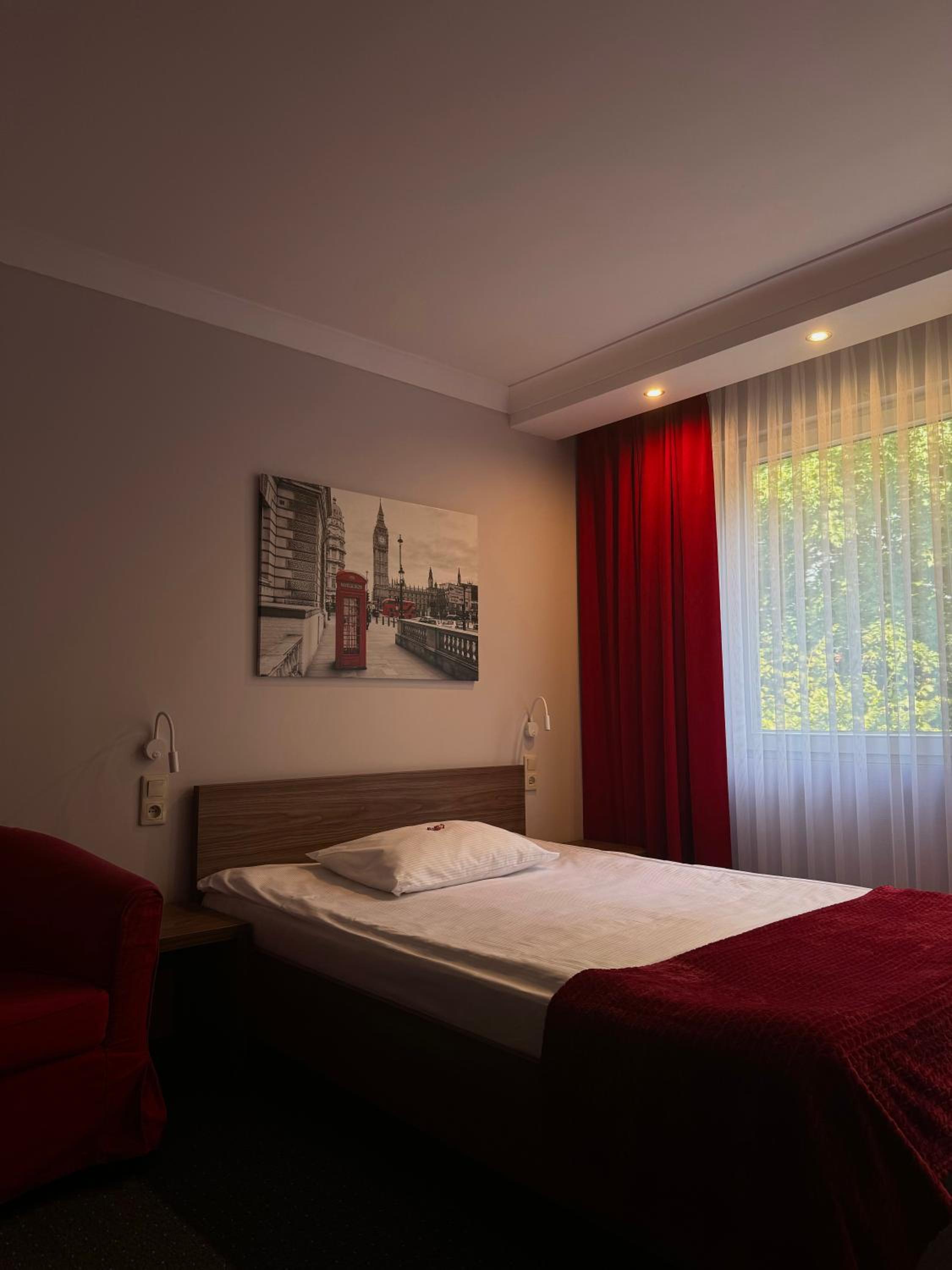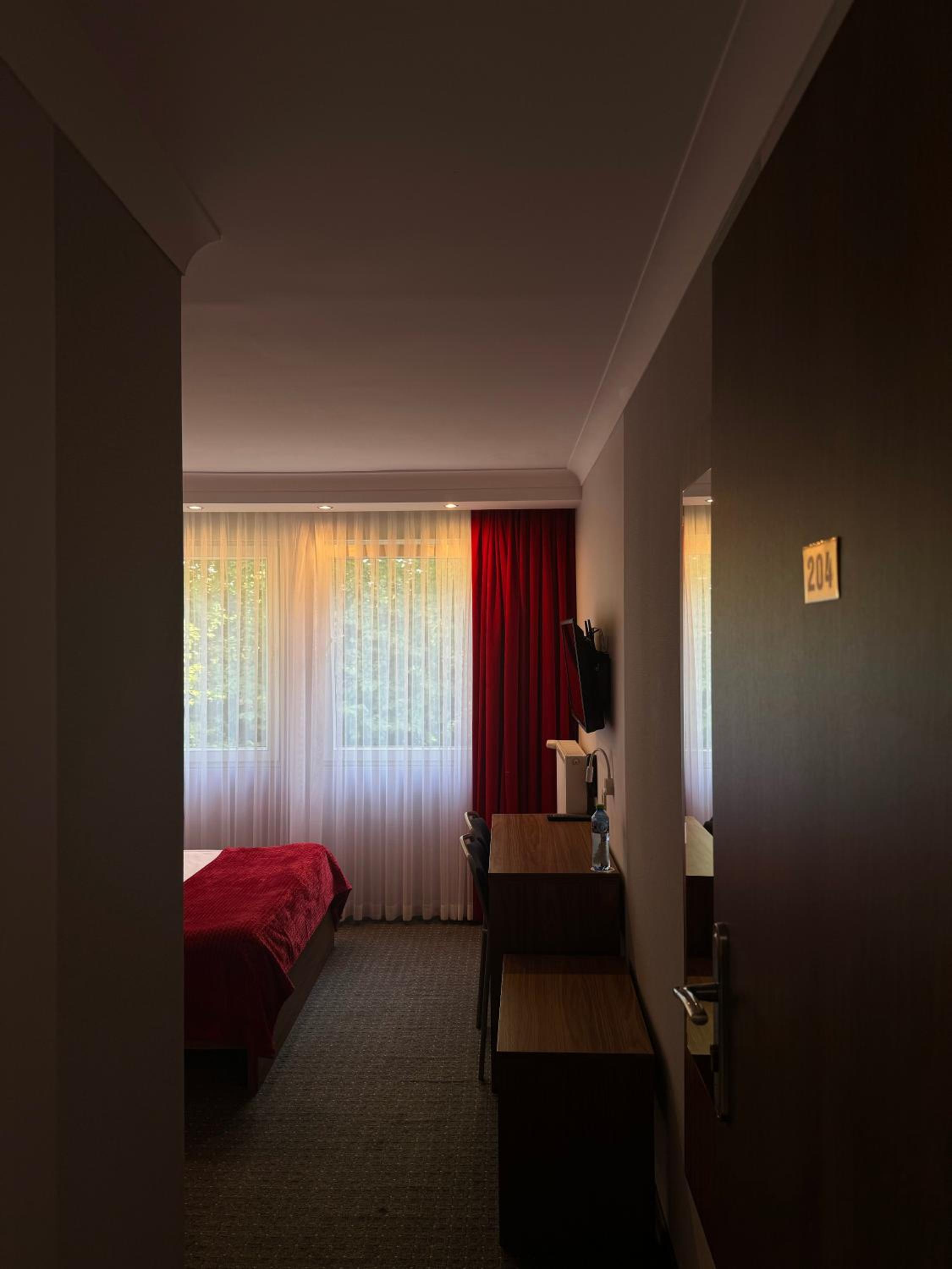 Spory pokój, czysto i bardzo cicho, choć może dlatego, że byłem w hotelu sam. Zdziwiło mnie śniadanie; mimo, że robione tylko dla jednej osoby obfite smaczne, świeże, spory wybór... tylko mleka brakowało ale poza tym miłe zaskoczenie. Parking wygodny, przed wjazdem.