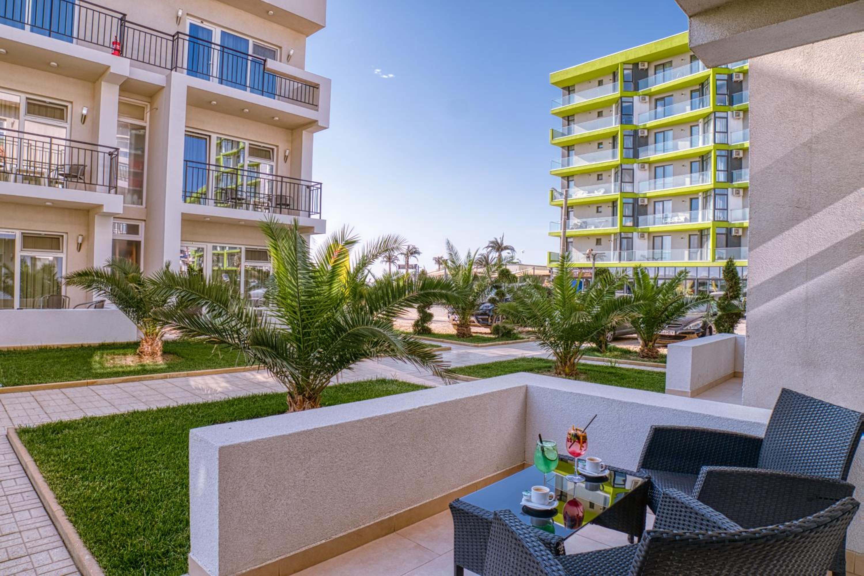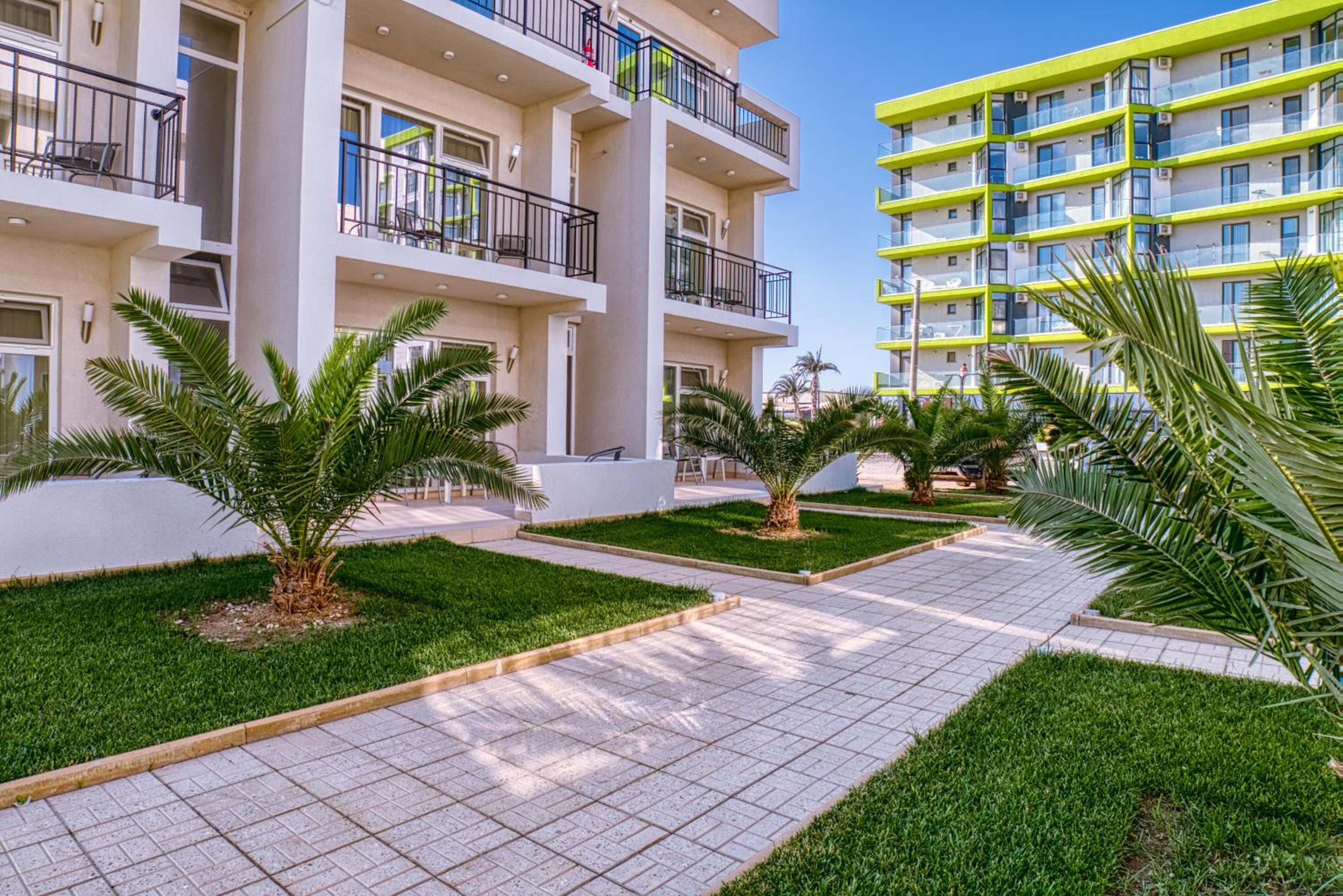 Offering accommodation on the beachfront of Mamaia, Sammos Beach Resort welcomes its guests with a private parking space. Free WiFi is available throughout the property, and you will also find a children's playground at your disposal.