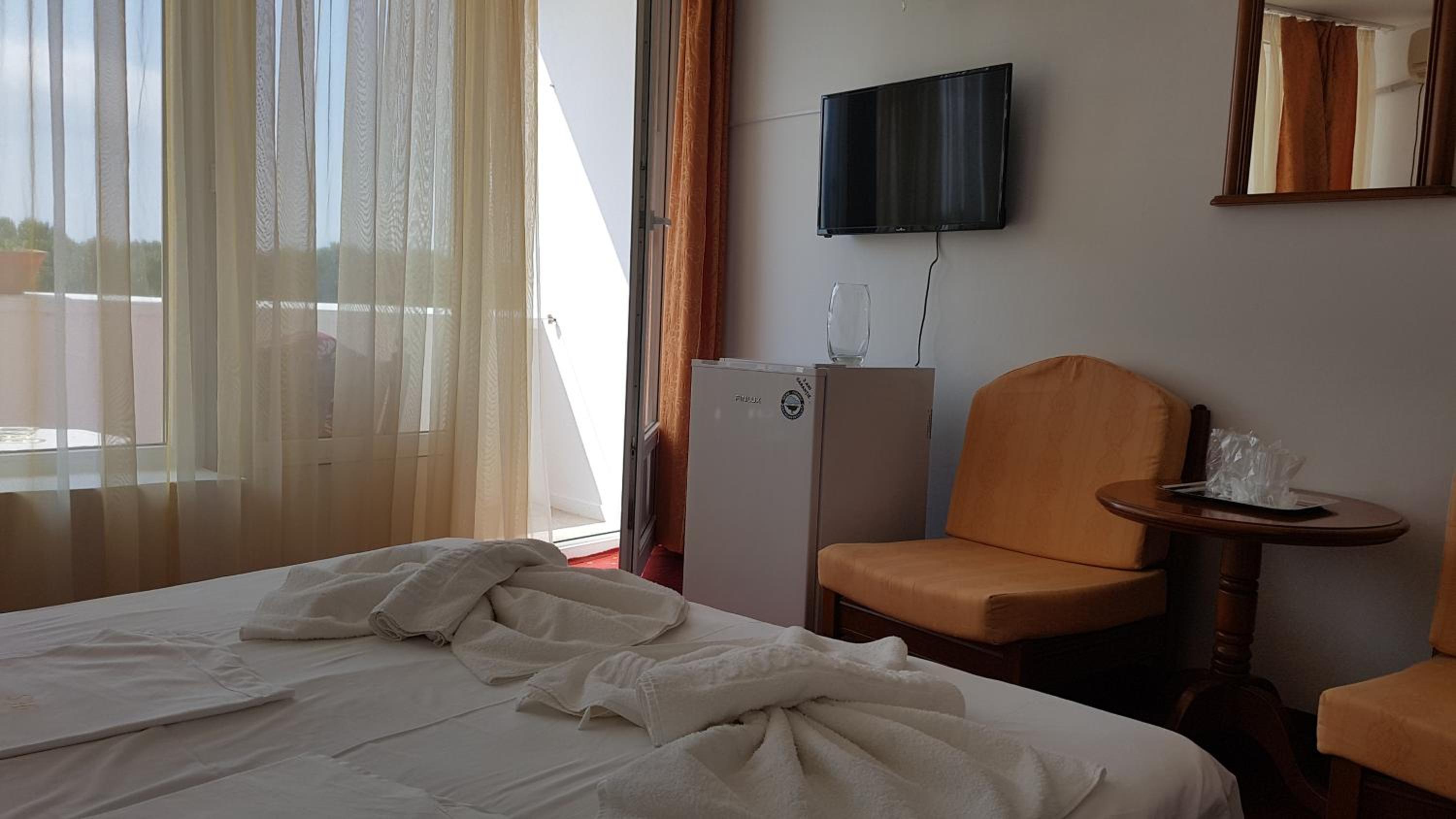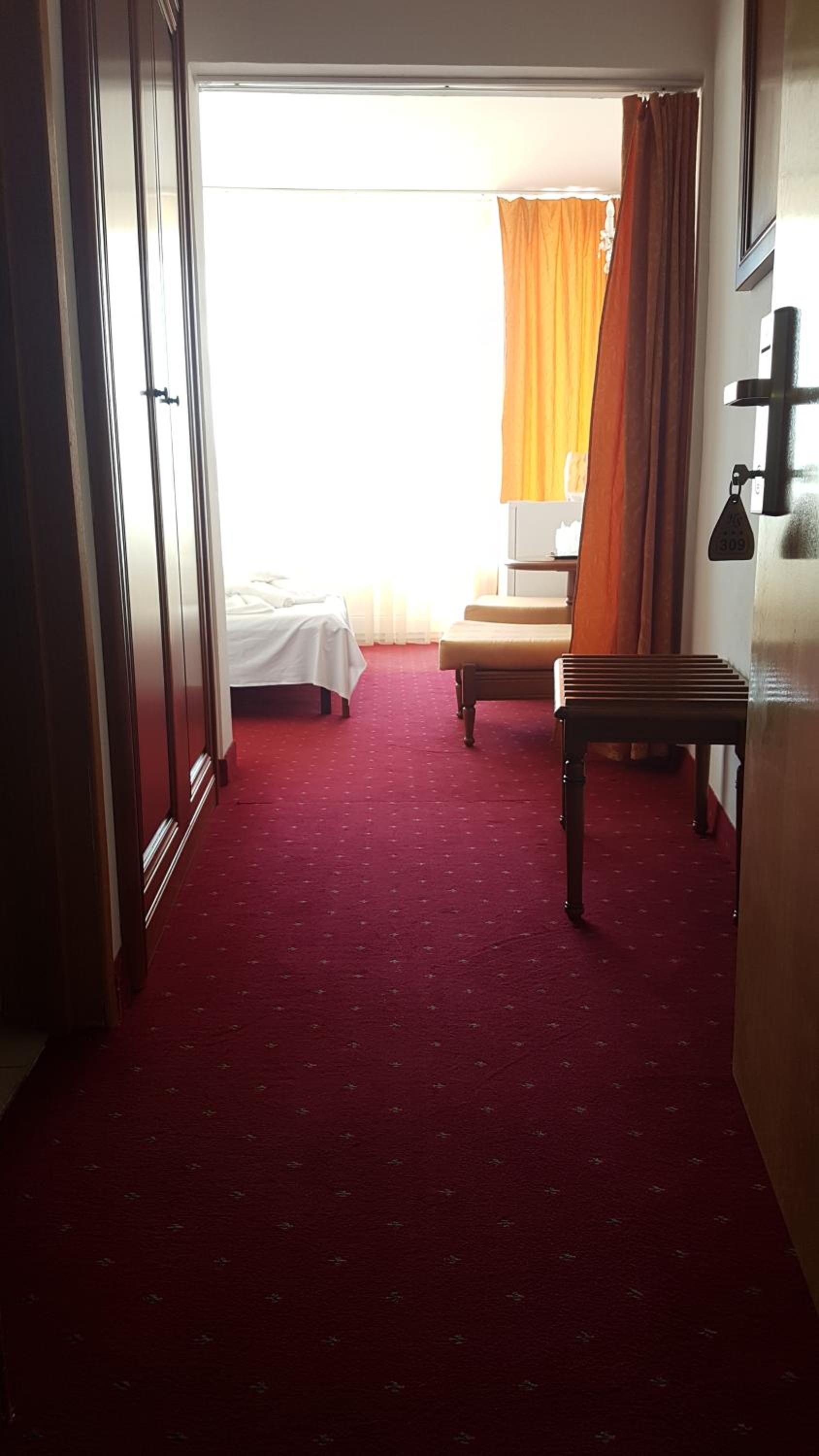 Camera draguta,fara mirosuri, aer conditionat ok, televizor ok. Conditiile camerei pentru noi au fost foarte bune.