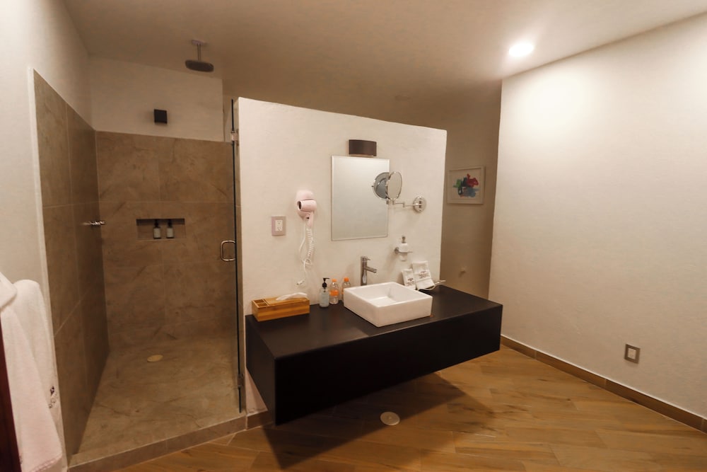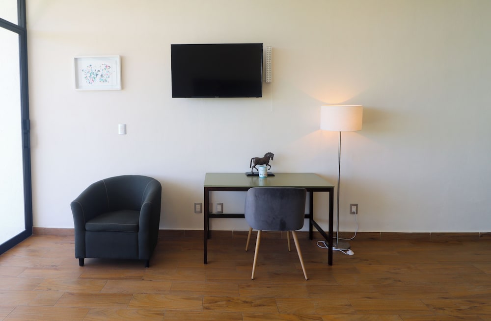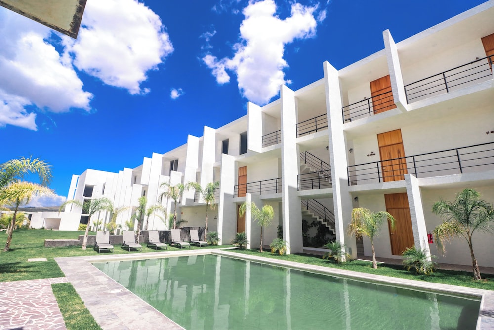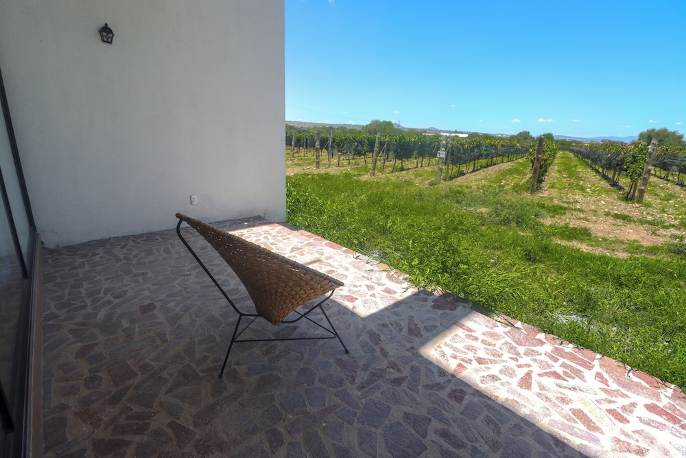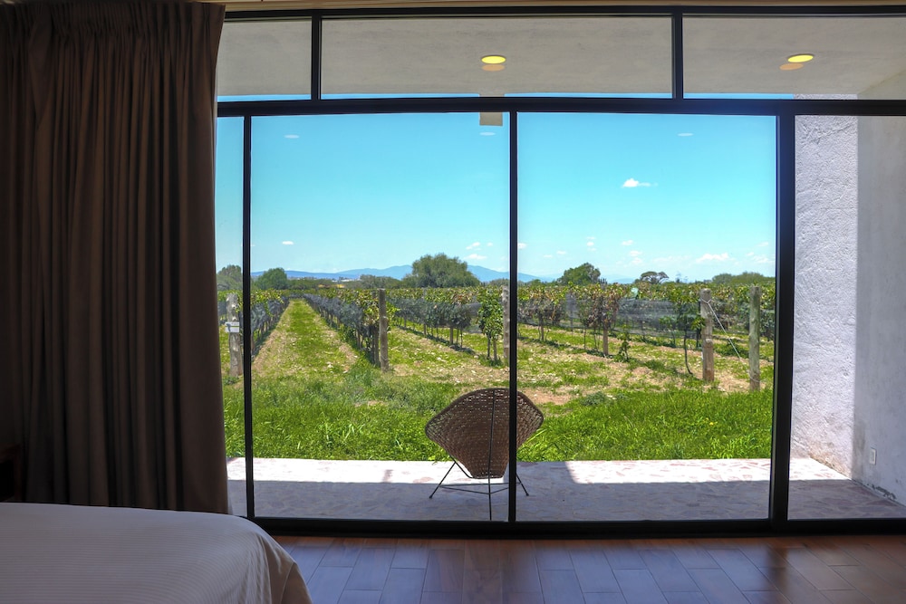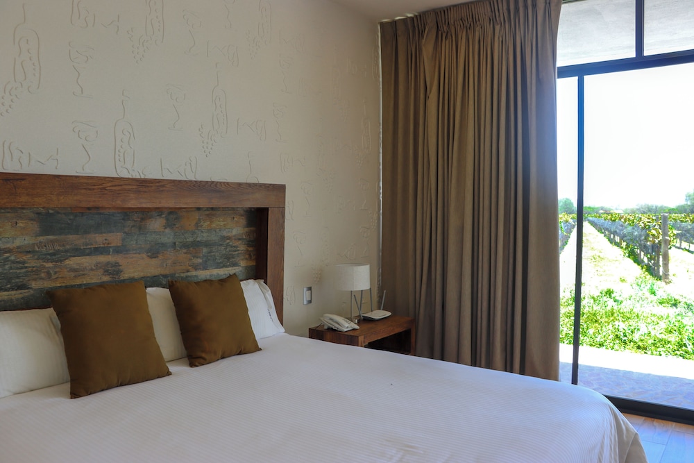 El hotel está muy bonito y el personal muy amable en su totalidad, aunque aún no está terminado completamente, aún no tiene una recepción, tiene un escritorio improvisado, tardaron mucho en hacer el check in, pero nos reglaron una cerveza mientras esperábamos eso fue muy bueno, nunca nos dieron llave de la caja de seguridad, la alberca estaba sucia se veía que tenían mucho de no aspirarla, estaba verde, por lo que no quisimos usarla, es una lástima por que esta muy bonita, el hotel No tiene aire acondicionado ni ventiladores y si hace mucha falta ya que el calor es bastante intenso, tanto en habitaciones como en el restaurante, el restaurante del hotel tiene muy pocos platillos y tardan mucho en servir, pero el sabor estaba rico (solo qué hay muchísimas moscas, ojalá puedan hacer algo) el restaurante del viñedo deberían extender su horario ya que tiene más variedad de platillos, esto como beneficio a los huéspedes del hotel. Nosotros fuimos a visitar muchos viñedos y productores de queso y su ubicación es excelente ya que está muy cerca de muchos y el poder acceder al viñedo azteca que nos gusta muchísimo fue inmejorable, tiene poco personal supongo que por que es muy nuevo y debido a ello tardan los servicios, si nos agrado, volveríamos a visitarlo sobre todo por la vista del viñedo azteca y el acceso al mismo y la cercanía de los demás viñedos, pero esperemos que si mejoren todas estas cuestiones de atención y detalles en las instalaciones antes mencionadas.
