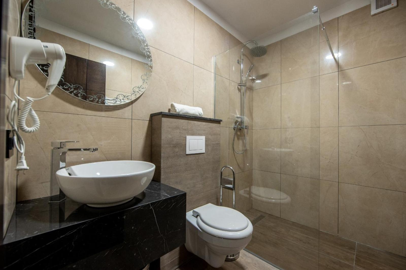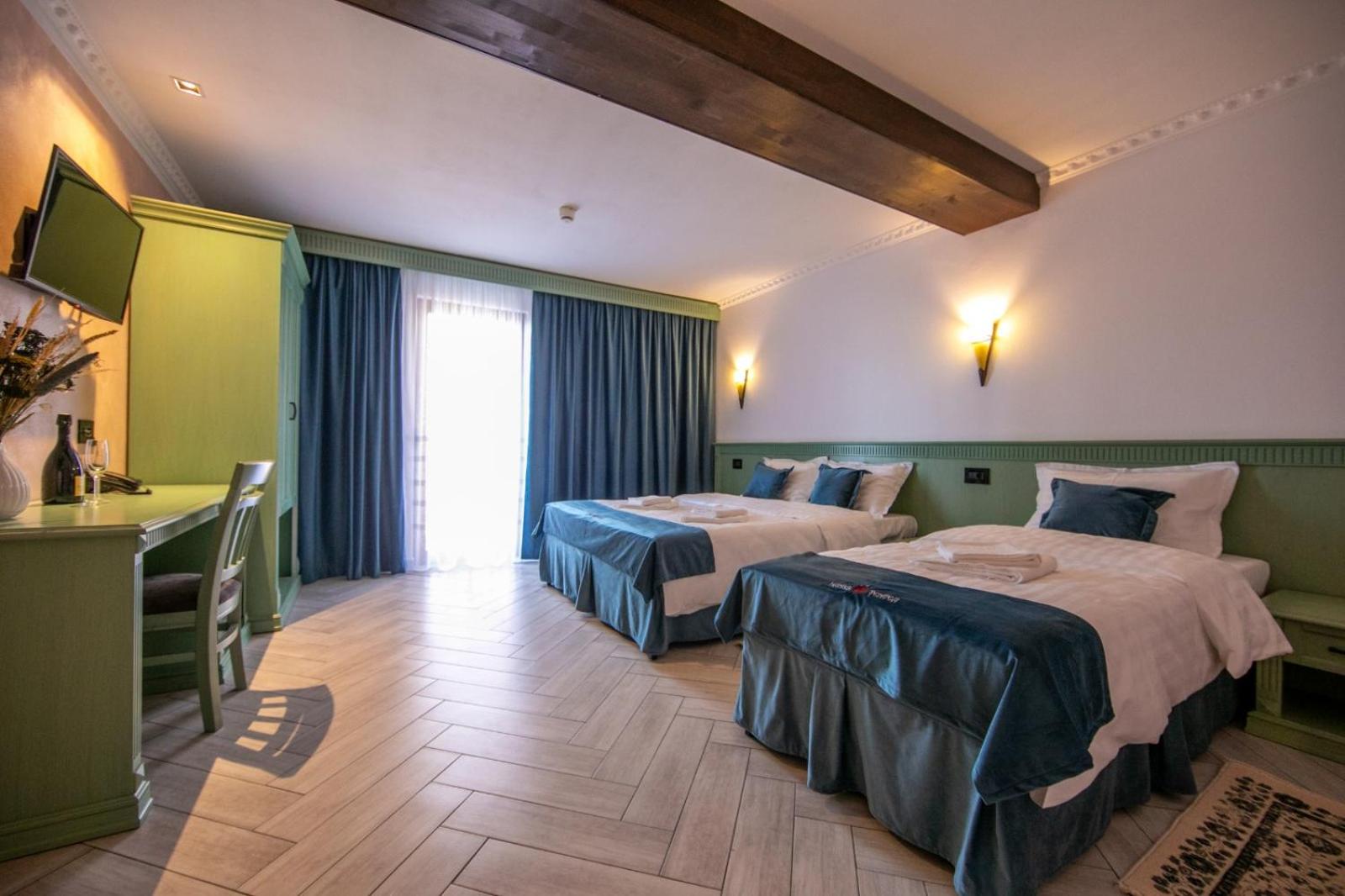 Relax in our cozy rooms equipped with modern amenities, including a flat-screen TV, private bathroom with a bidet, and a charming balcony overlooking the picturesque surroundings.