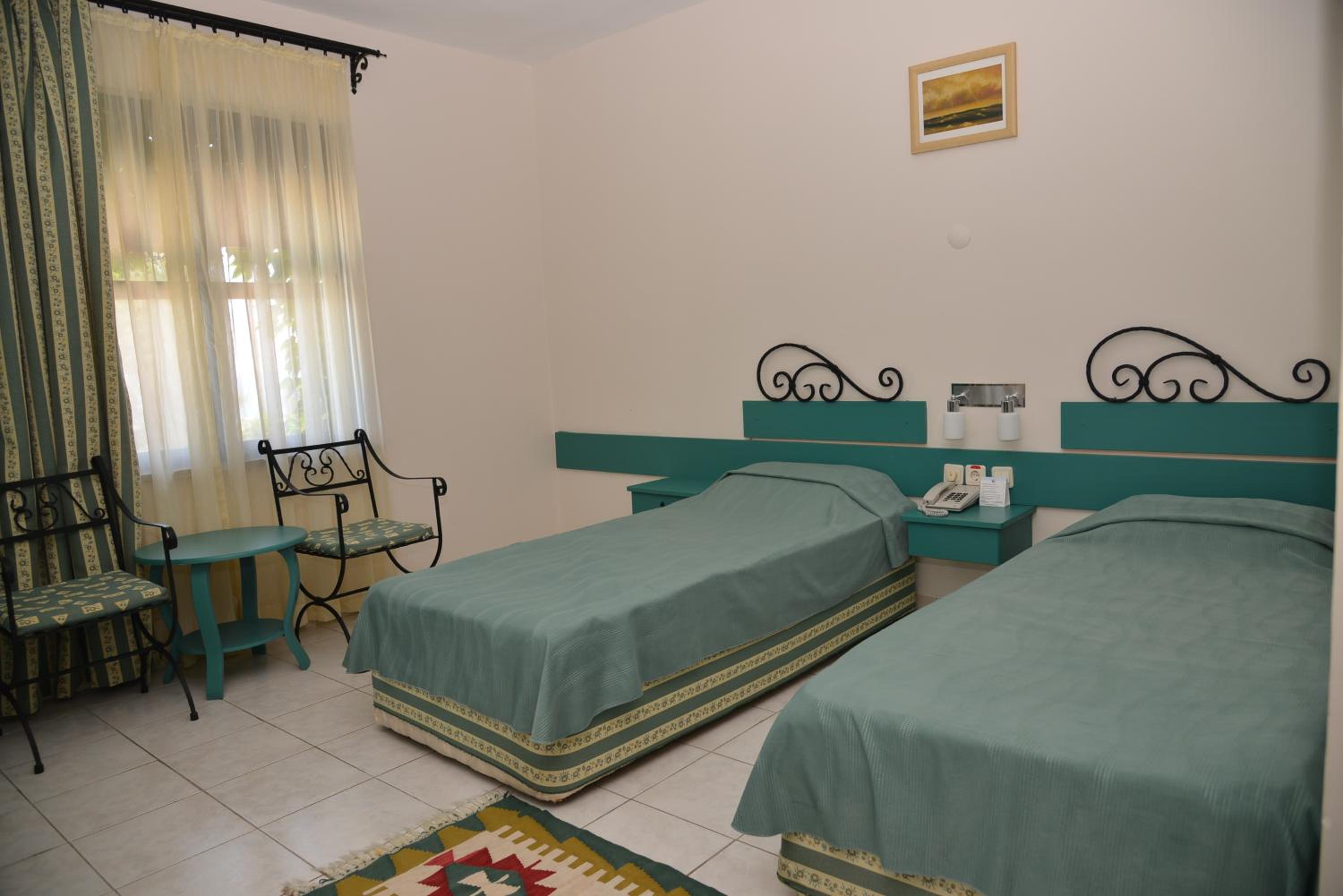 Elegant Accommodations: Stay in stylish rooms adorned in blue hues, featuring modern amenities and balconies with garden or Mediterranean views.