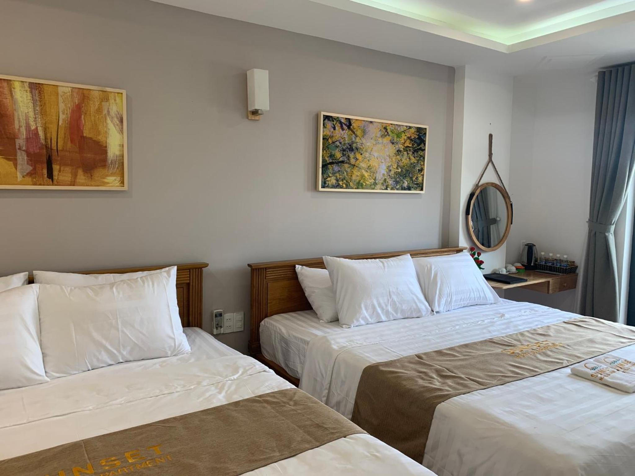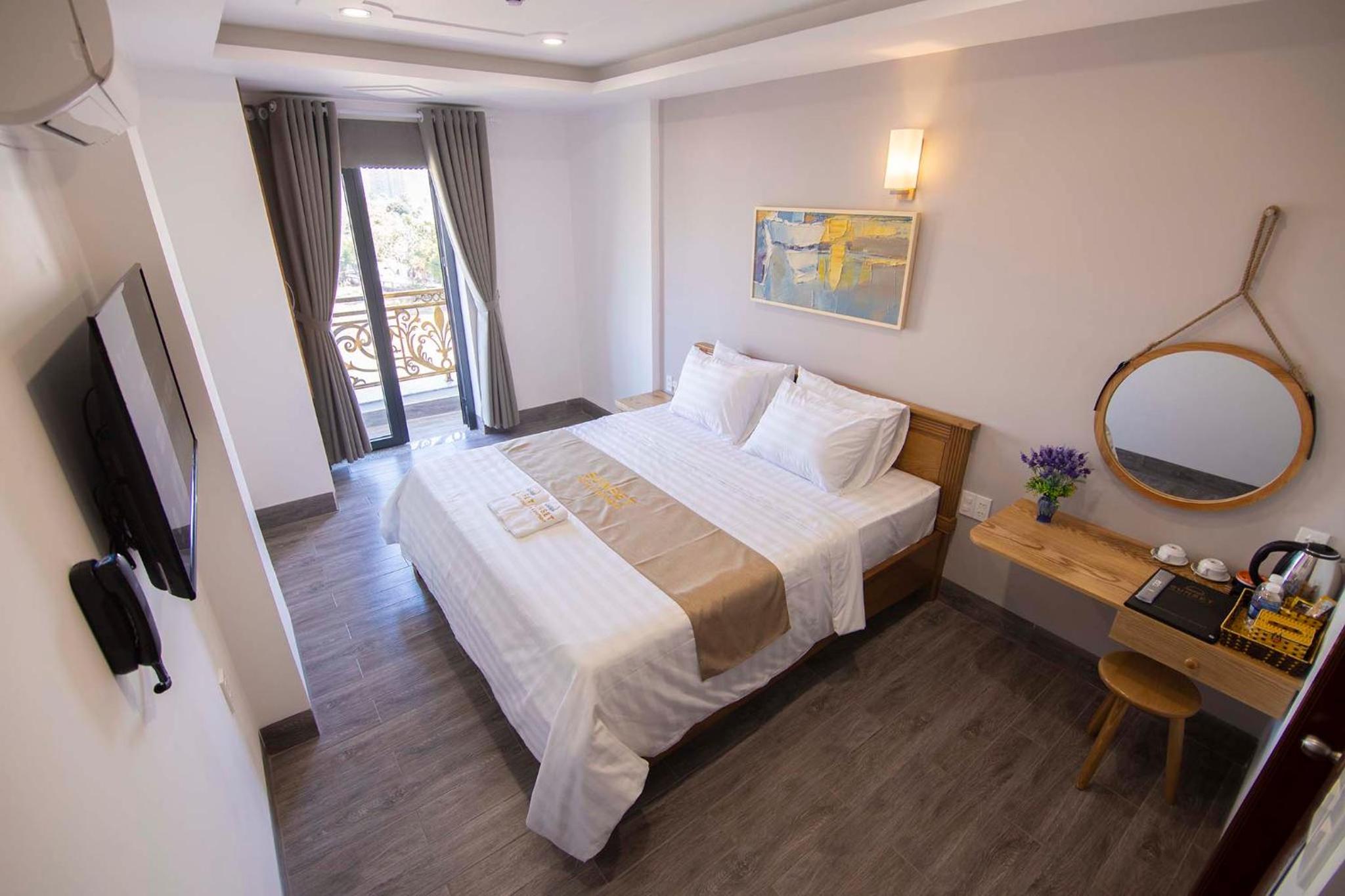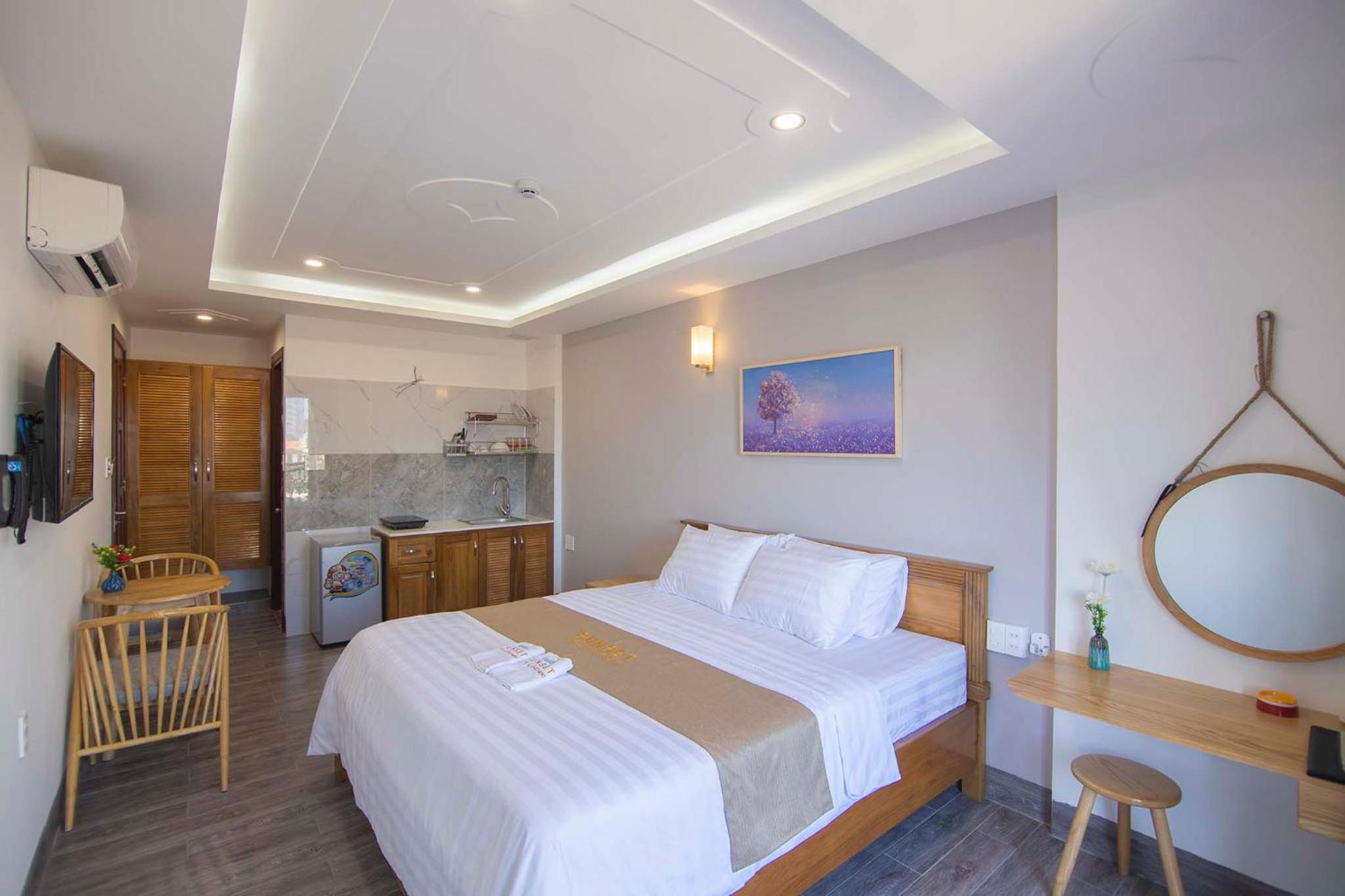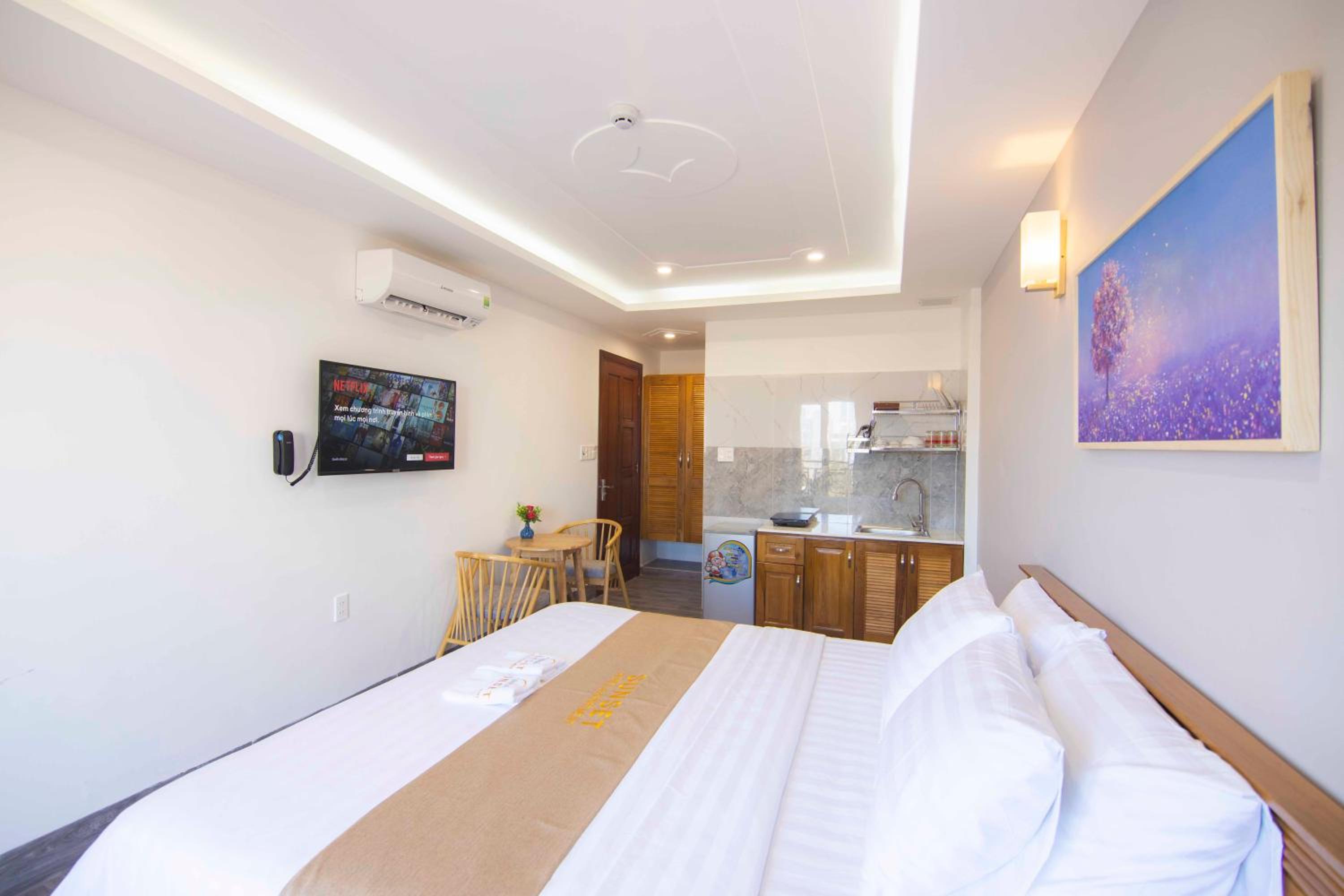 Experience the ultimate comfort at Sunset Hotel & Apartment in Vung Tau. Indulge in our well-equipped rooms with modern amenities such as air conditioning, flat-screen TV, and free WiFi. Wake up to breathtaking views of either the mountains or the city from your private balcony.
