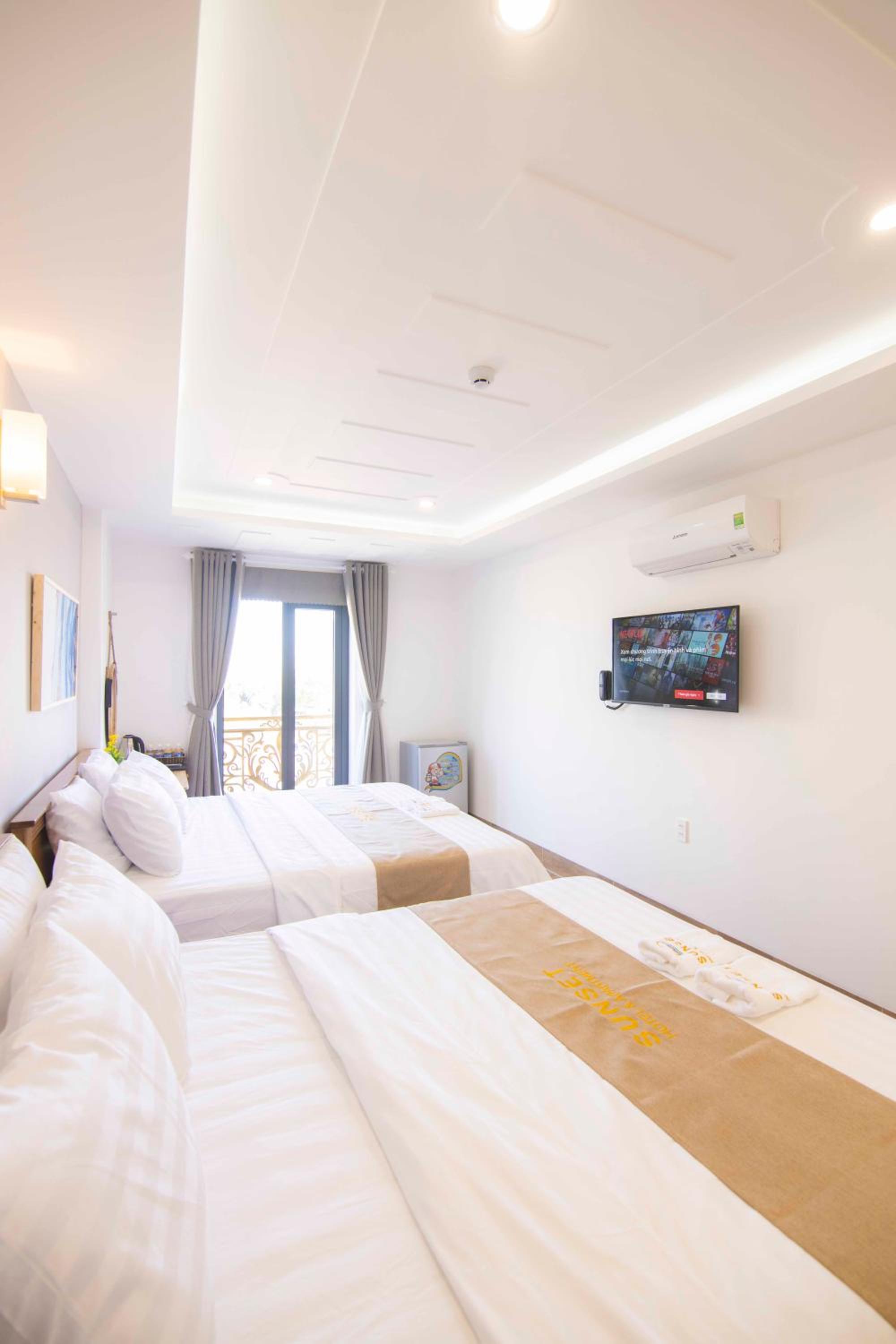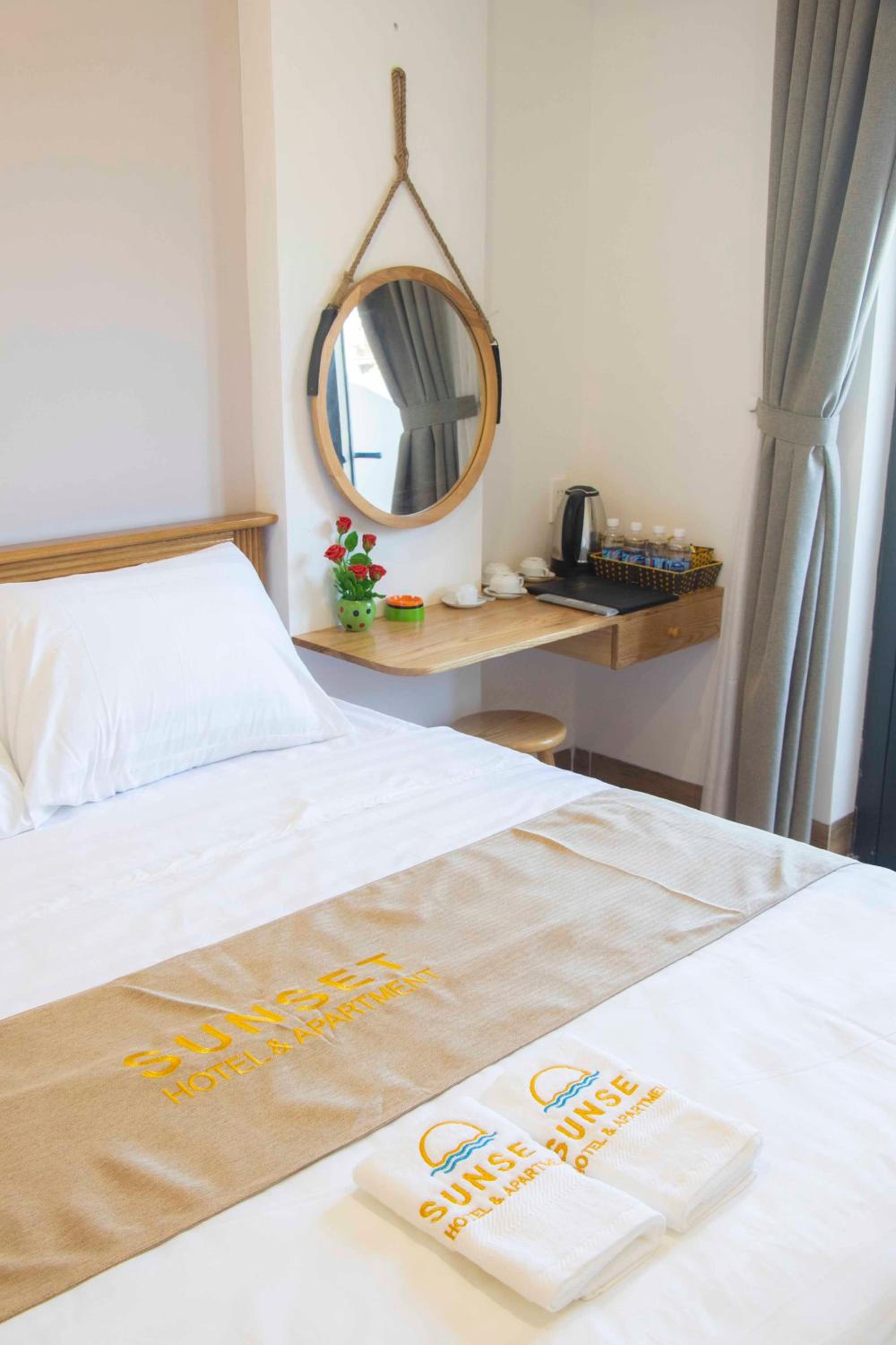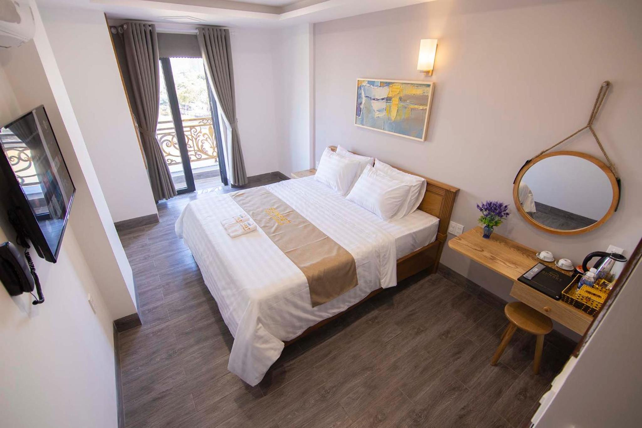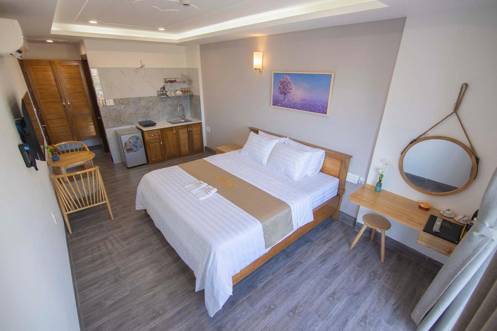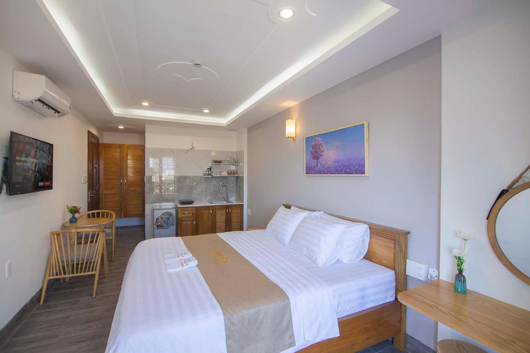 Experience the ultimate comfort at Sunset Hotel & Apartment in Vung Tau. Indulge in our well-equipped rooms with modern amenities such as air conditioning, flat-screen TV, and free WiFi. Wake up to breathtaking views of either the mountains or the city from your private balcony.