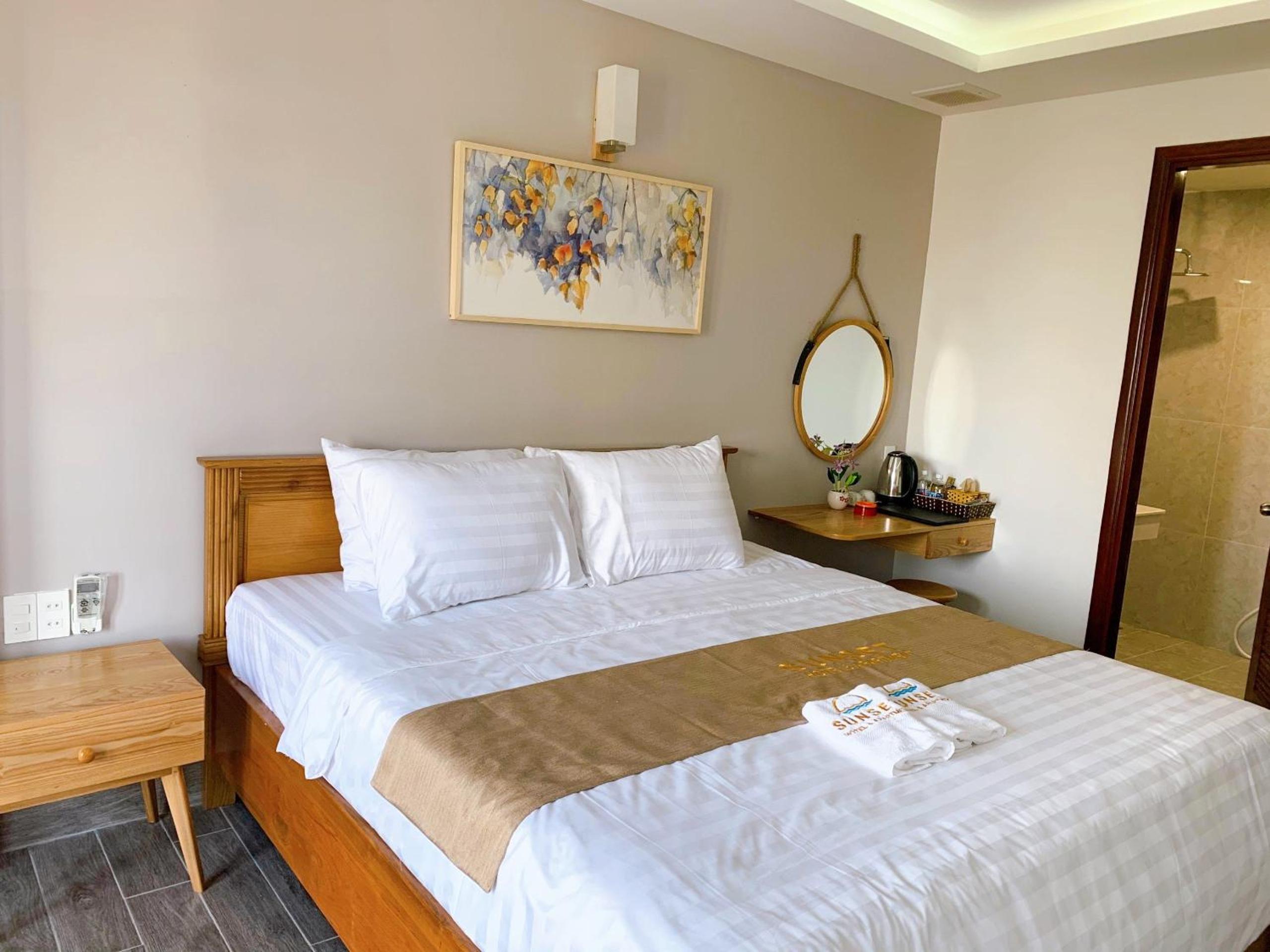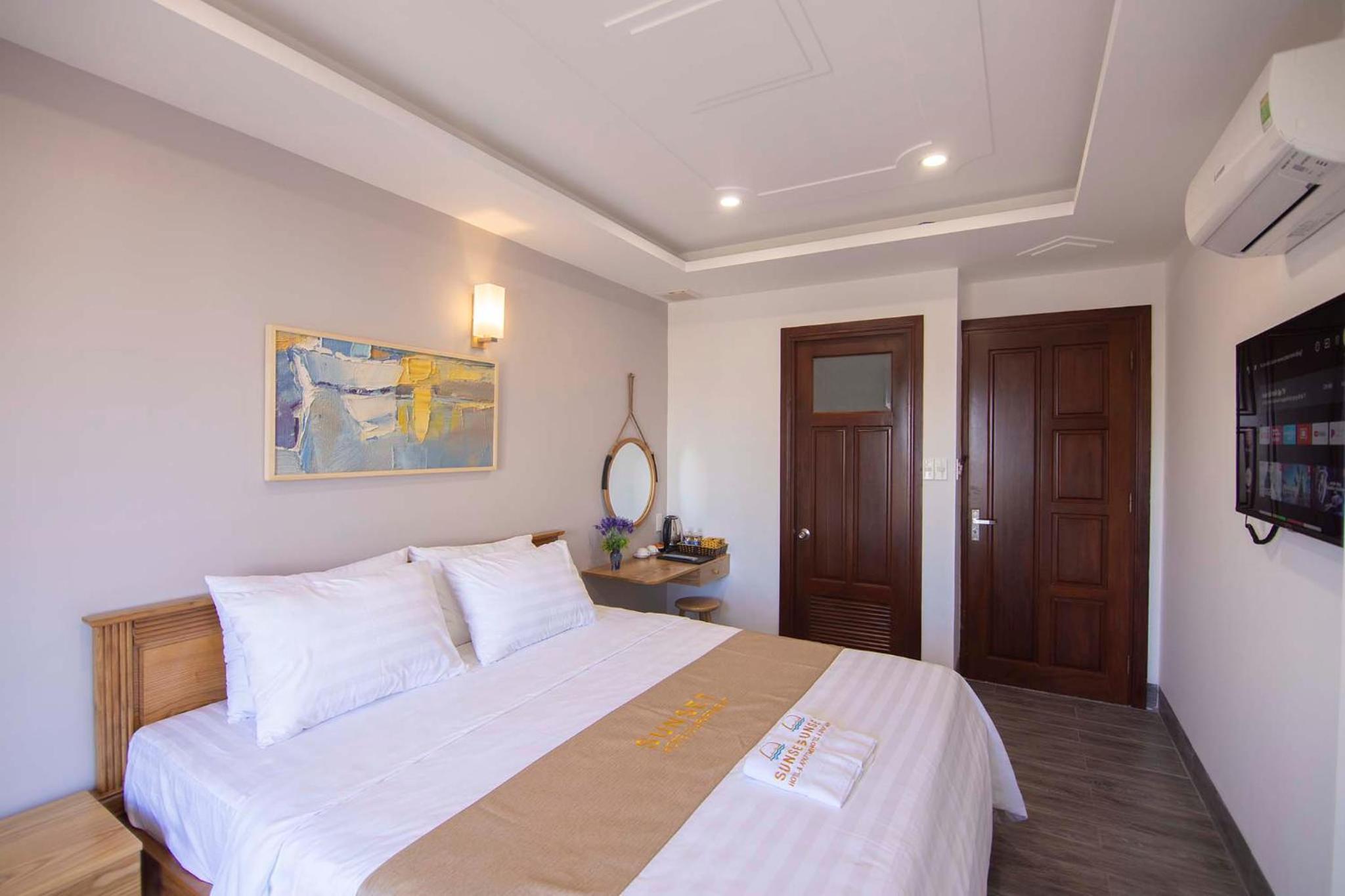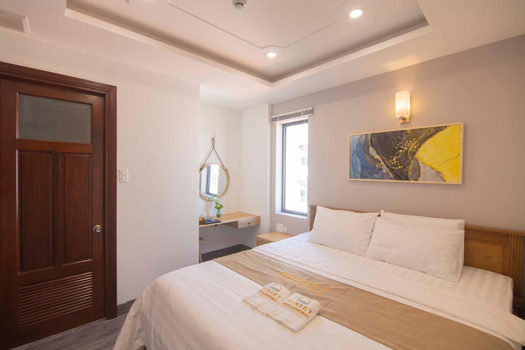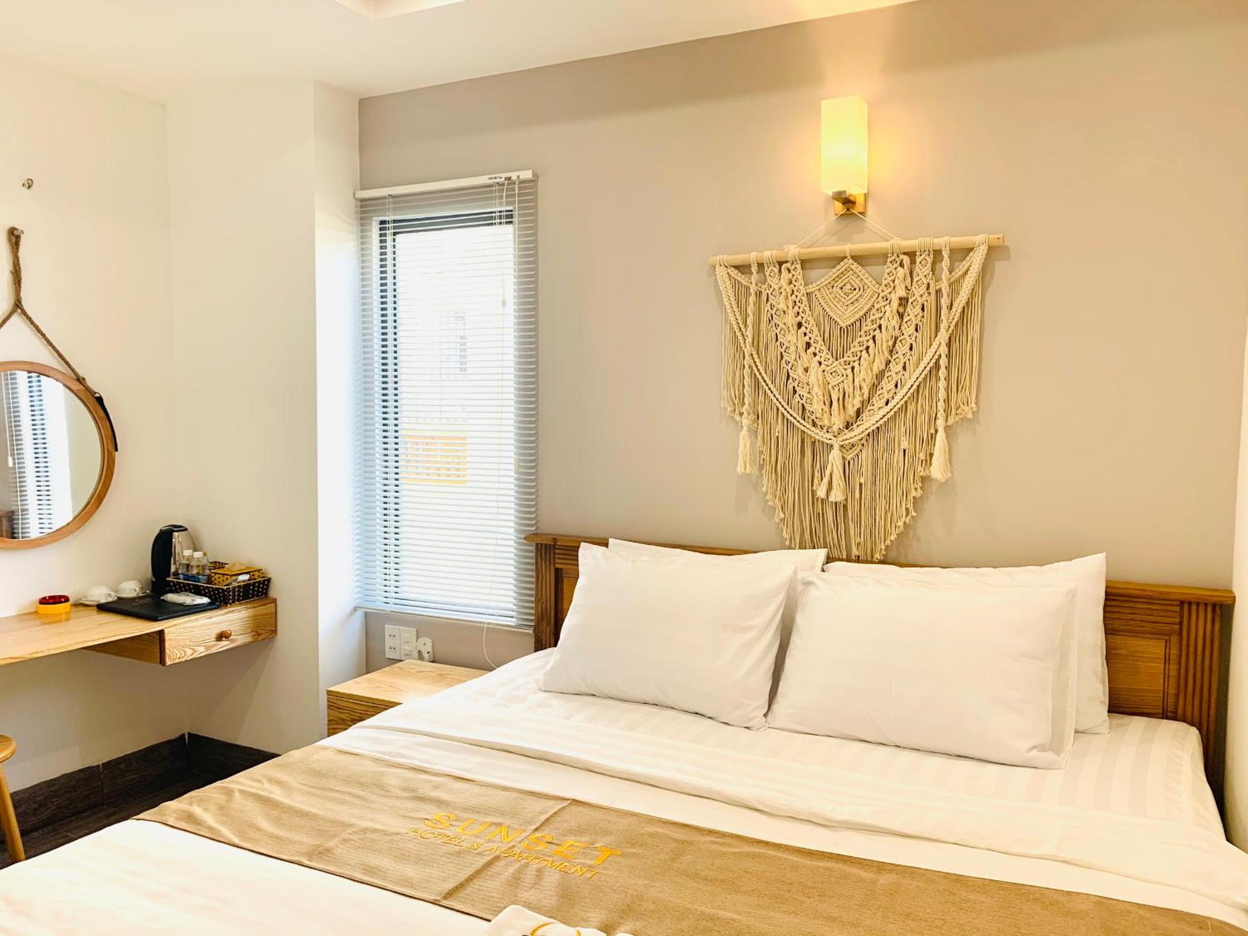 Experience the ultimate comfort at Sunset Hotel & Apartment in Vung Tau. Indulge in our well-equipped rooms with modern amenities such as air conditioning, flat-screen TV, and free WiFi. Wake up to breathtaking views of either the mountains or the city from your private balcony.