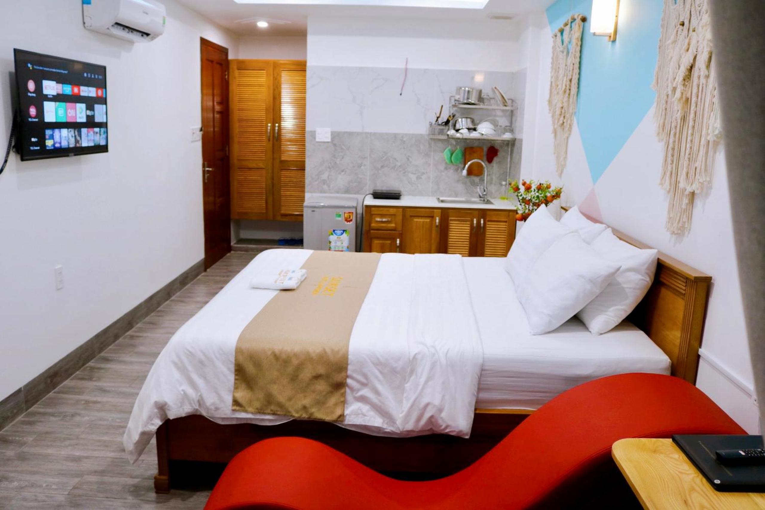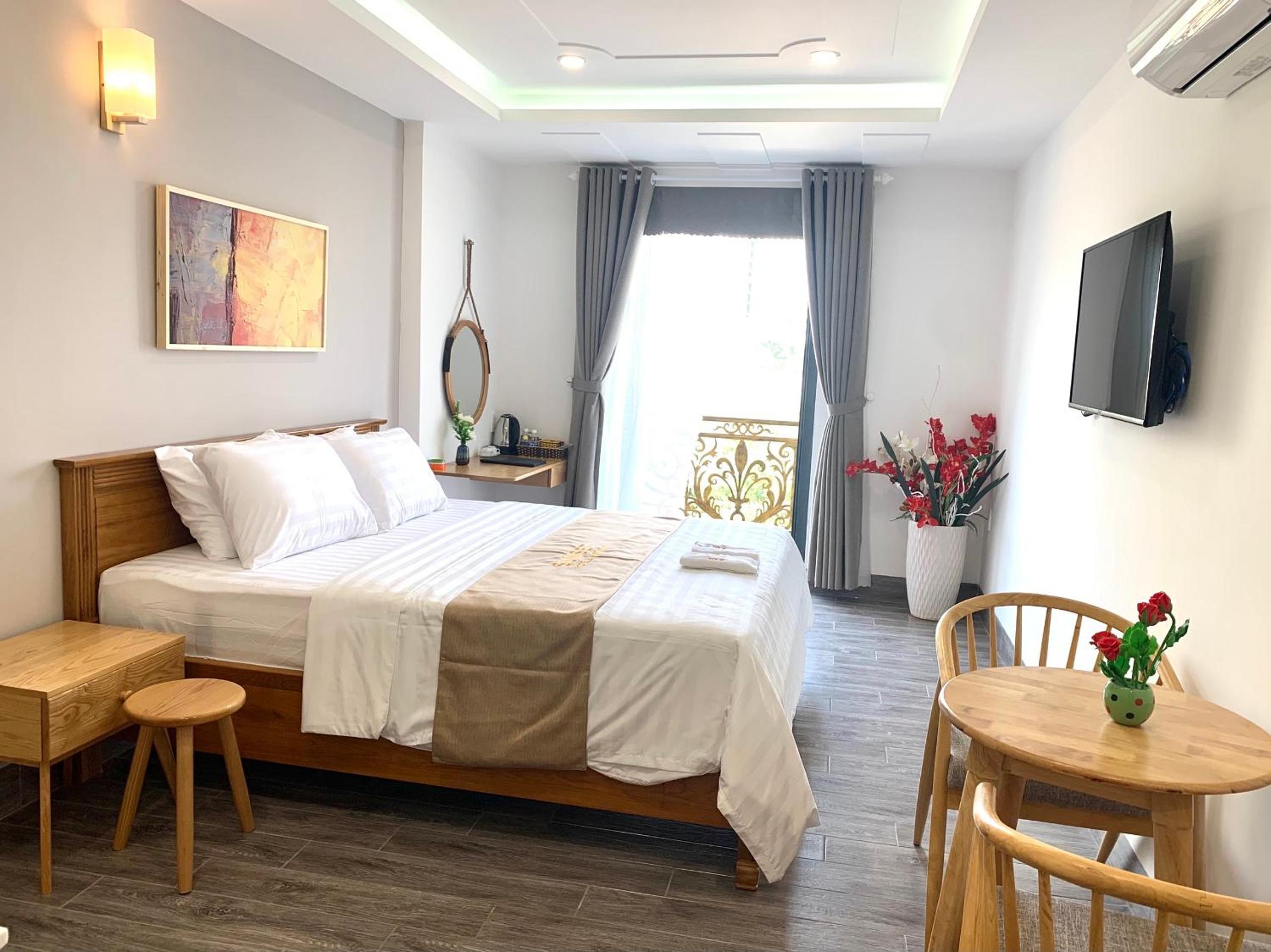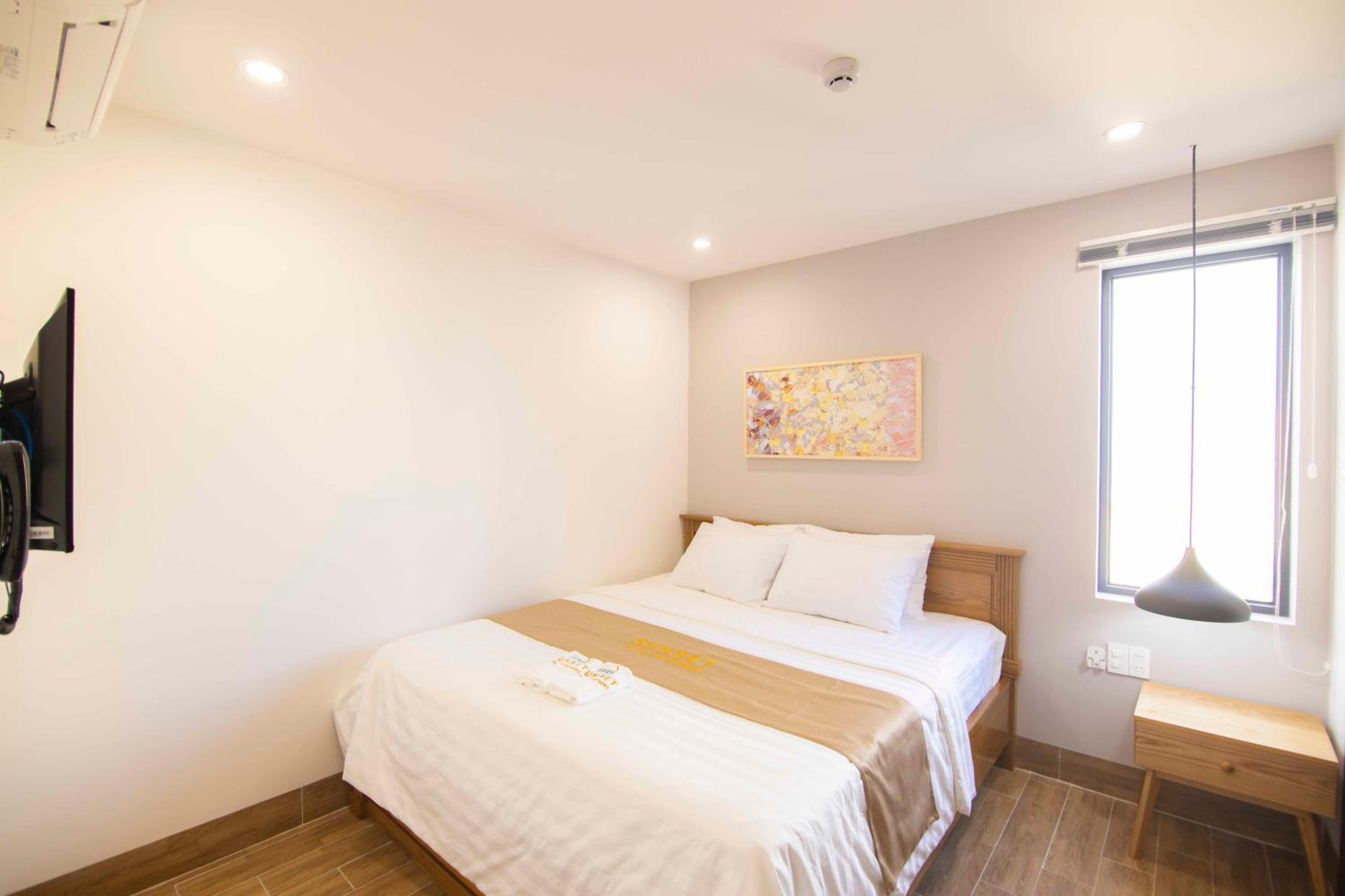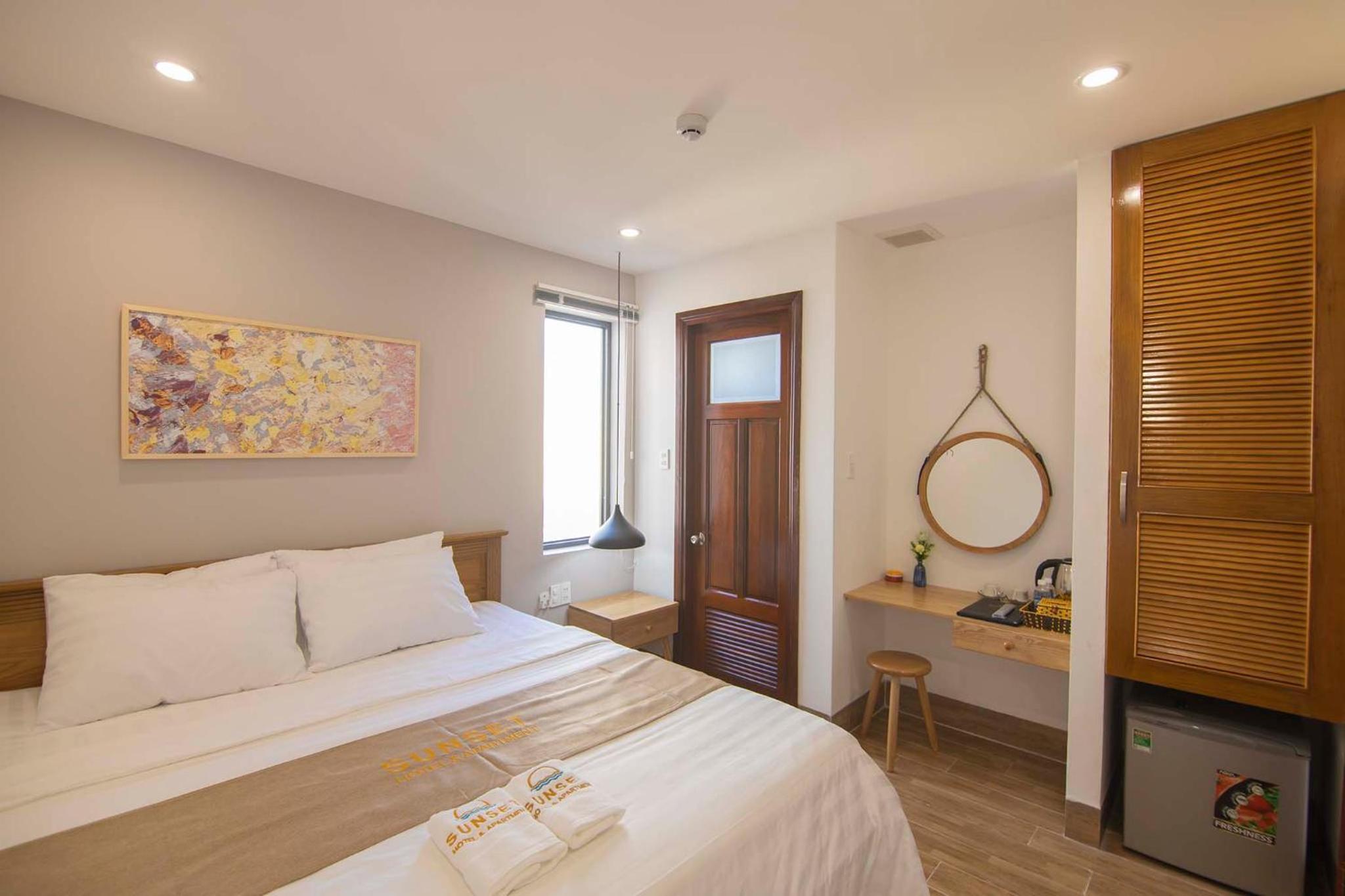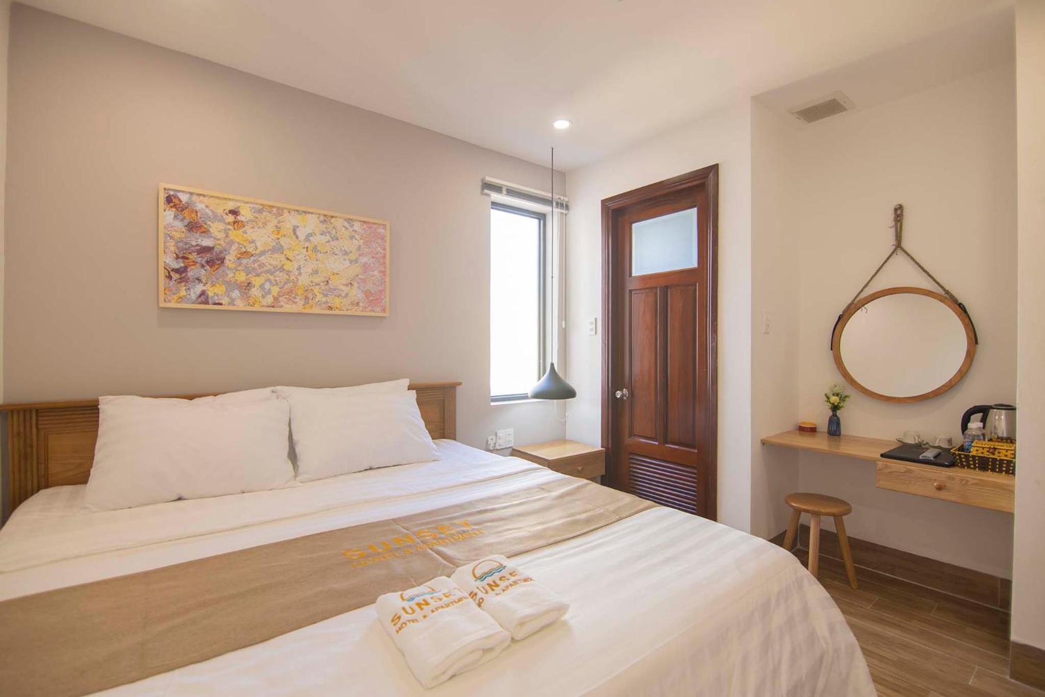 Experience the ultimate comfort at Sunset Hotel & Apartment in Vung Tau. Indulge in our well-equipped rooms with modern amenities such as air conditioning, flat-screen TV, and free WiFi. Wake up to breathtaking views of either the mountains or the city from your private balcony.