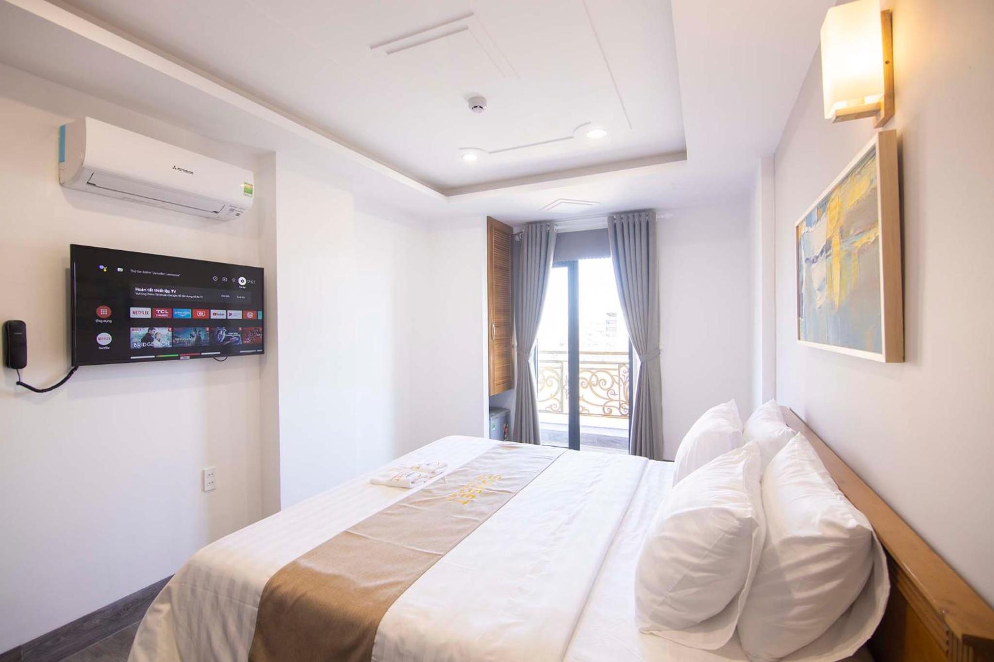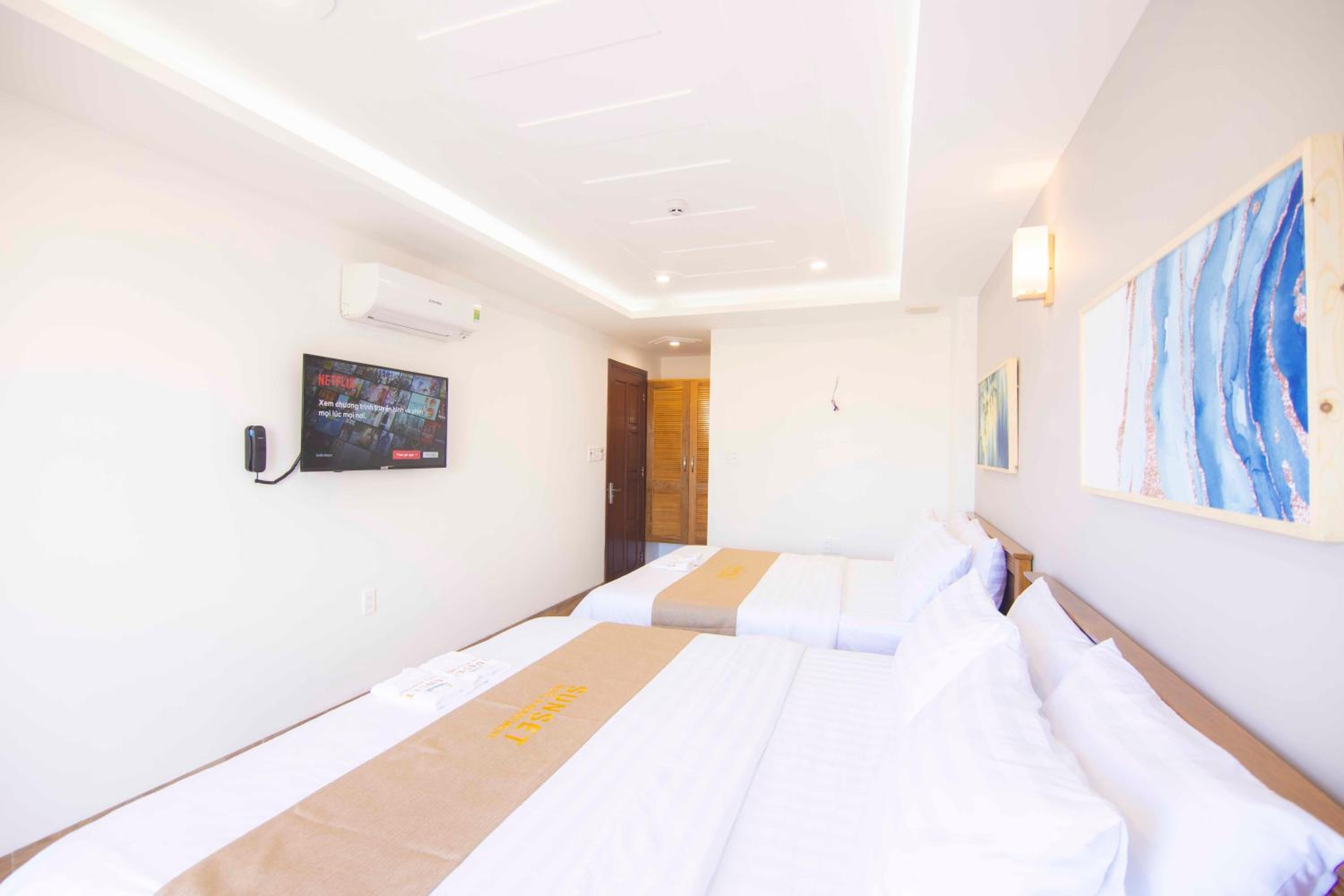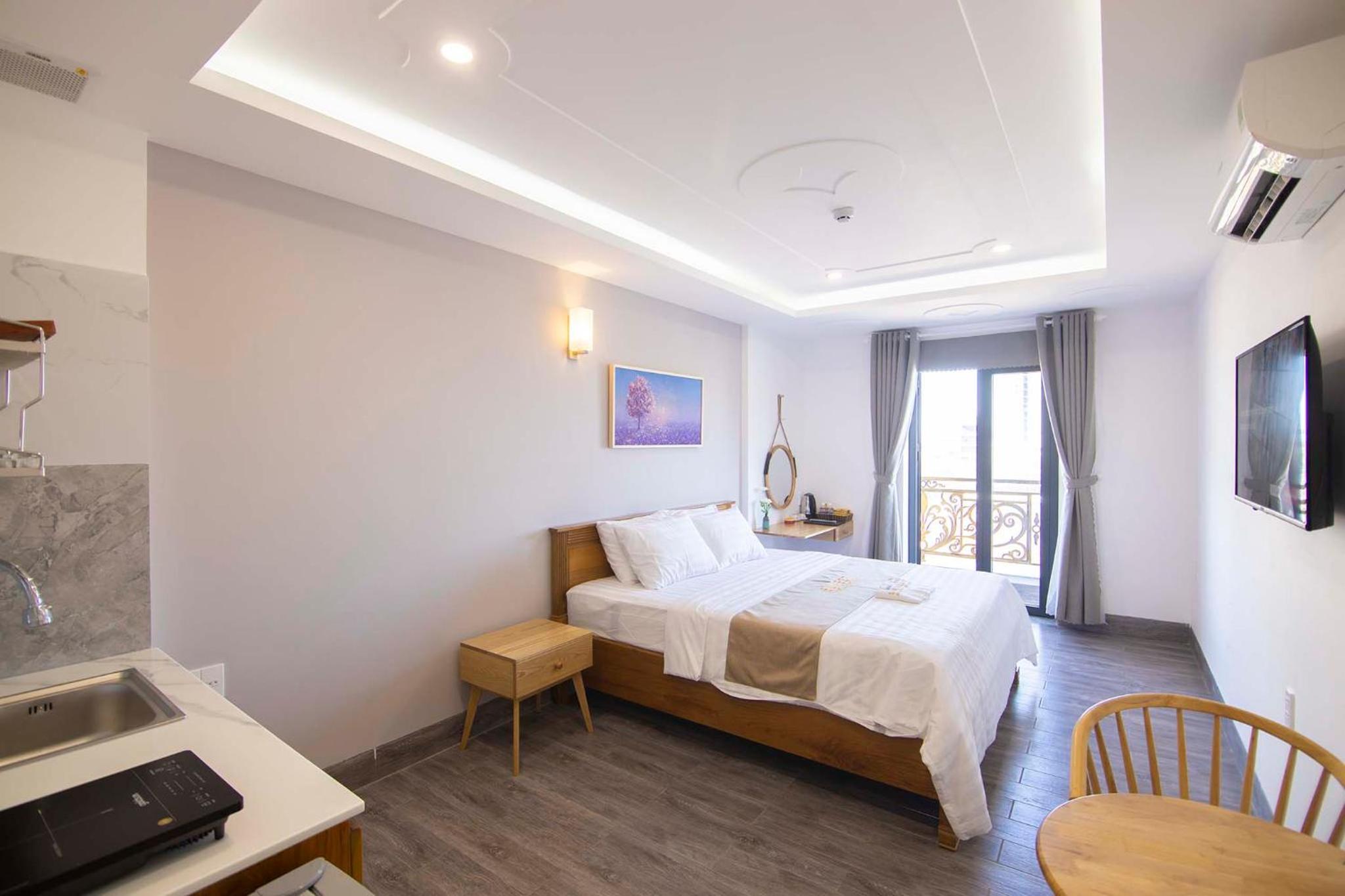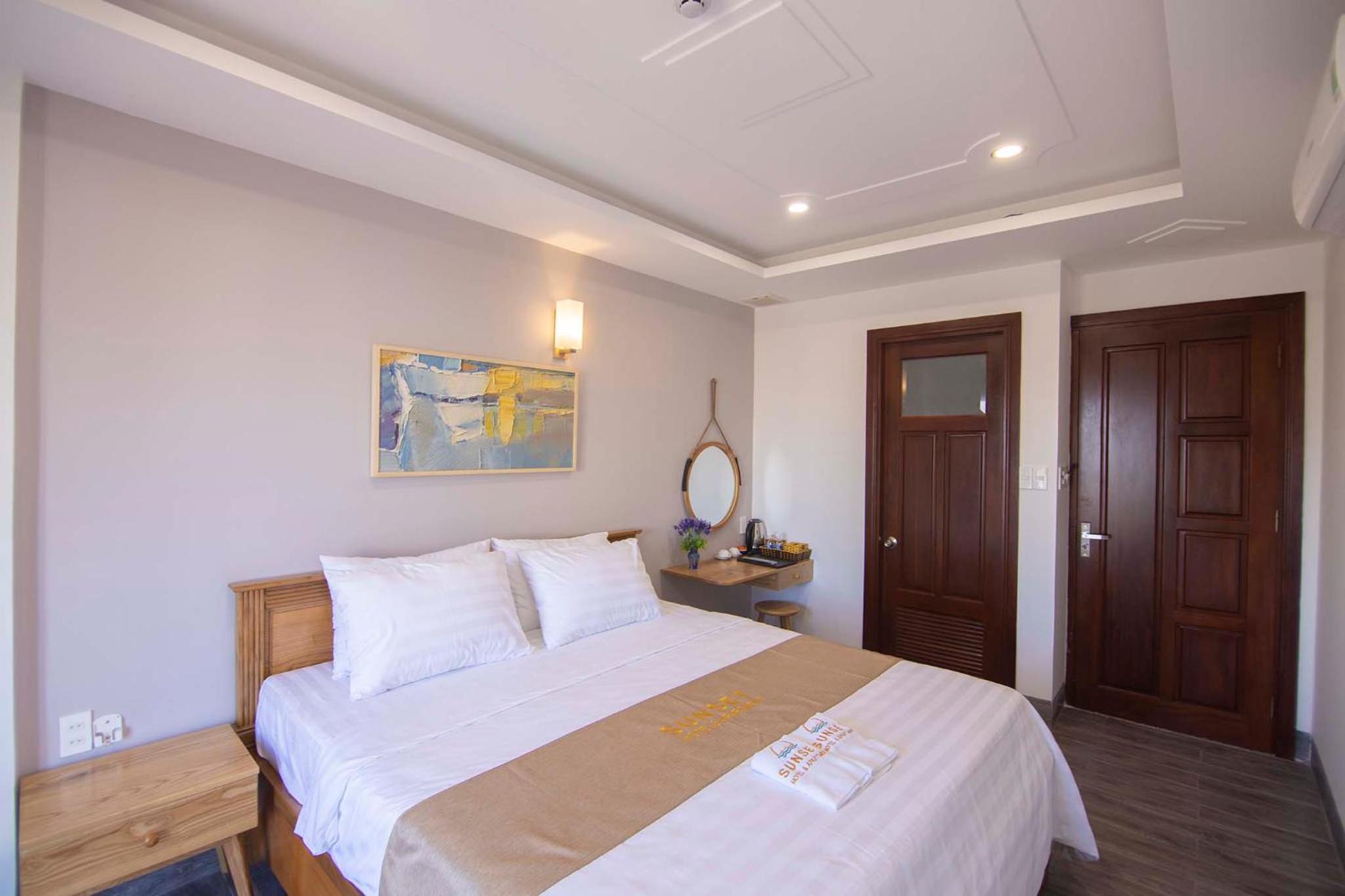 Experience the ultimate comfort at Sunset Hotel & Apartment in Vung Tau. Indulge in our well-equipped rooms with modern amenities such as air conditioning, flat-screen TV, and free WiFi. Wake up to breathtaking views of either the mountains or the city from your private balcony.