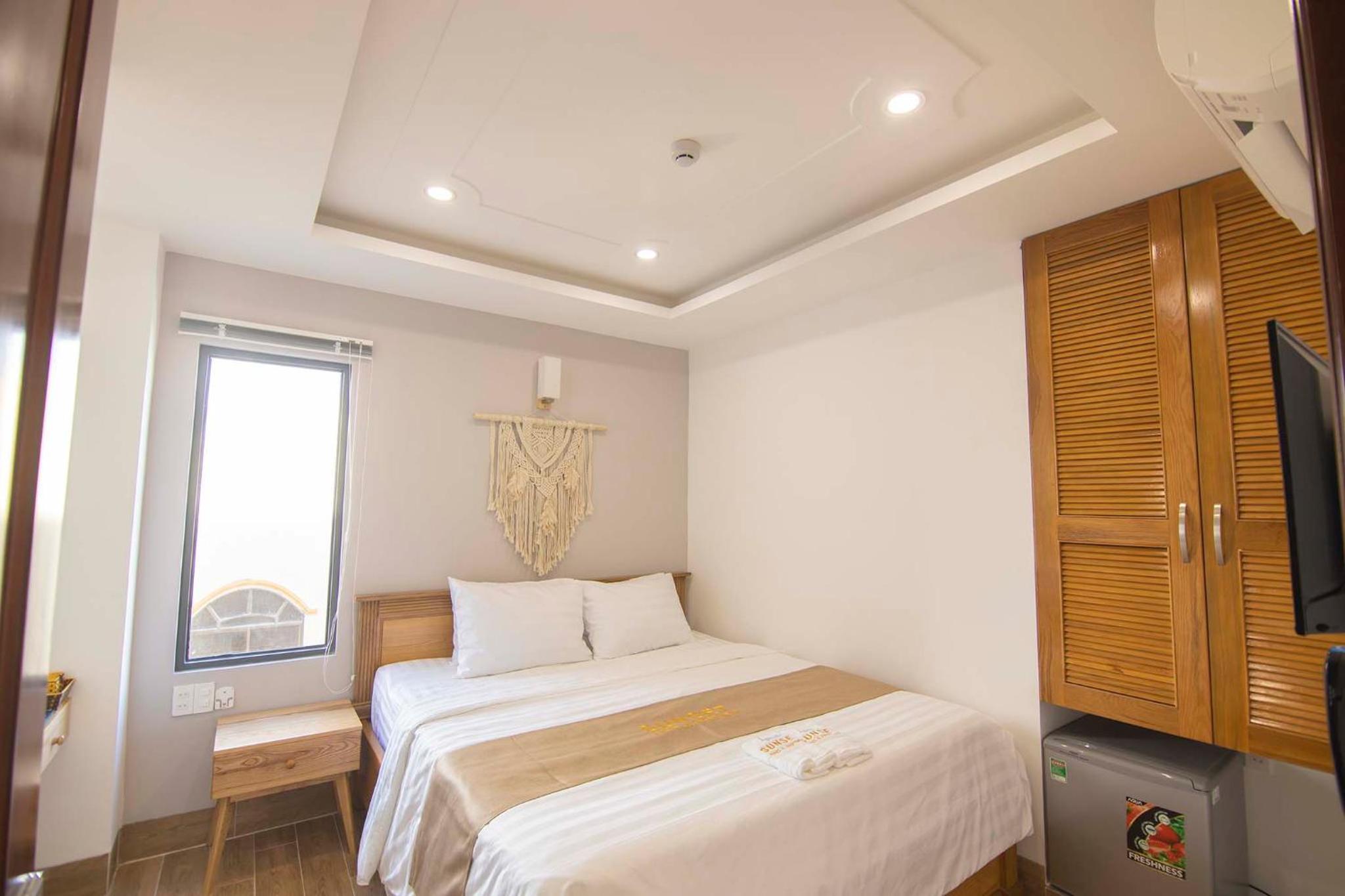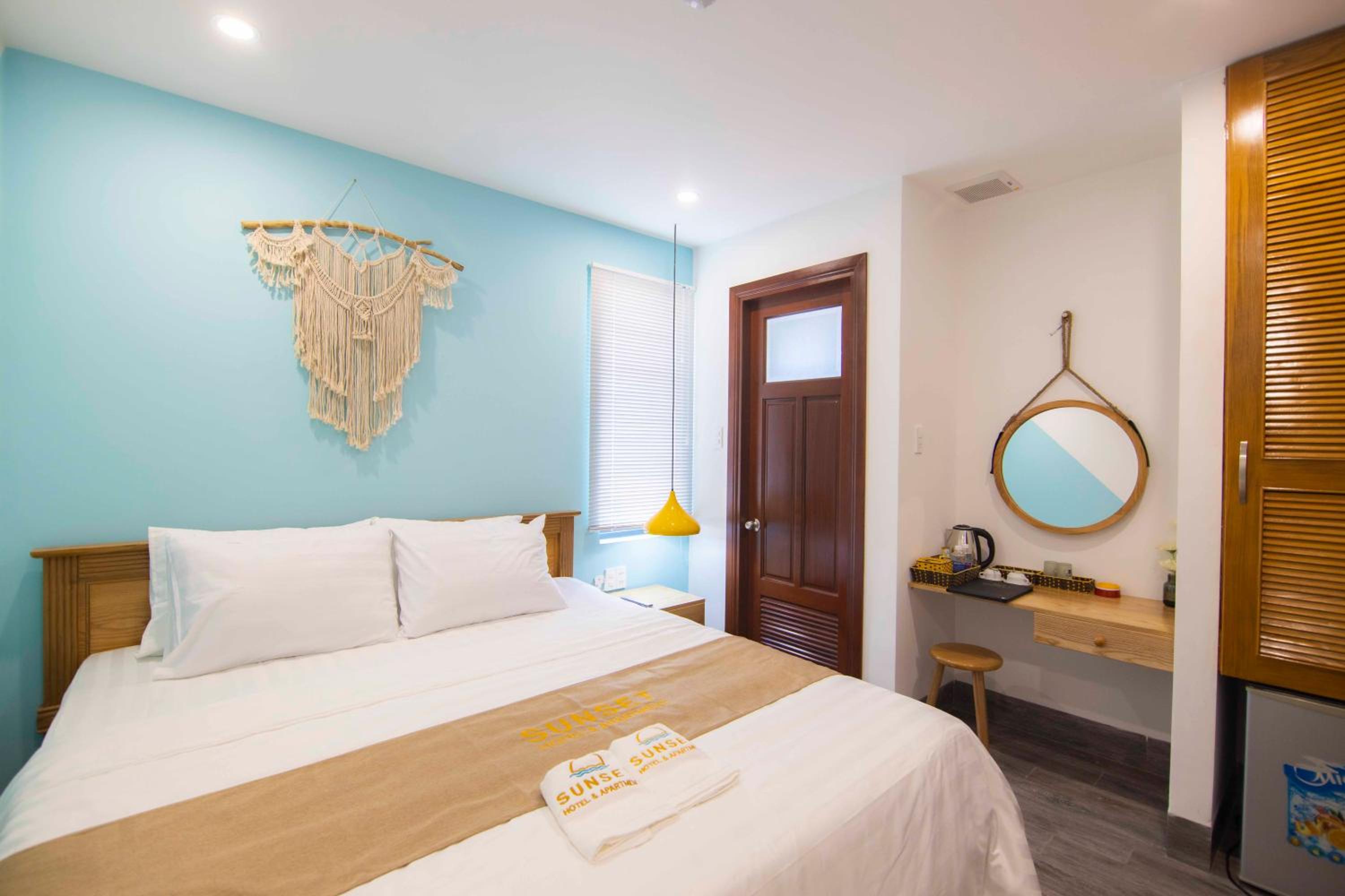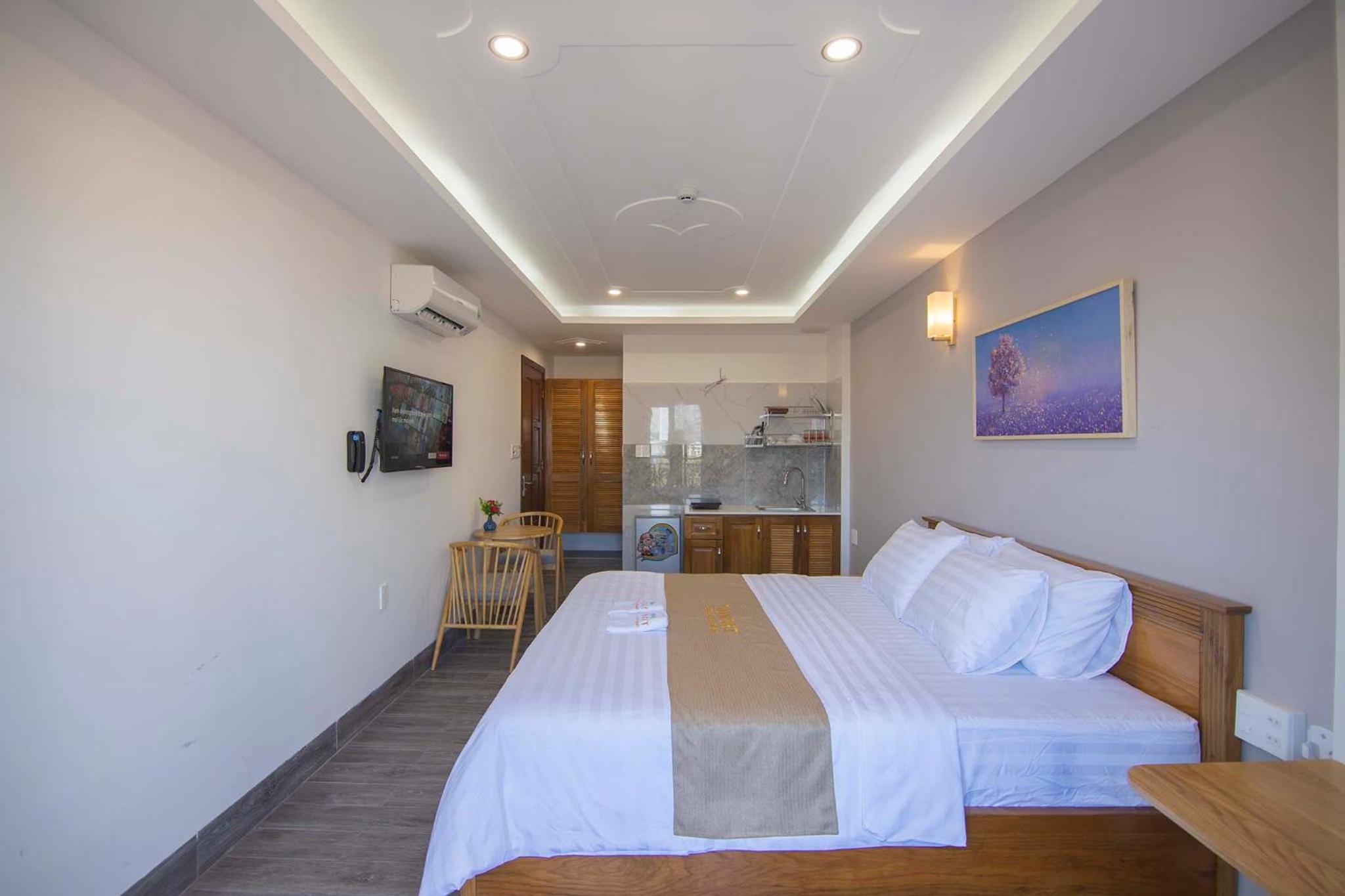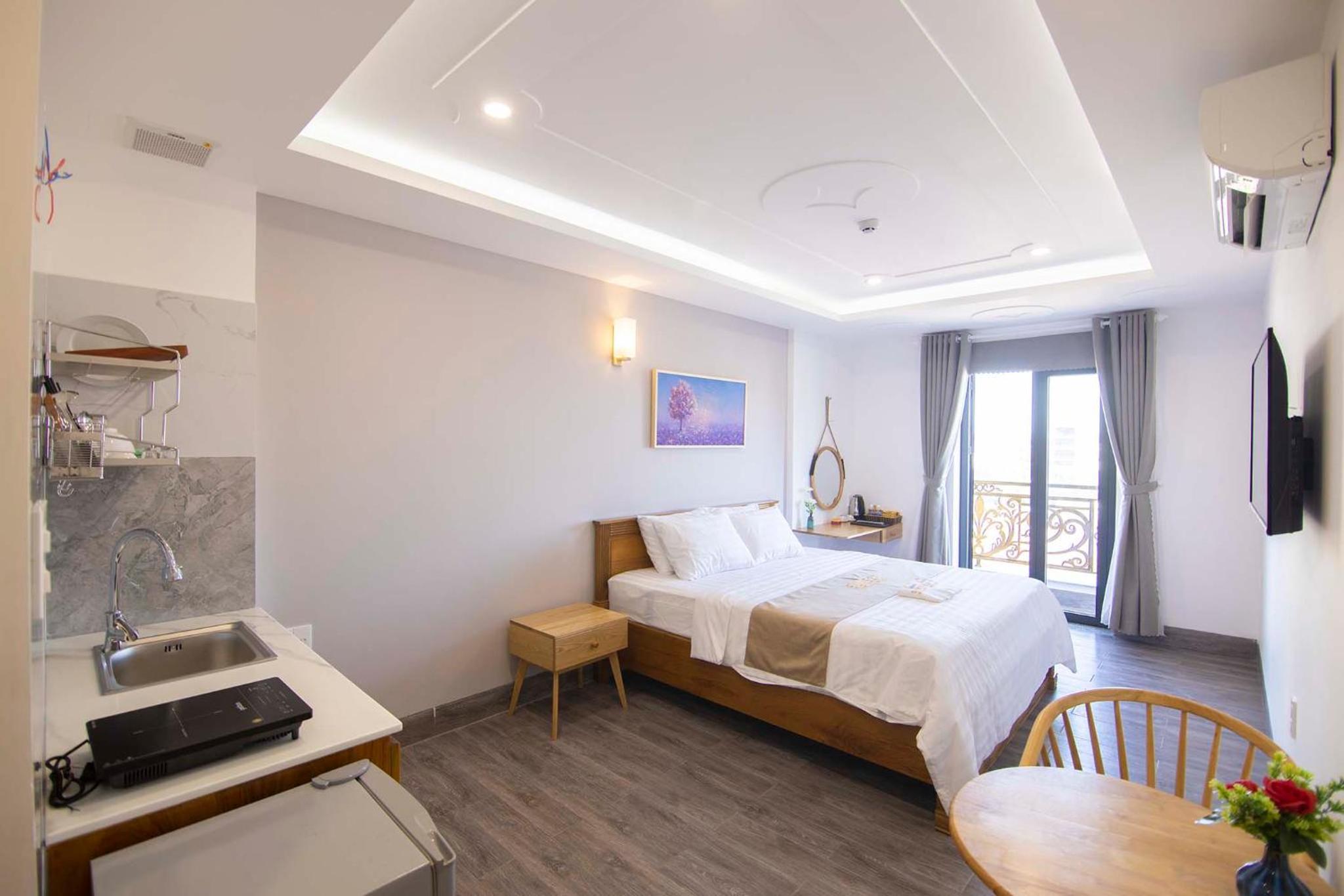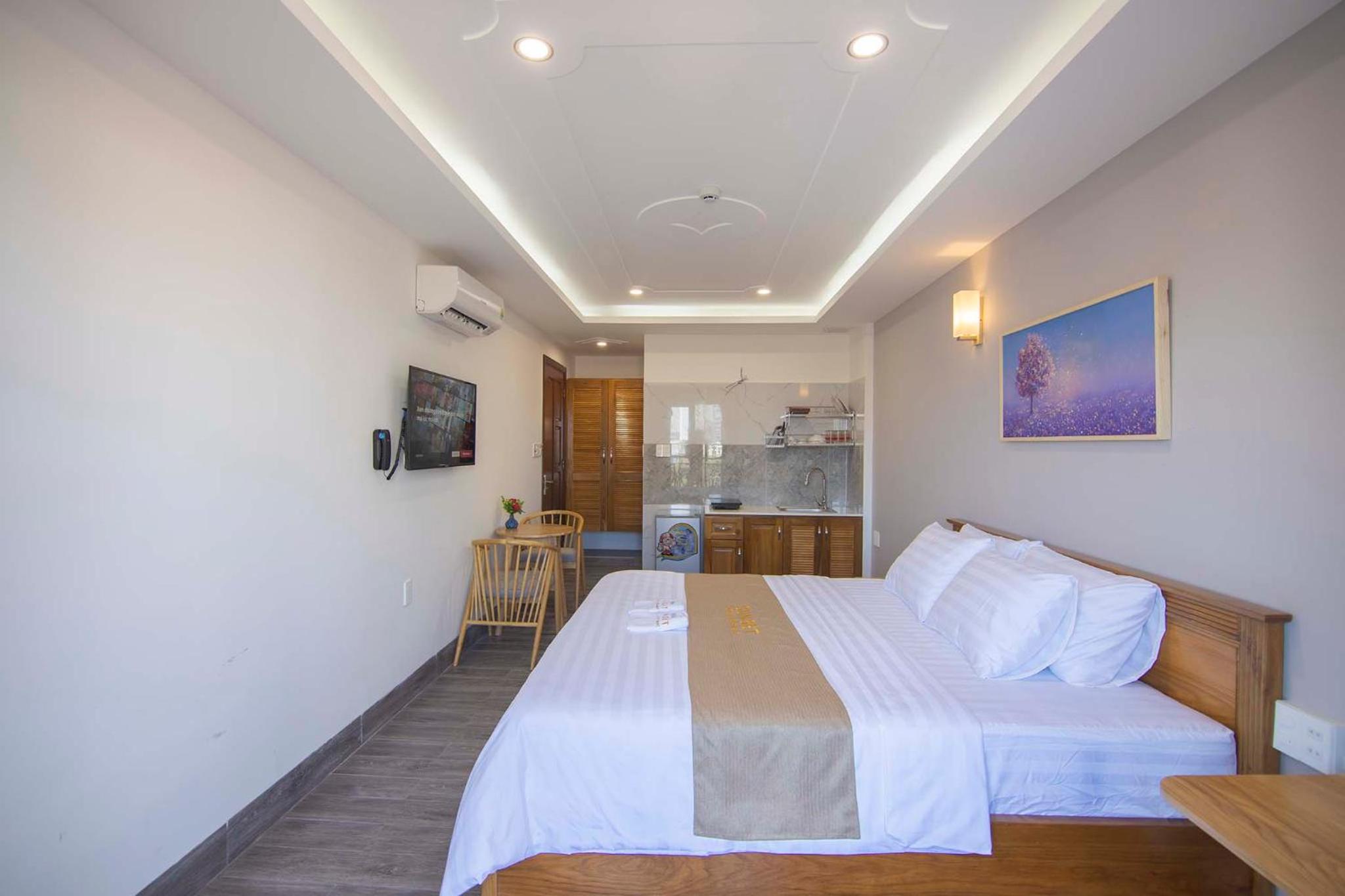 Experience the ultimate comfort at Sunset Hotel & Apartment in Vung Tau. Indulge in our well-equipped rooms with modern amenities such as air conditioning, flat-screen TV, and free WiFi. Wake up to breathtaking views of either the mountains or the city from your private balcony.