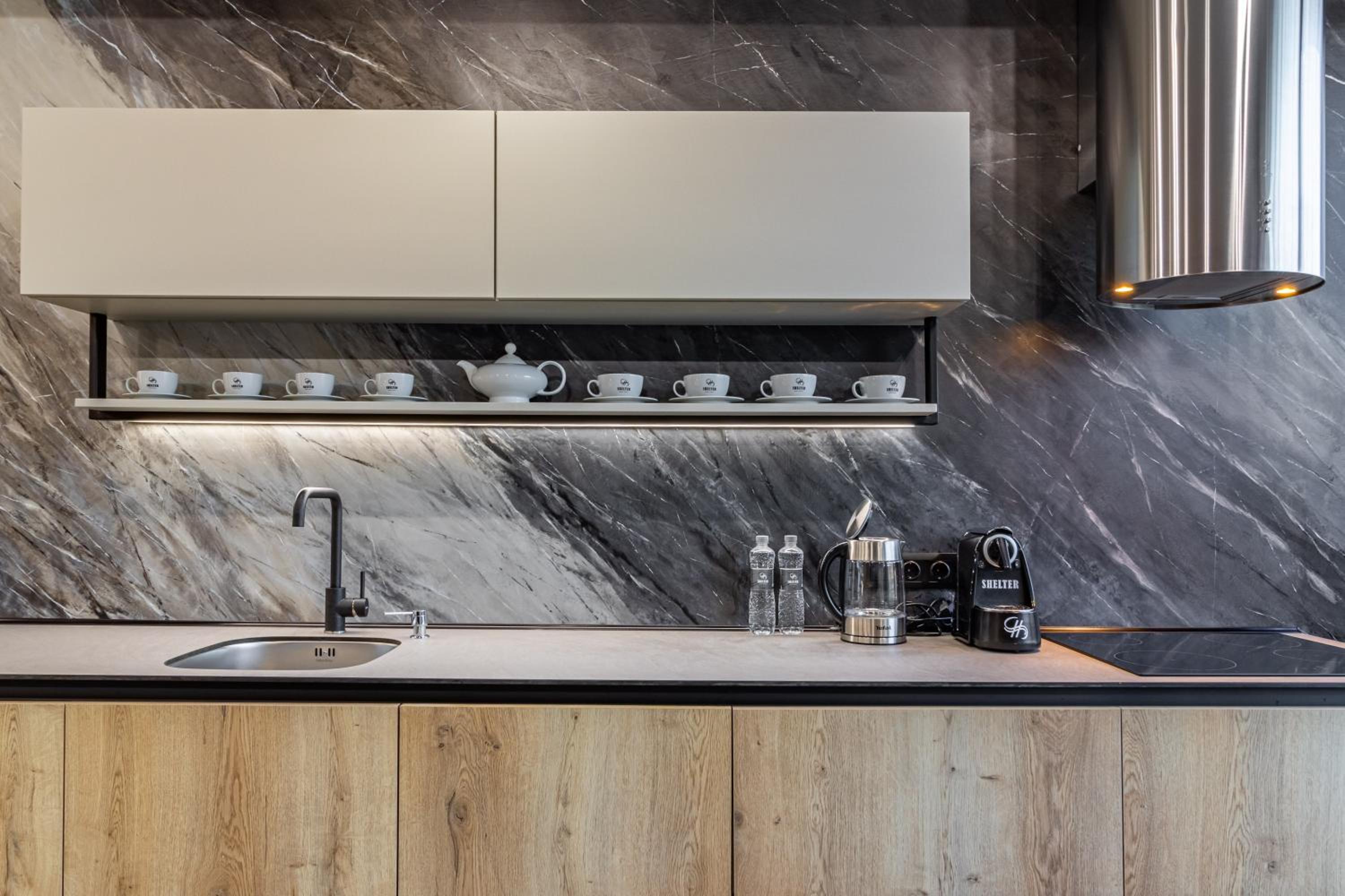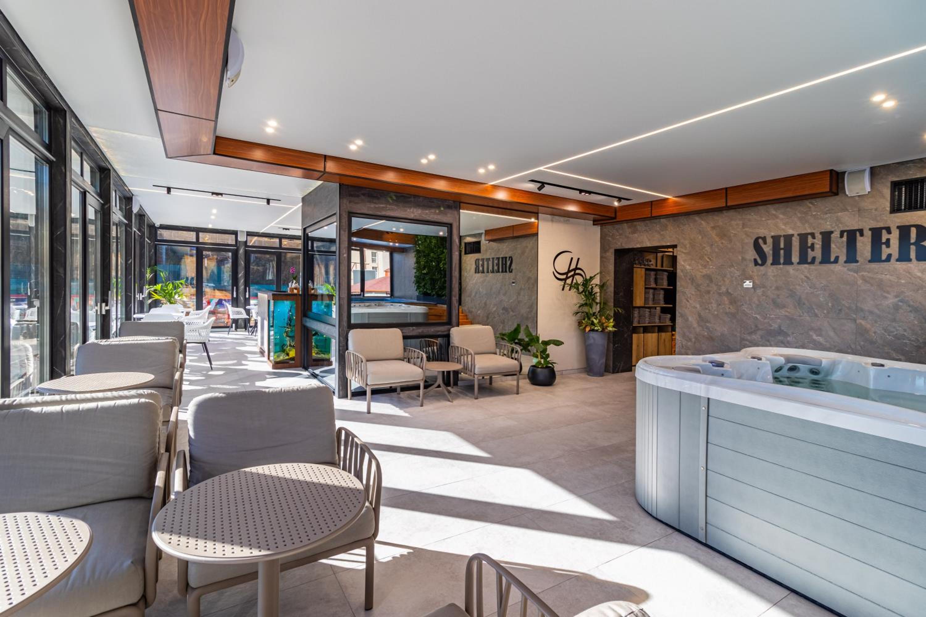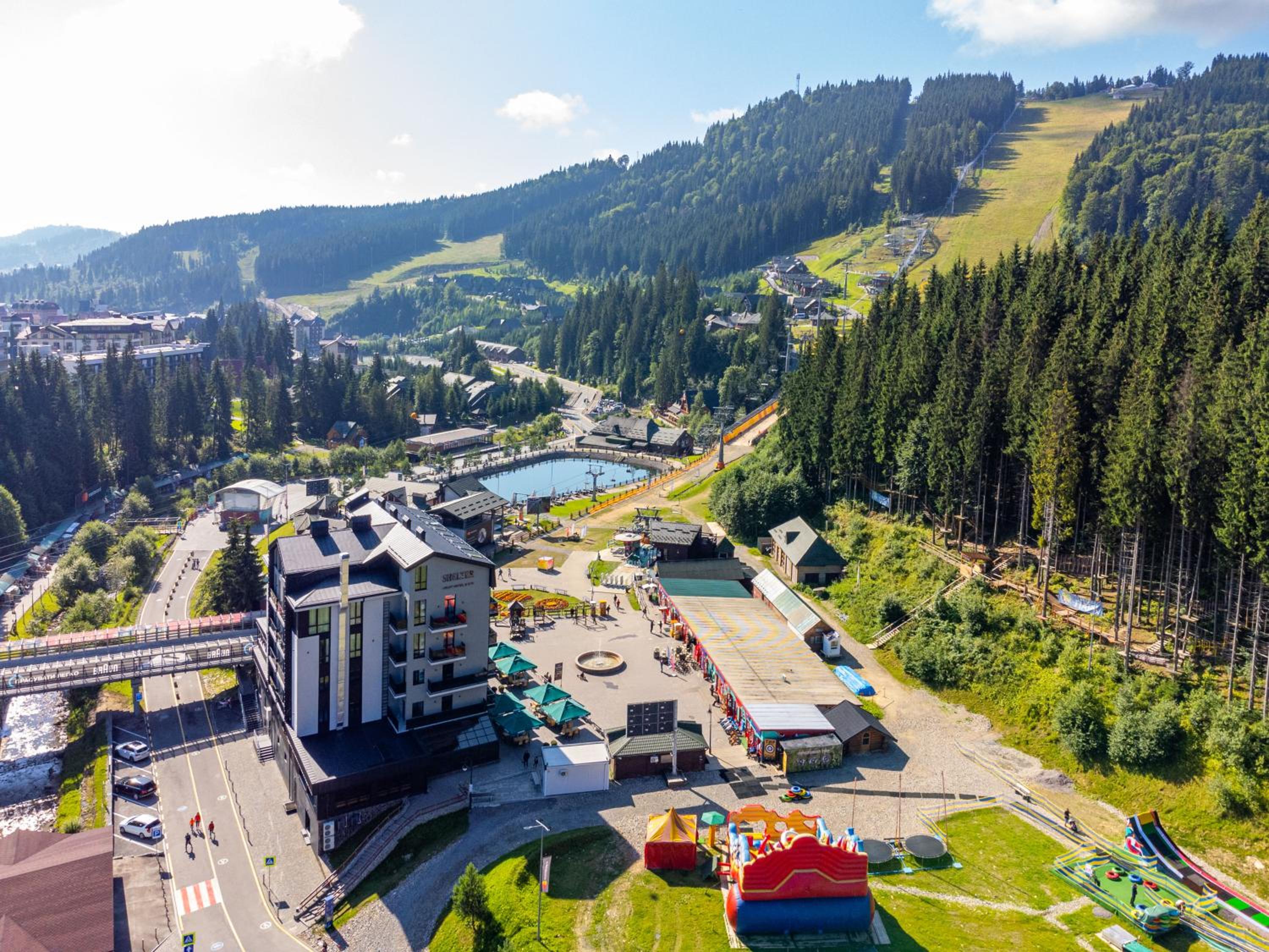 Shelter Apart Hotel, nestled in Bukovel, offers stunning mountain views and a serene escape with a hot tub and sauna for ultimate relaxation.