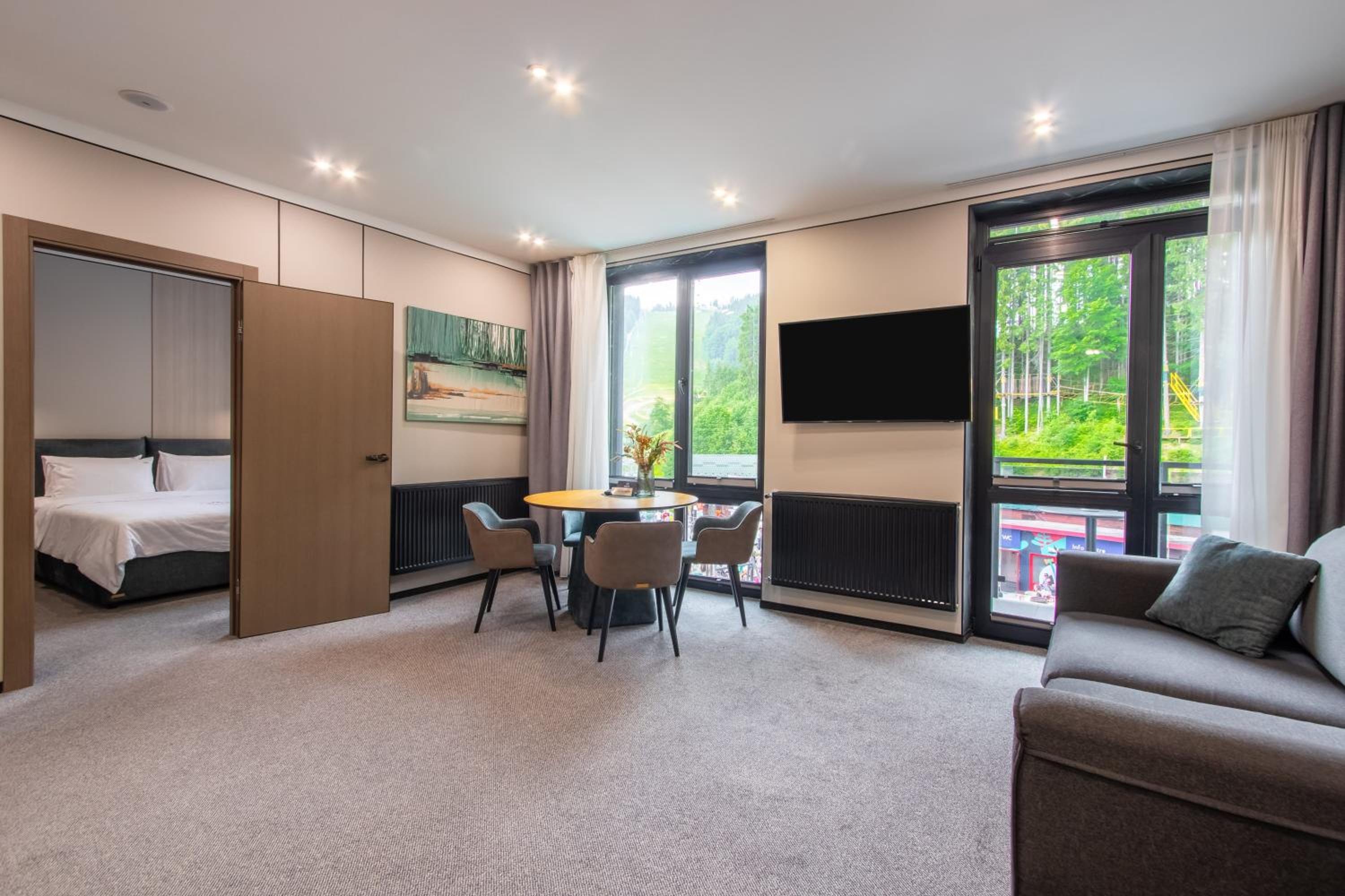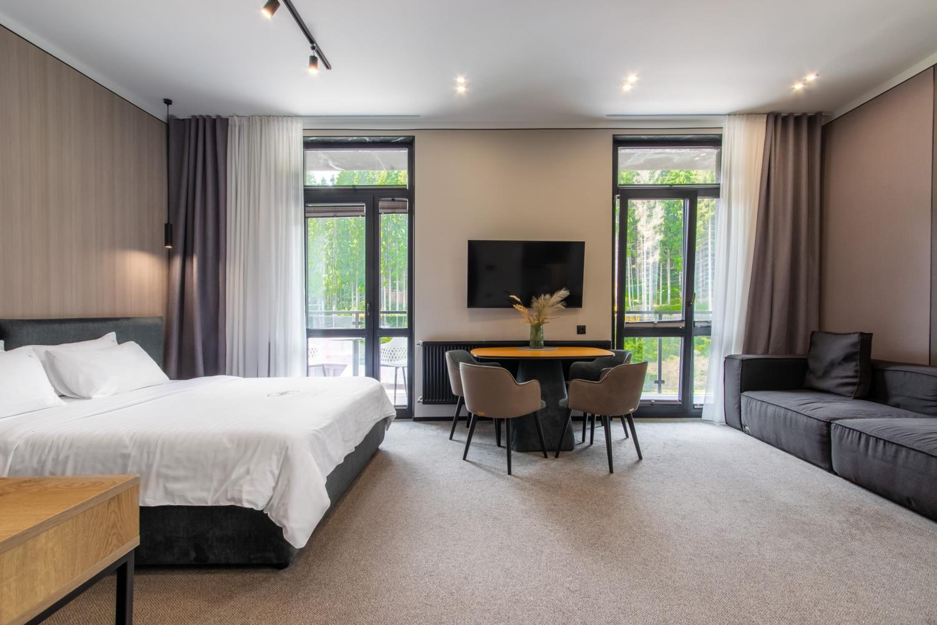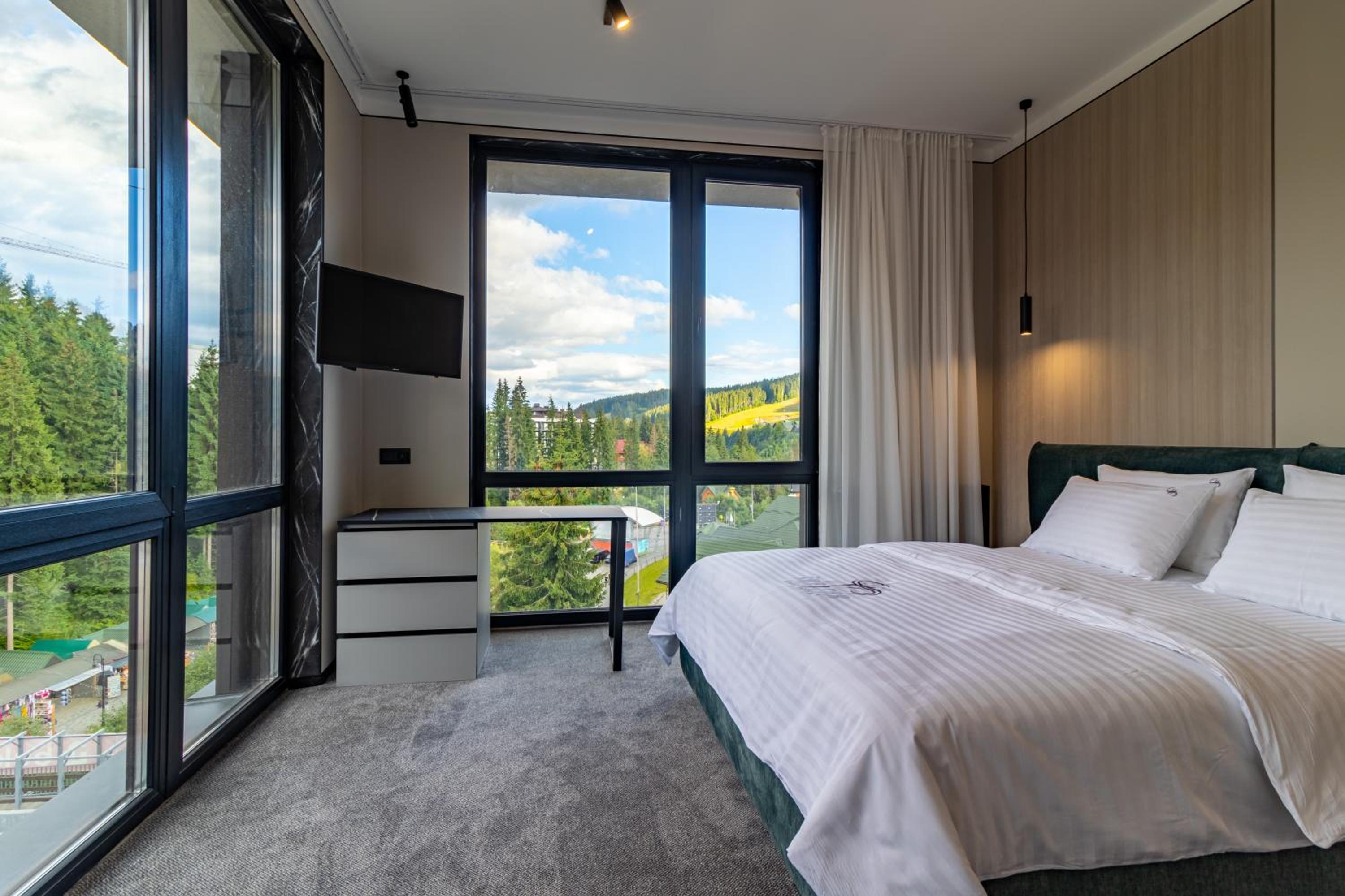 Все було дуже зручно і комфортно. Професійний привітний персонал. В апартаментах чисто, комфортно, затишно. Достатньо місця. Зручні меблі. Хороша звукоізоляція. Особливо зручне розташування готелю і обладнаний скі-рум. Зранку забрав спорядження зі своєї шафки: все сухе, тепле. Вийшов з готелю, пристібнув лижі і вже на подйомнику: 2 або 7. Ввечері - басейн, джакузі, сауна.