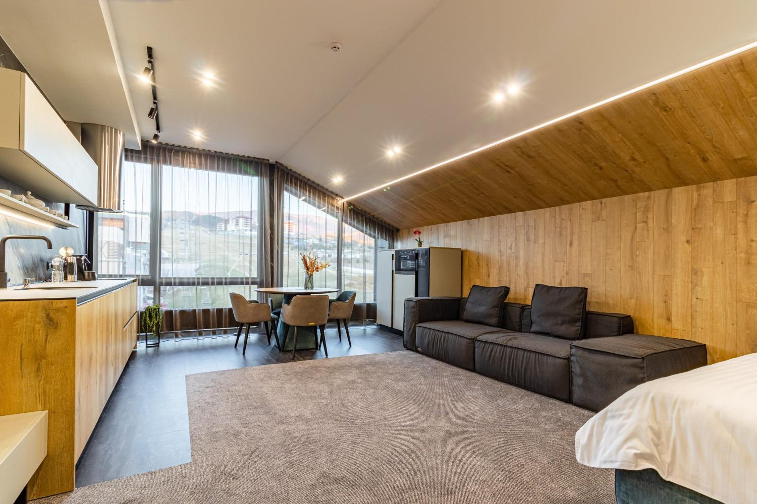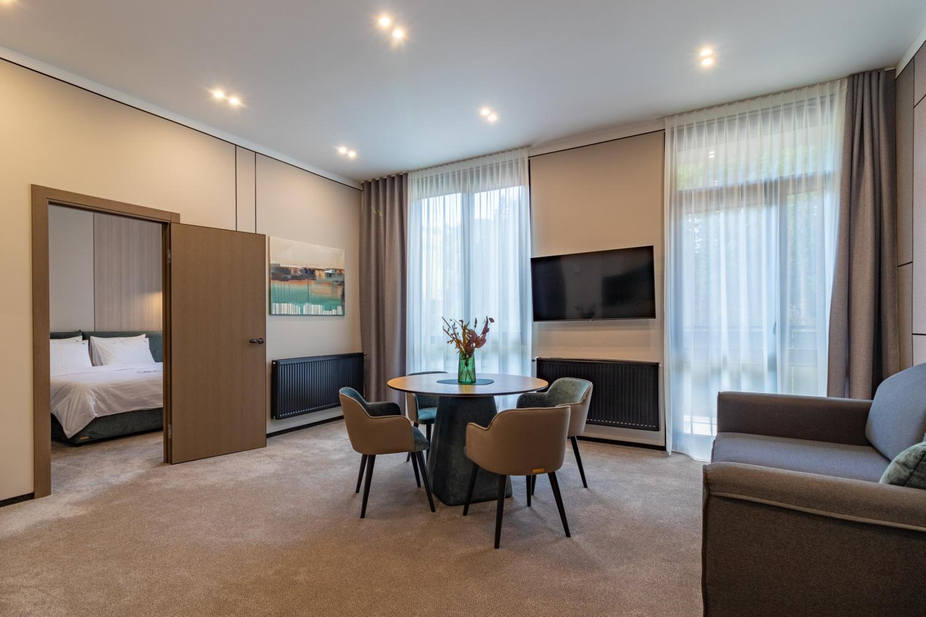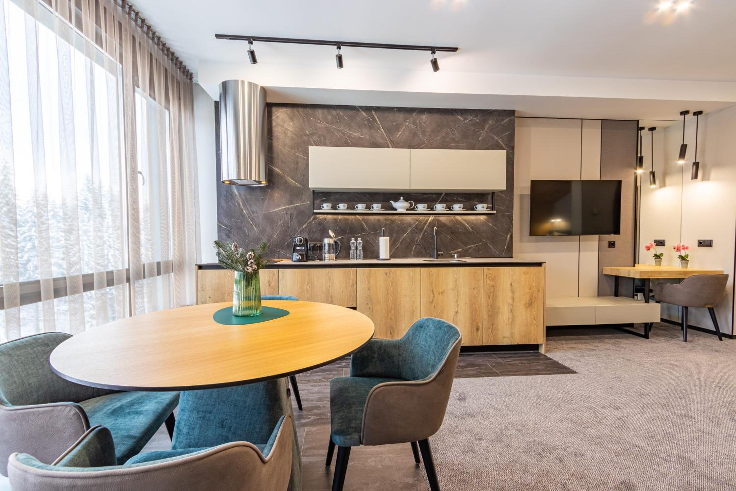 Все було дуже зручно і комфортно. Професійний привітний персонал. В апартаментах чисто, комфортно, затишно. Достатньо місця. Зручні меблі. Хороша звукоізоляція. Особливо зручне розташування готелю і обладнаний скі-рум. Зранку забрав спорядження зі своєї шафки: все сухе, тепле. Вийшов з готелю, пристібнув лижі і вже на подйомнику: 2 або 7. Ввечері - басейн, джакузі, сауна.