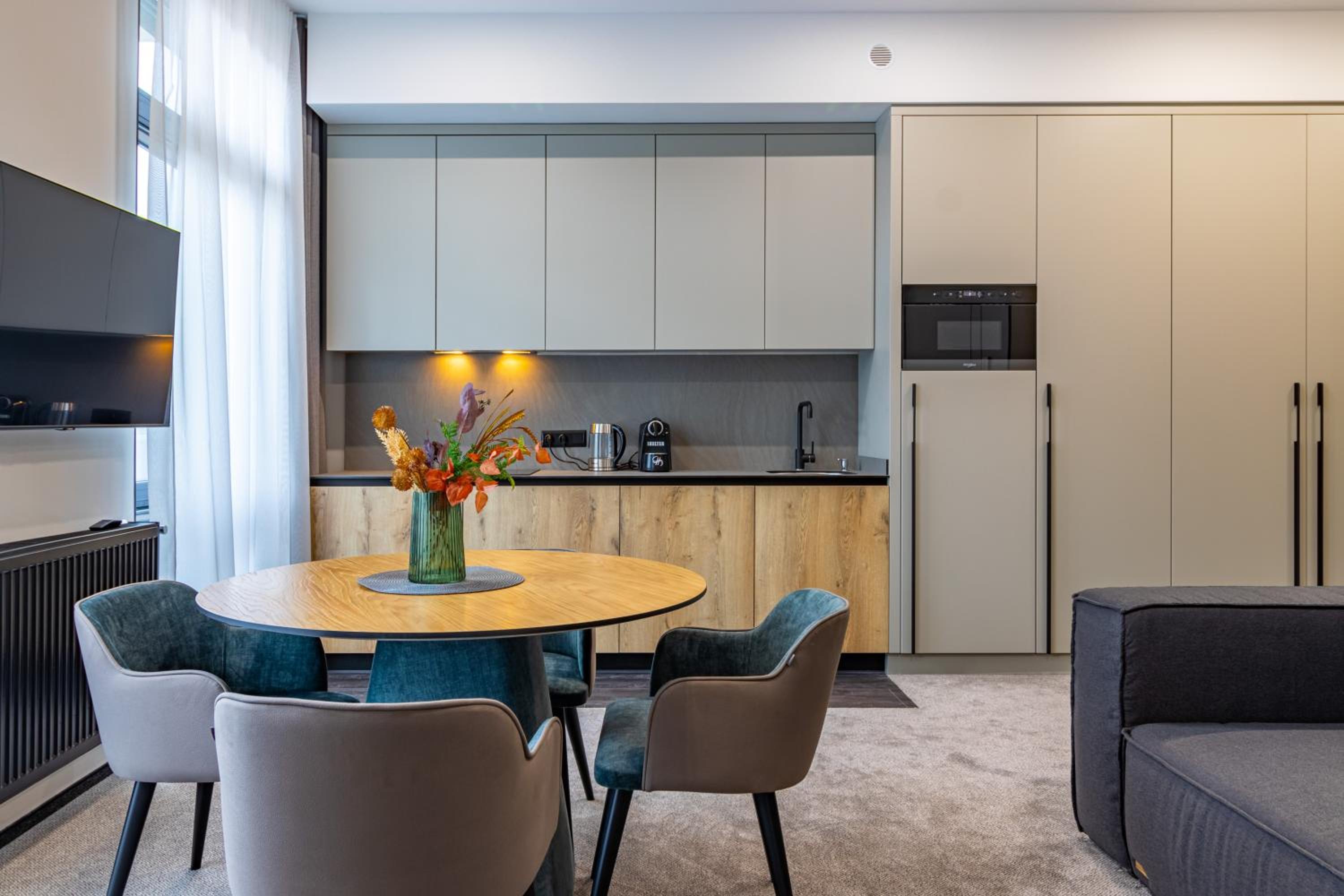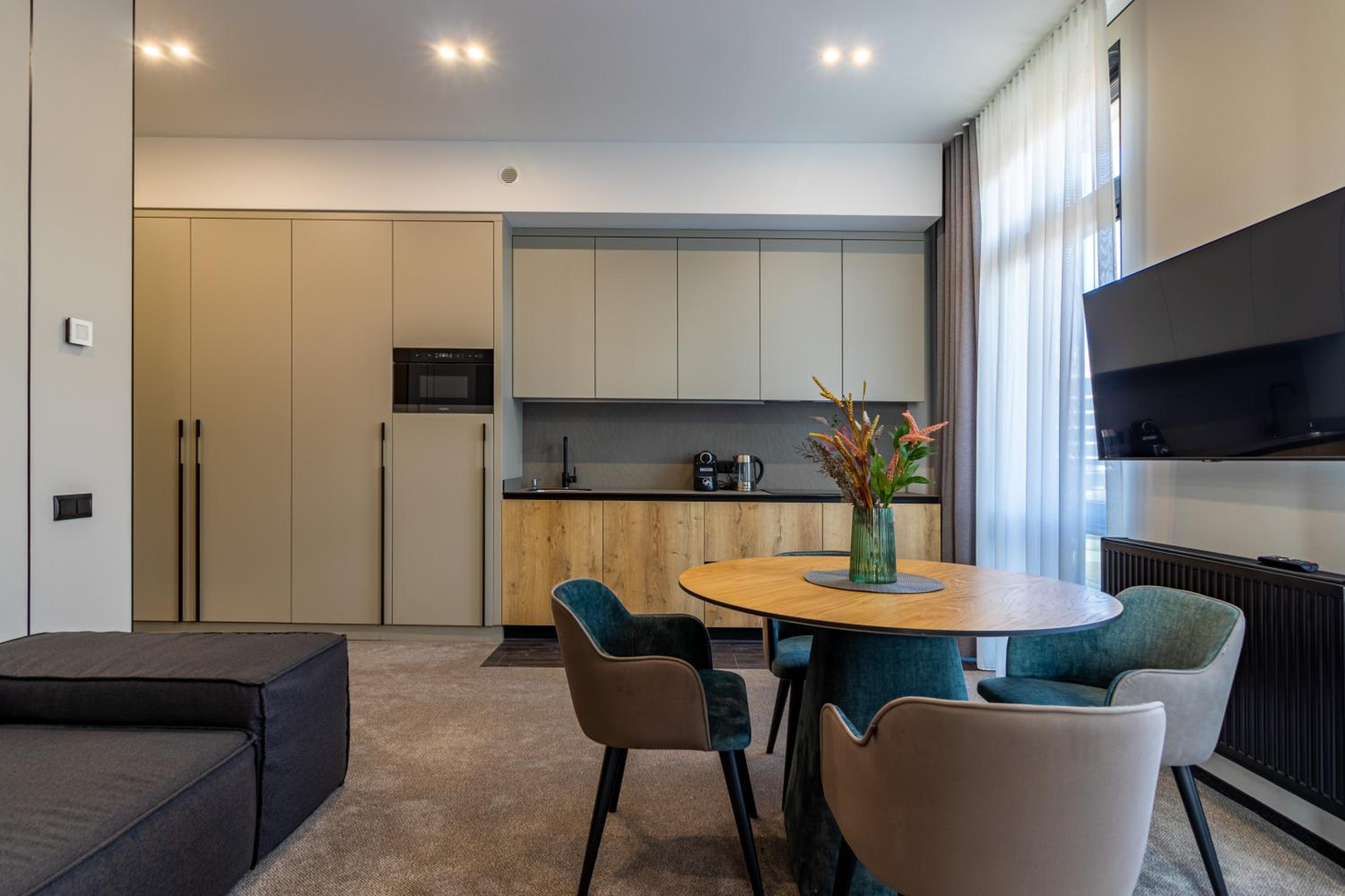 Each unit is equipped with a well-fitted kitchen, flat-screen TV, and cozy seating area. Enjoy the convenience of free WiFi, safety deposit box, and private bathroom with plush bathrobes.