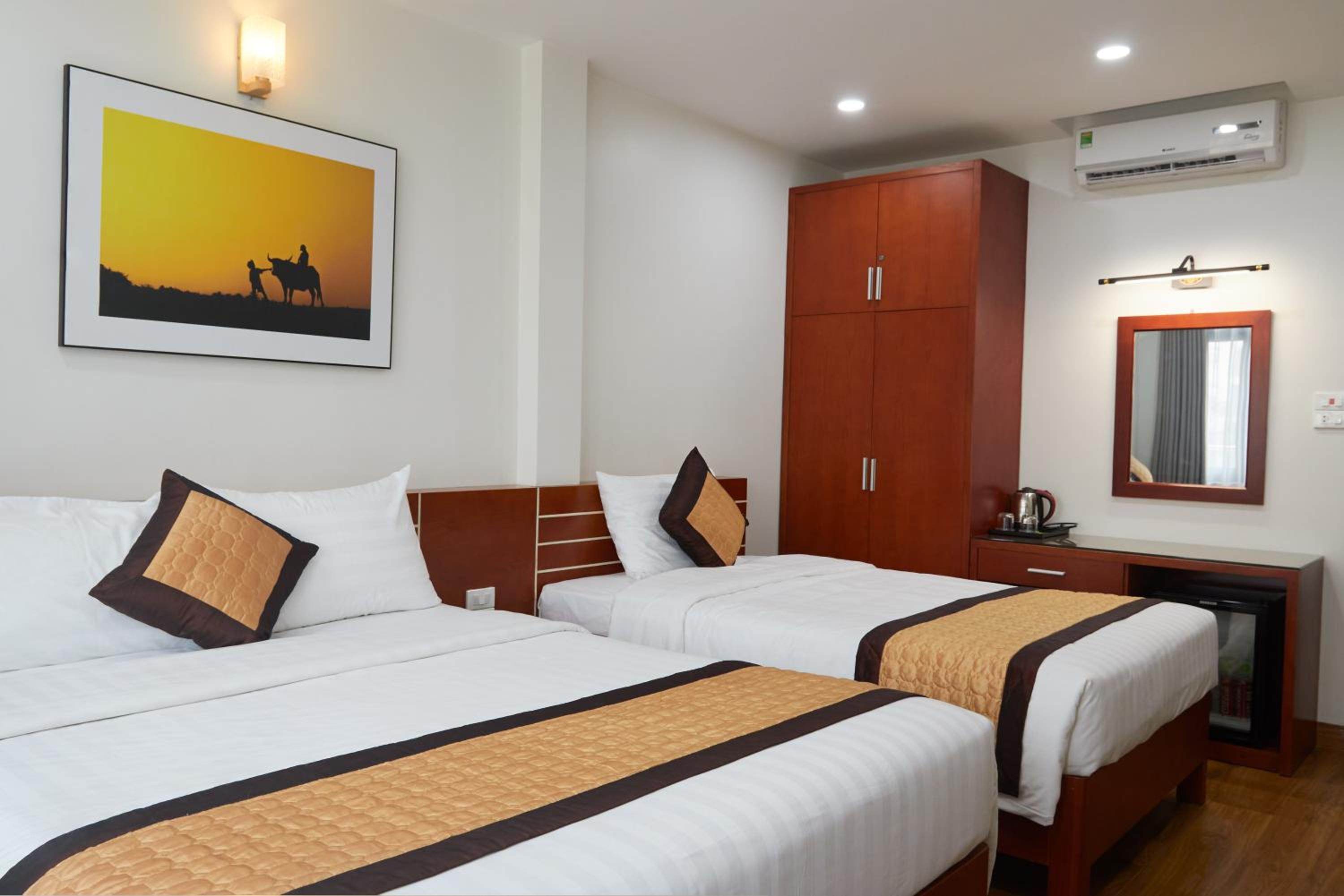 Really comfortable beds. Very clean and quiet room (at the back). We had a twin room with two really big and good beds. For the first time in Vietnam not waking up with back pain).