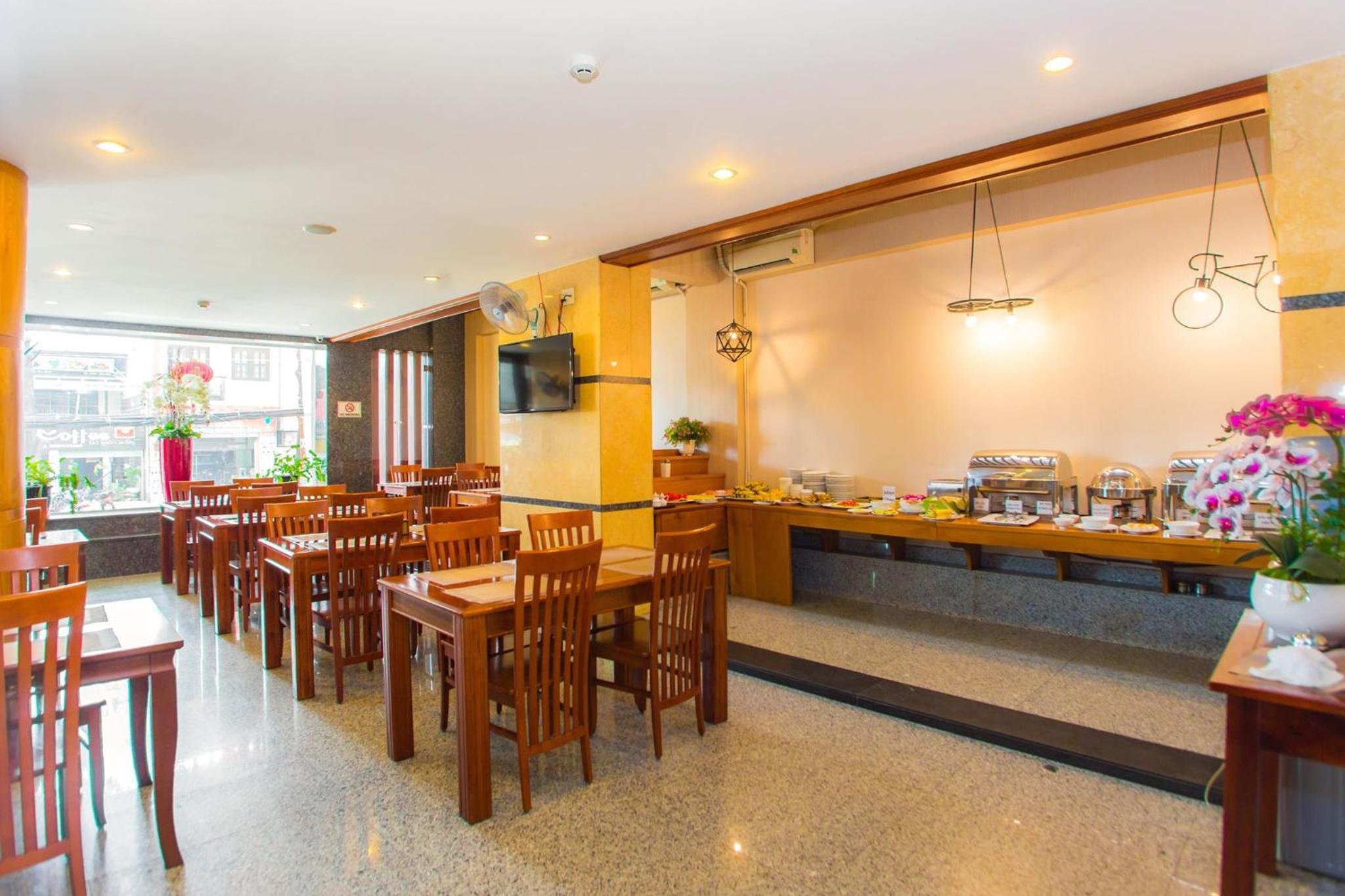 Start your day with a delicious breakfast at the hotel's restaurant, serving a variety of Asian and Vietnamese dishes. Guests can also unwind at the snack bar with a selection of cocktails. Additionally, take advantage of the free business centre for your work needs.