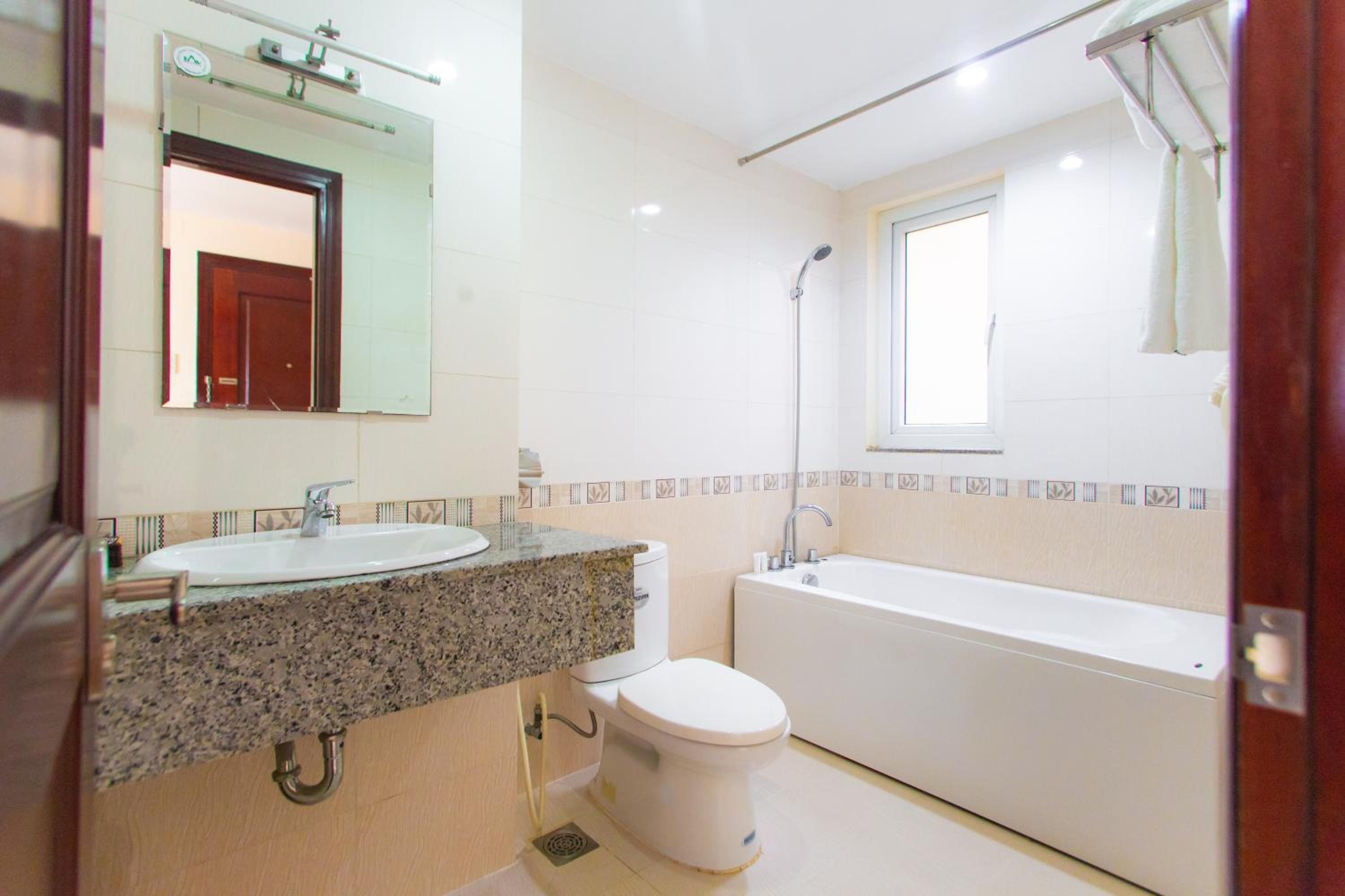 Nice bathroom and breakfast included.