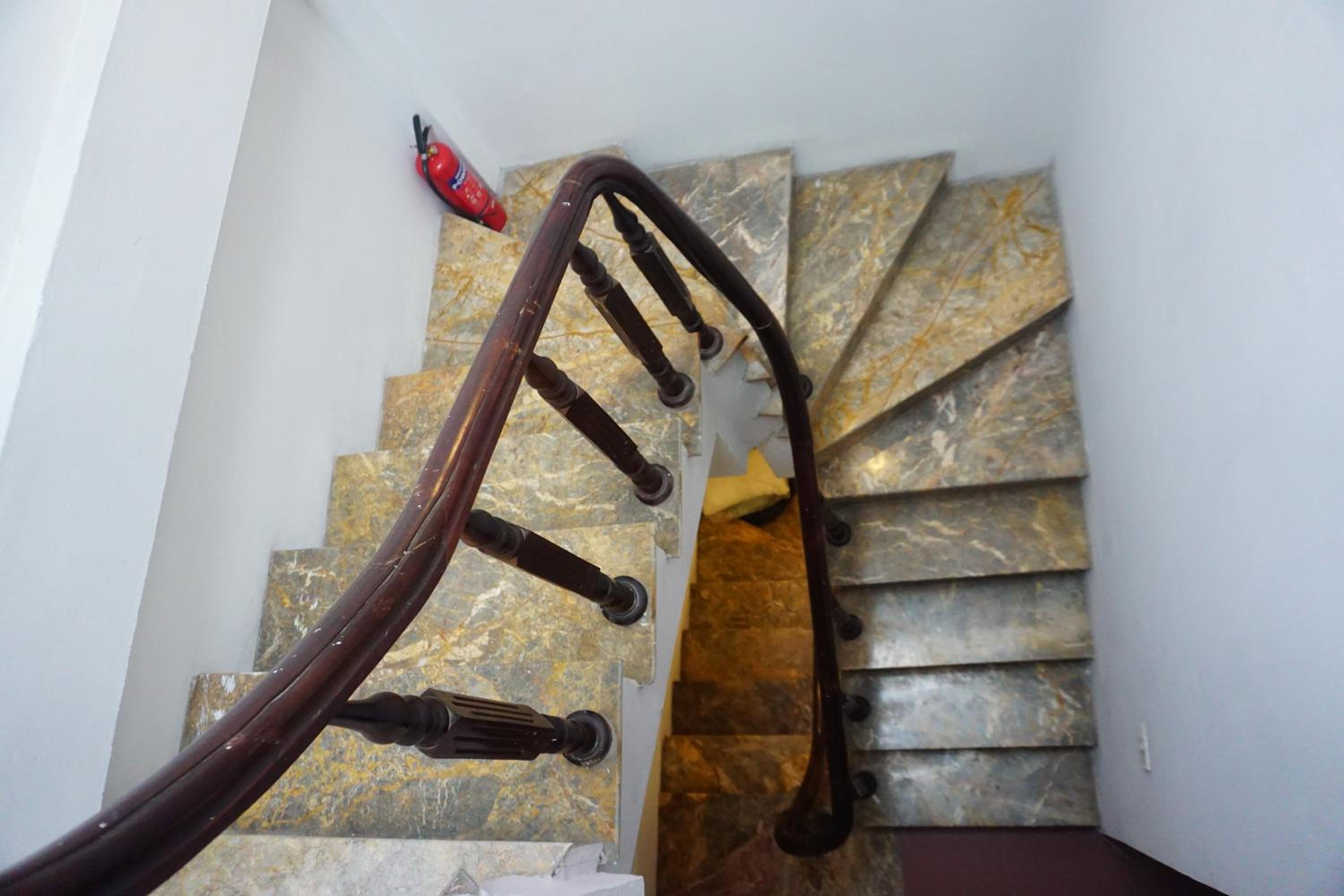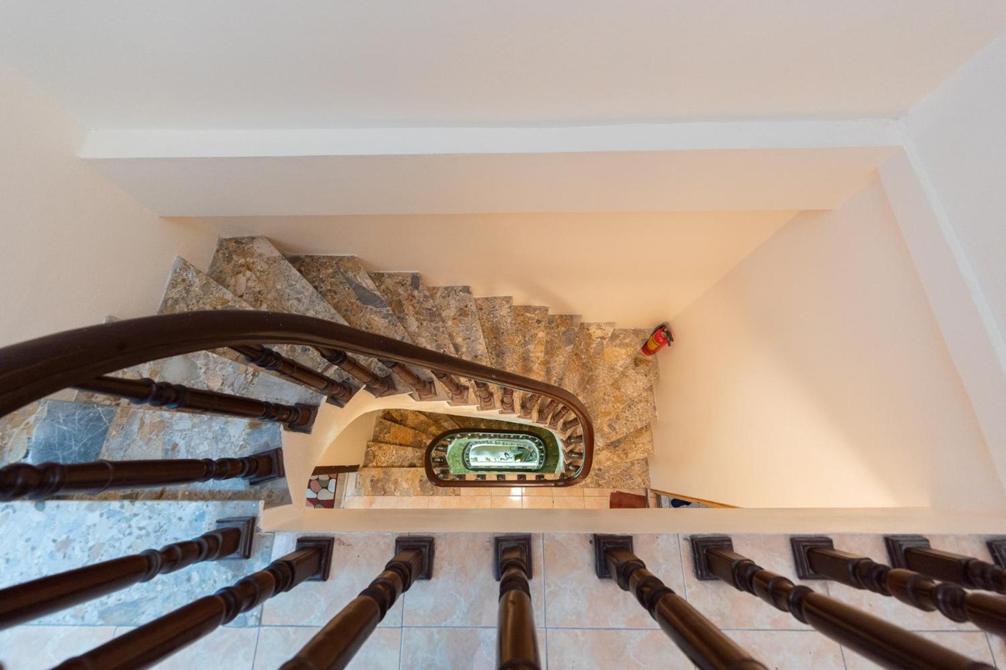 On the 4th floor. Stairs very small so was not great getting upstairs.