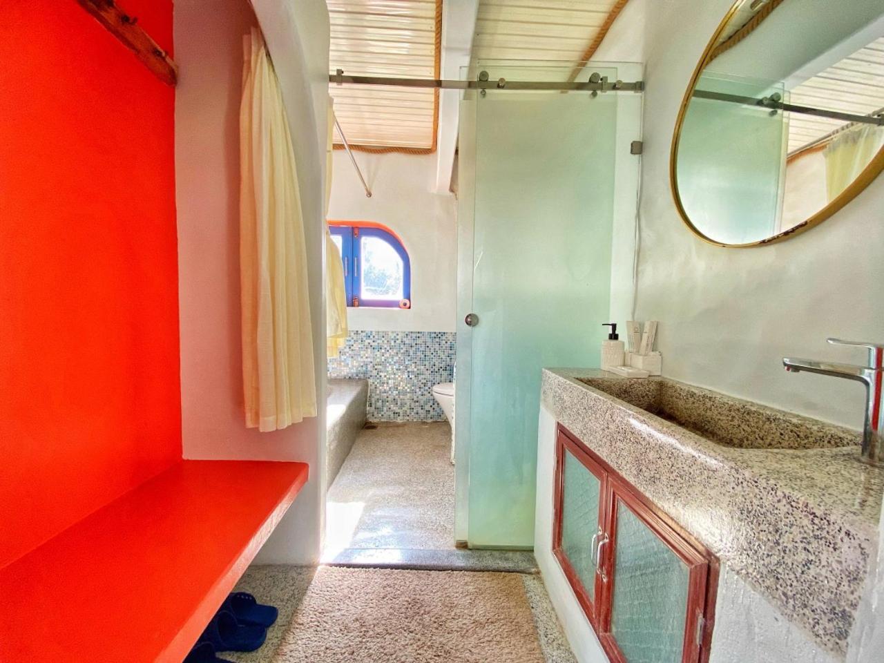 Izba je však veľmi malinká, na fotkách to tak nepôsobí, ale je tam naozaj veľmi malý priestor na pohyb. Posteľ, resp. matrac je veľmi tvrdý, občas som mala pocit, že spím na skale. Treba rátať s tým, že takýto koncept hotela + hotel zasadený do prírody prináša do izieb aj veľa hmyzu a jašteríc 😏 V takýchto lokalitách nemám problém so zvieratami, ale teda prvotný šok z jašteríc bol na mieste. Izby by však potrebovali dôkladnejšie upratanie, myslím napr. vyčistenie rolovacích dverí v kúpeľni, vyčistenie klimatizácie a odsávania + vypratie závesov 😖