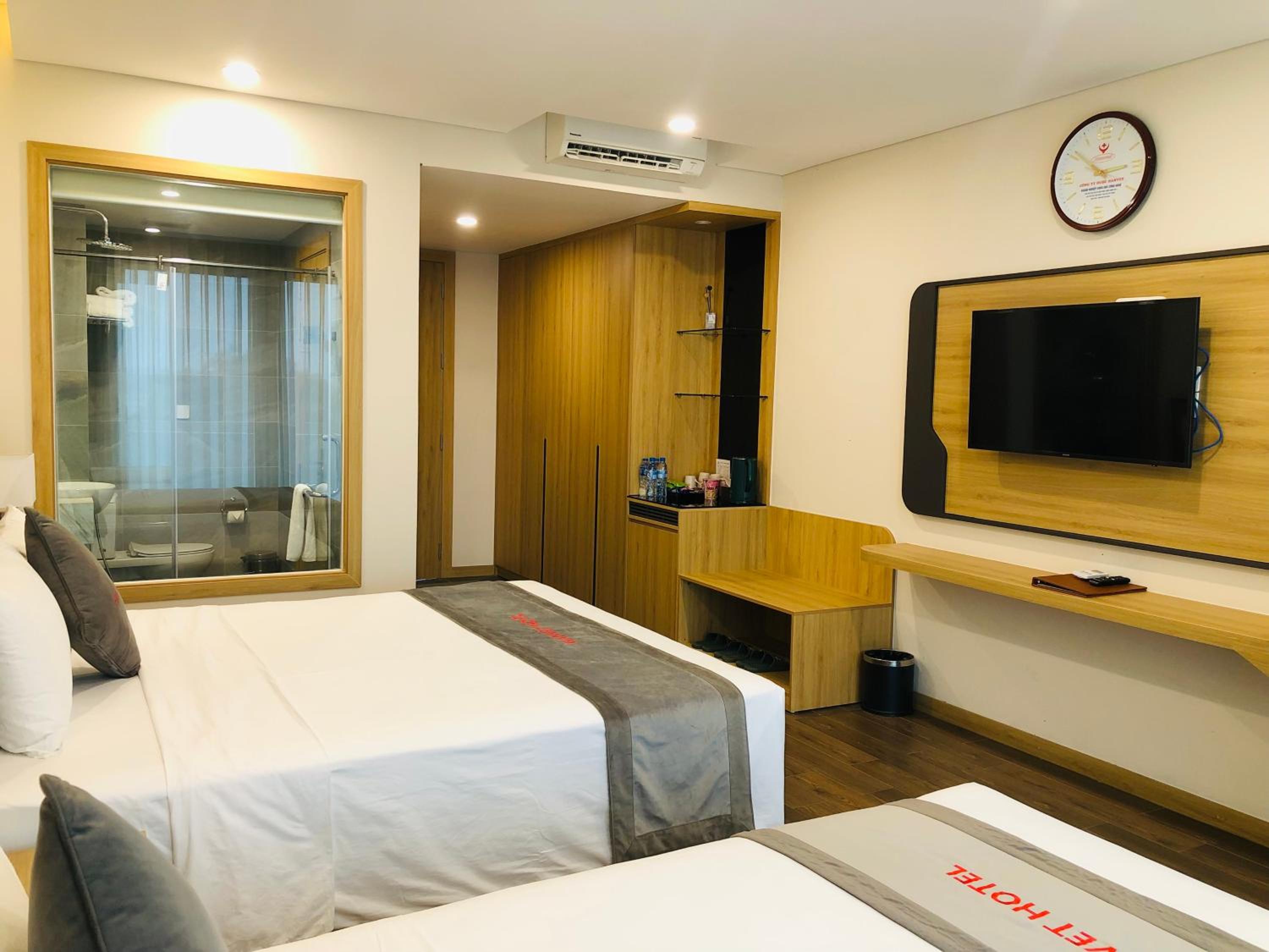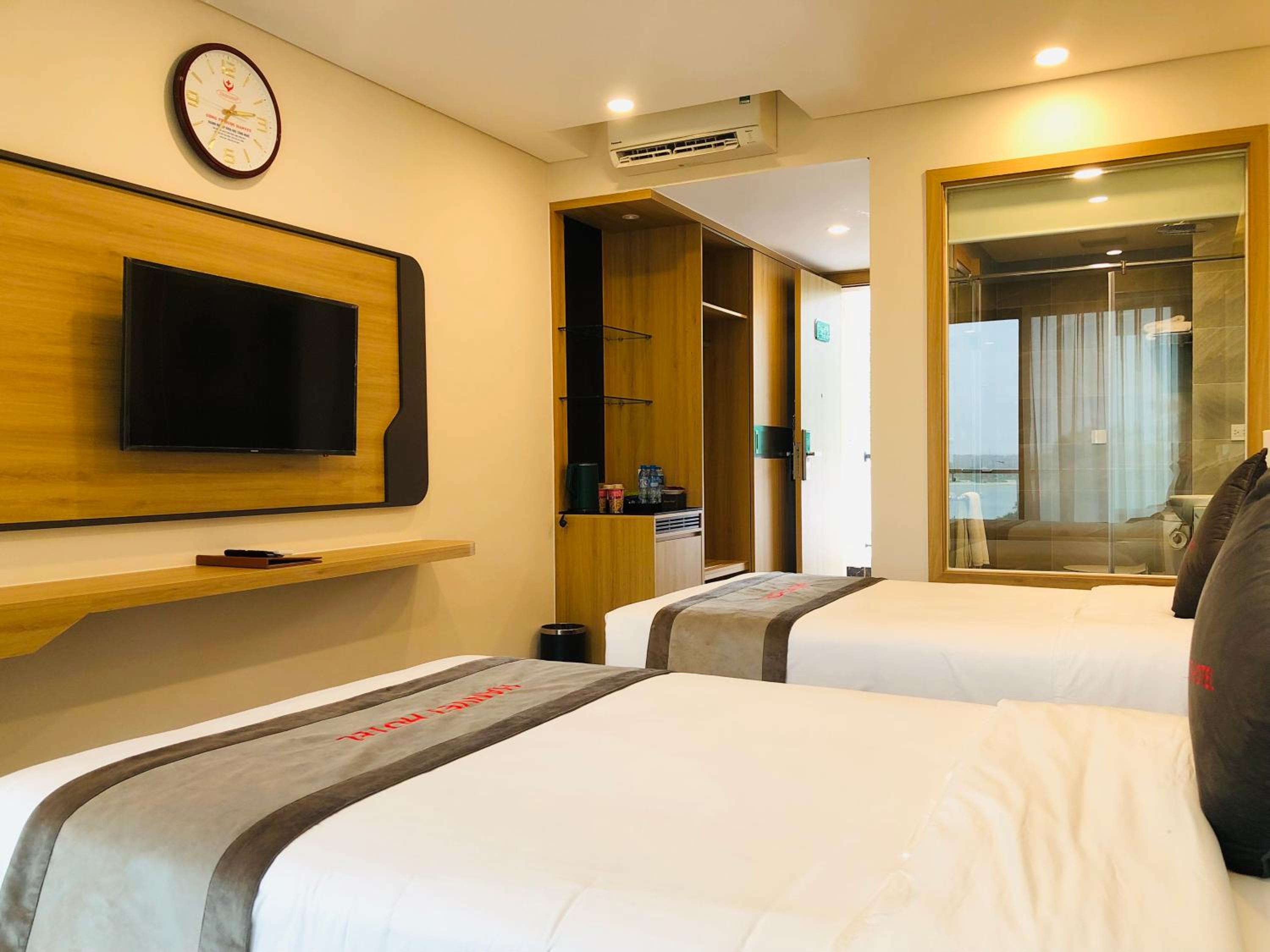 Hanvet Hotel Do Son offers a luxurious stay with air-conditioned rooms, each featuring a private terrace and modern amenities. Some rooms even boast breathtaking sea views from a private balcony, providing a truly unforgettable experience.