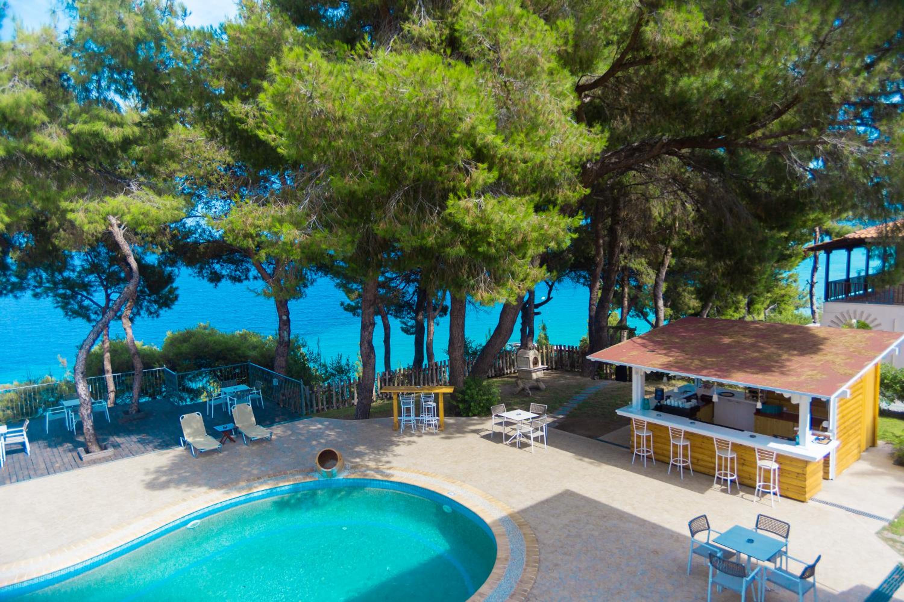 Experience the beauty of Chalkidiki at Hotel Evripidis, where you can enjoy direct access to the beach and breathtaking views over Toroneos Gulf. Relax by the swimming pool while the kids have a splash in their own pool, and make use of the children’s playground area. The air-conditioned rooms with balconies offer a comfortable retreat, and you can start your day with a delicious breakfast and enjoy homemade meals at the on-site restaurant. Book now for a memorable stay by the sea!