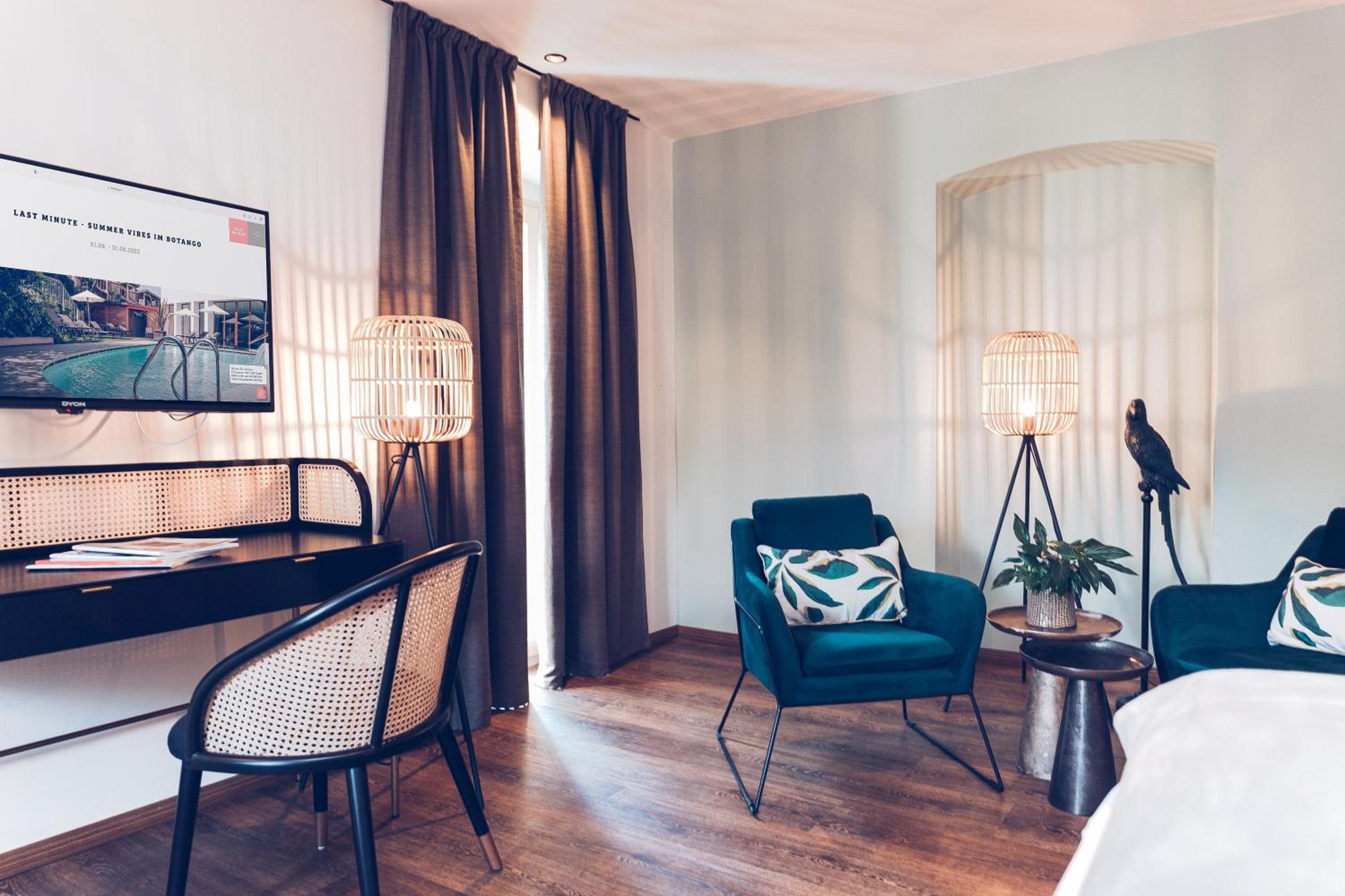 The bright rooms at BOTANGO are furnished with wooden decor and feature amenities such as a sofa, work desk, and en suite bathroom. Enjoy modern conveniences like satellite TV, coffee machine, and a safe for a comfortable stay.
