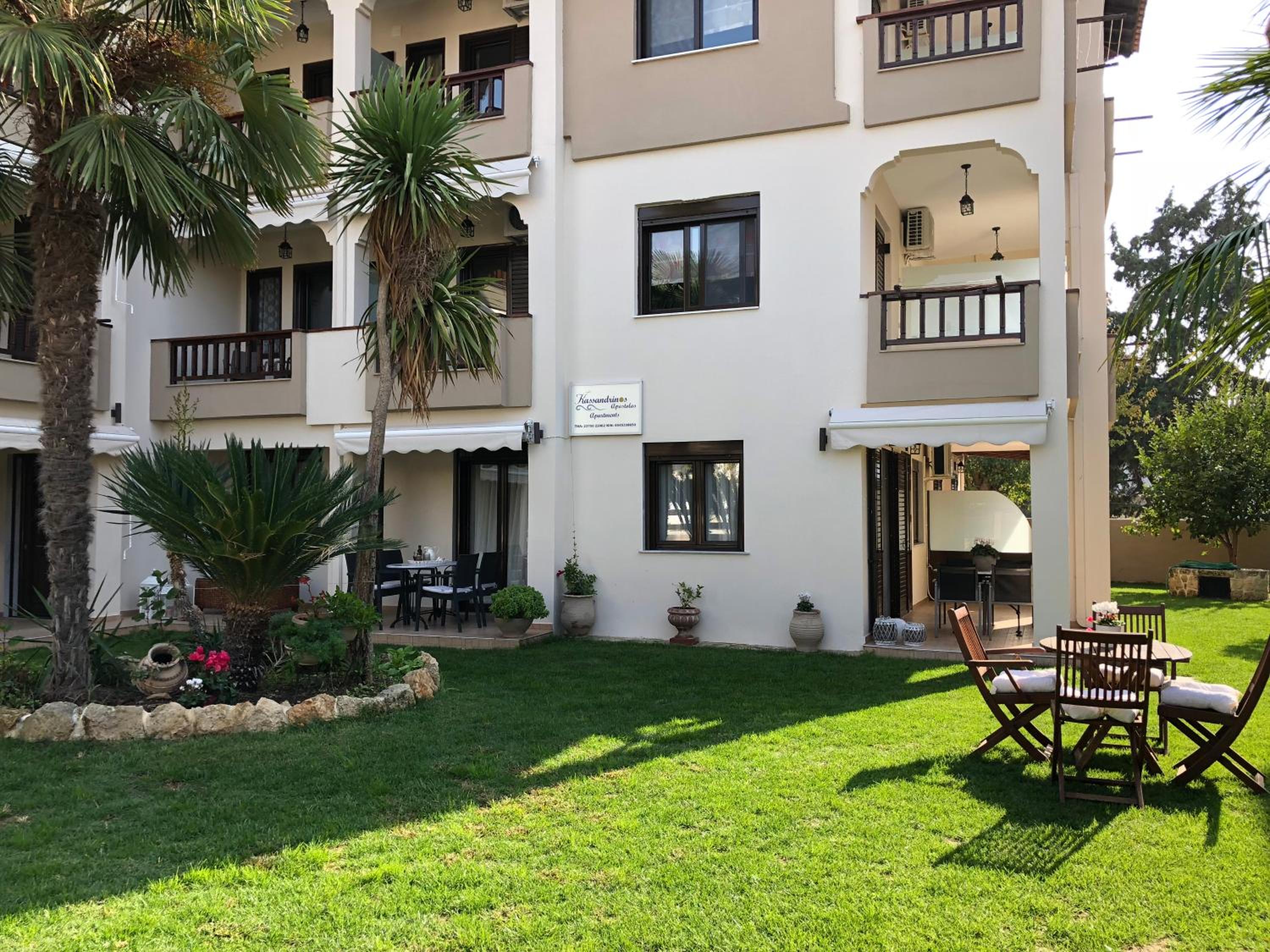 Experience a luxurious stay at Kassandrinos apartments apostolos, just steps away from Nikiti Beach. Each room offers modern amenities including air conditioning, a flat-screen TV, and a private bathroom. Some rooms feature a balcony with garden views, perfect for relaxation. Enjoy the convenience of room service and stay connected with free WiFi throughout the property.