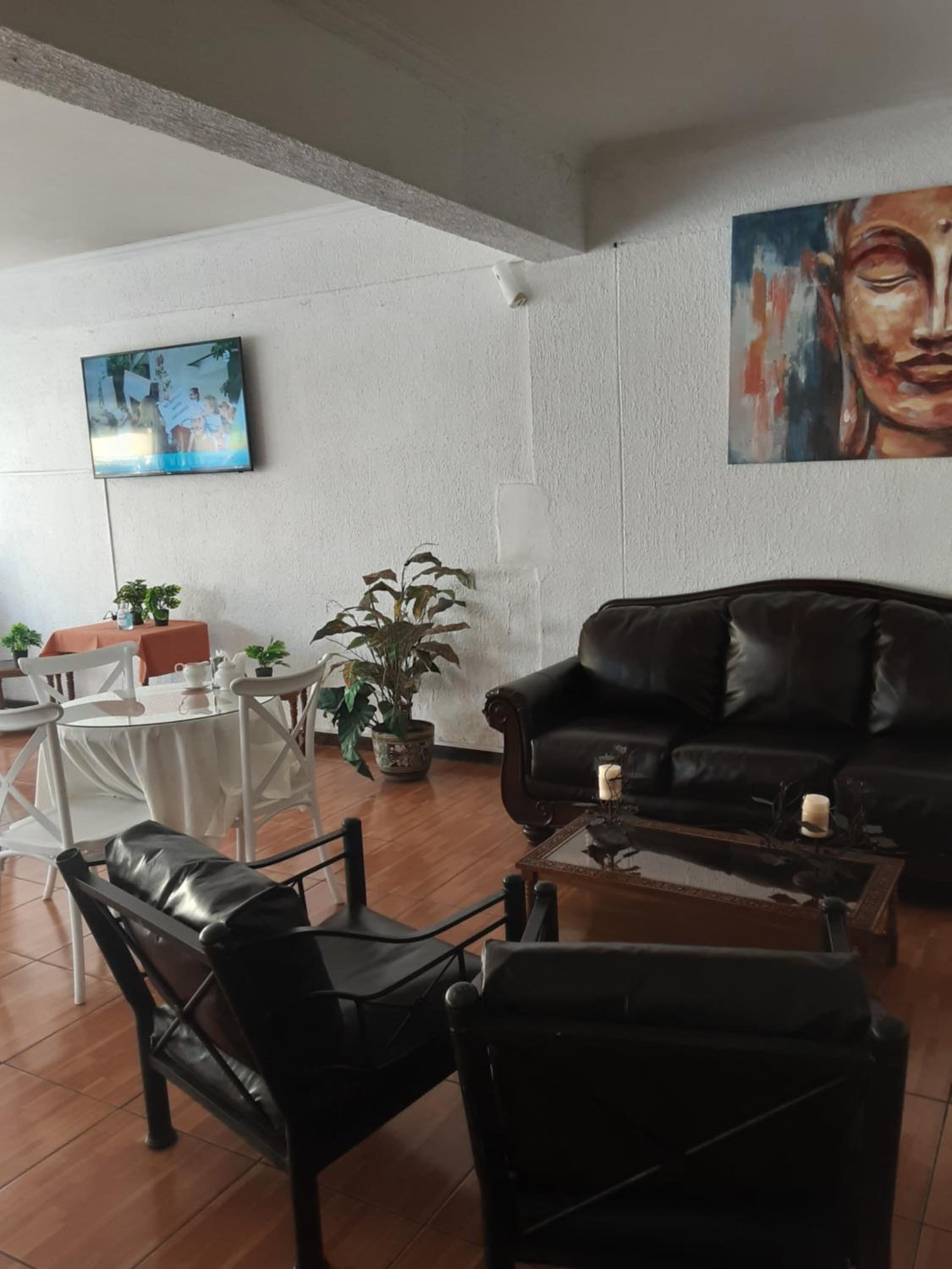 Bathroom would be much better with shower cubicle. Non-Spanish speaking guests would be attracted if restaurant had printed menu that they can easily translate. Breakfast had confusing changes each day.