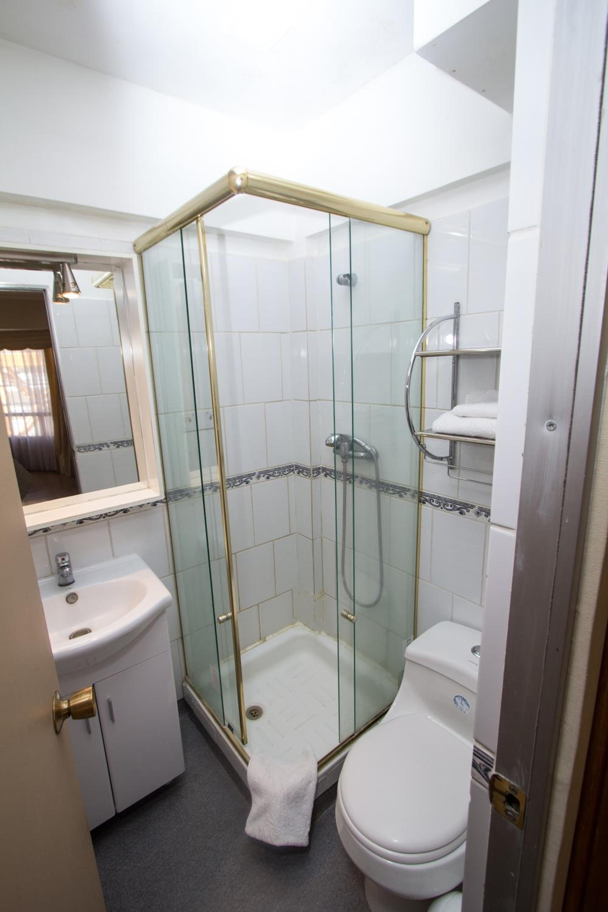 room was clean and bright. hot shower was hot enough. there’s a electric heater.