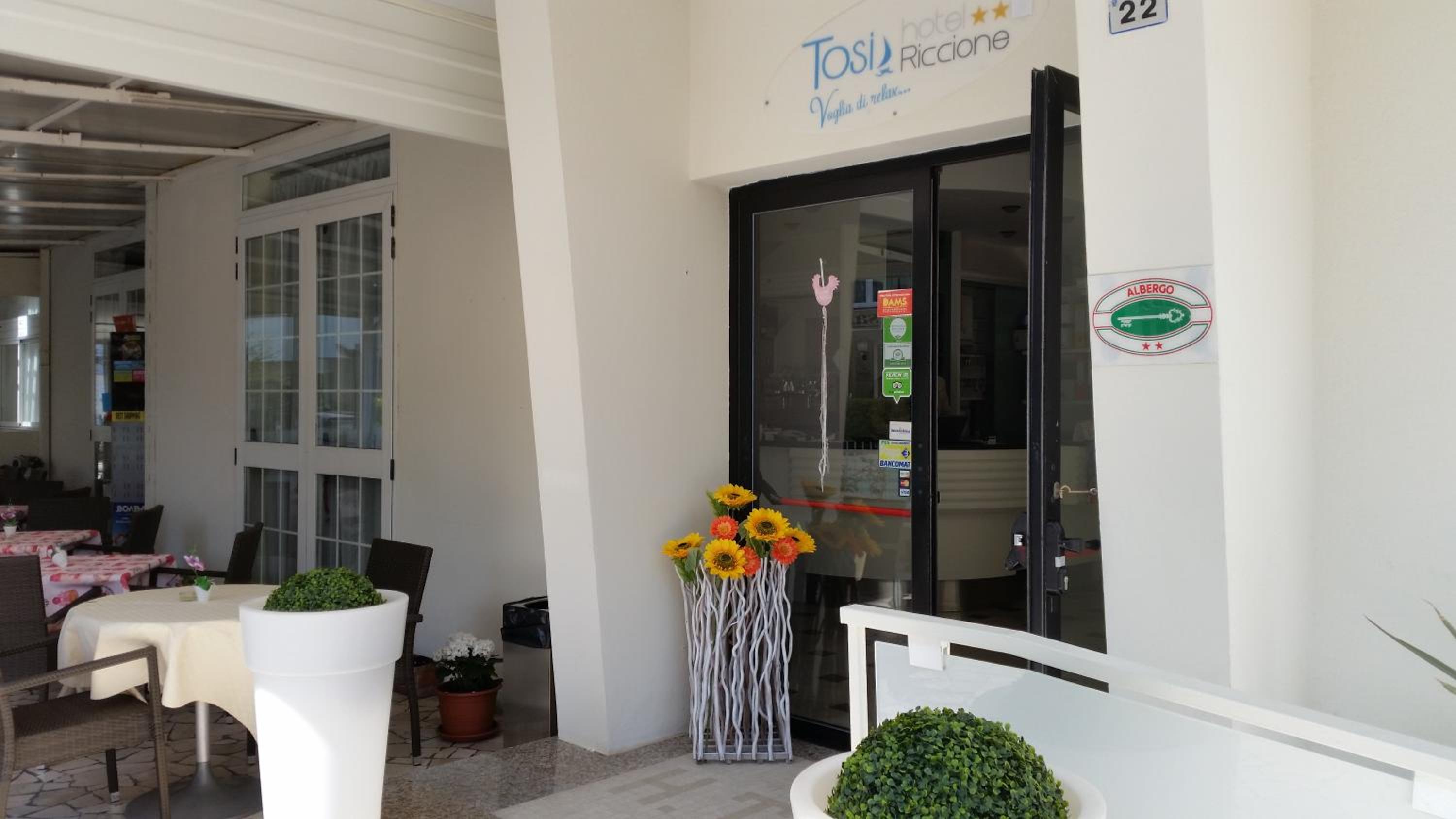 Hotel Tosi, just 300 meters from Riccione Beach, offers a garden, private parking, and a terrace. Enjoy a comfortable stay with air-conditioned rooms, free WiFi, and a restaurant on-site.