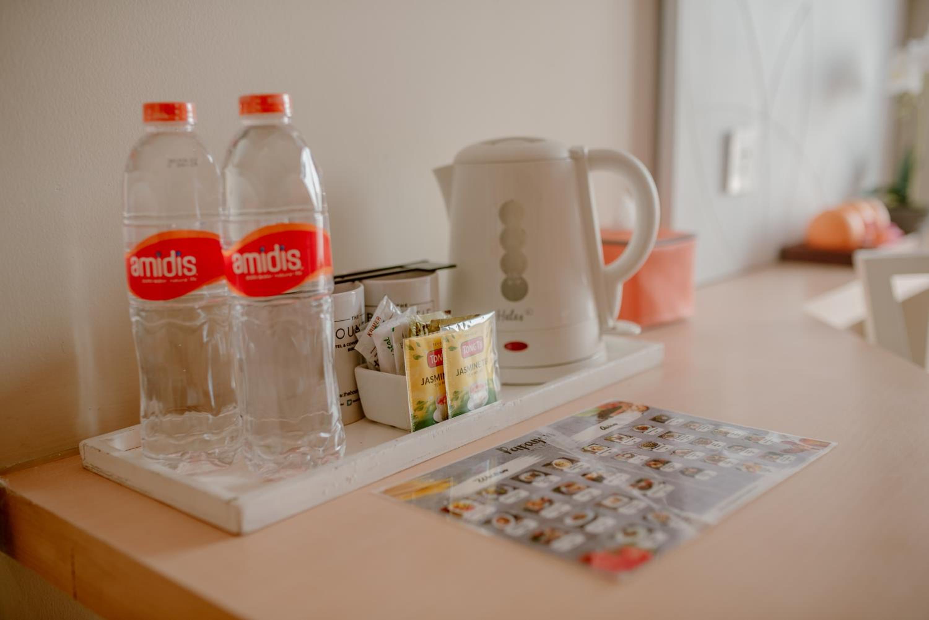 This is not a hotel with restaurant. This is a restaurant that has a hotel. Water in the shower drained forever. When we shower, the water would stay it formed a pool that reached my ankle. We called the staff, he fixed it but it stayed the same. Need to be cleaned thoroughly. Hair in the toilet, dusty cupboard.