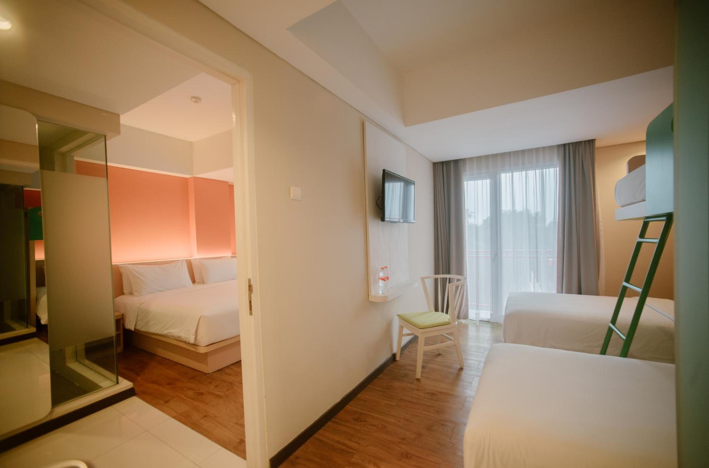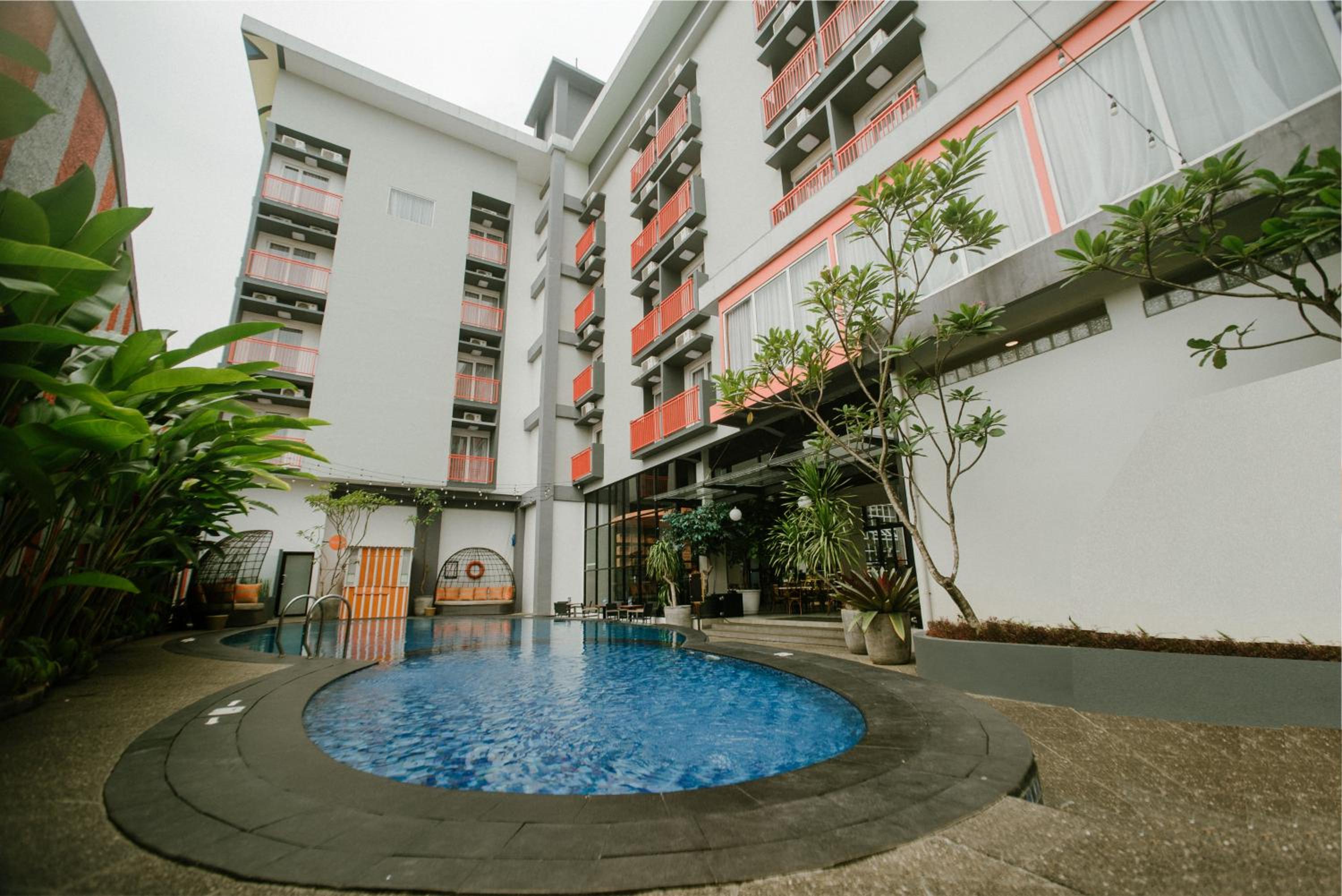 The Bountie Hotel and Convention Centre Sukabumi offers a vibrant stay with its stylish rooms featuring colourful decor and modern amenities. Guests can enjoy a refreshing dip in the outdoor pool and indulge in delicious meals at the on-site restaurant.