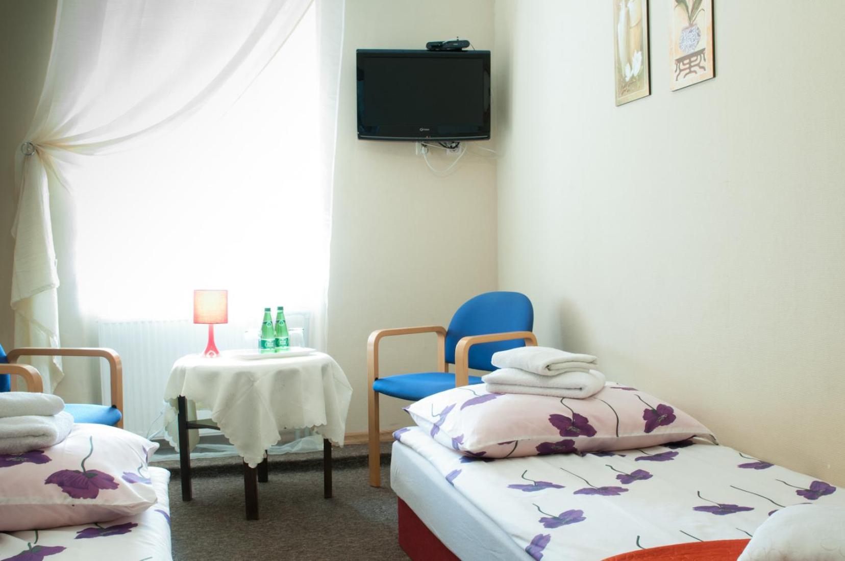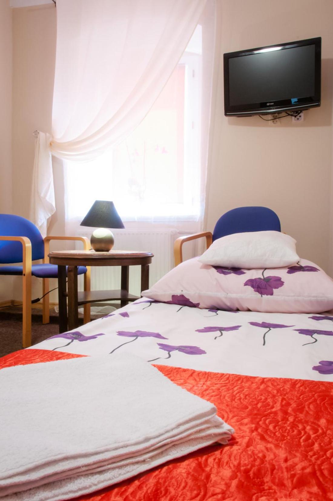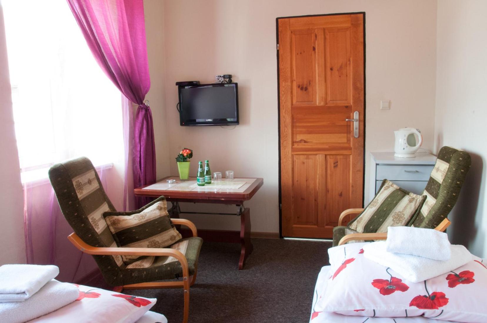 Wynajęliśmy pokój z łazienką, pokój mieścił się w budynku przy HOTELU ale na drzwiach wejściowych miał napis HOTEL. Cena 480 zł na 2 noce. Niestety, pokój okazał się całkowicie inny od pokoi, przedstawionych na zdjęciach.