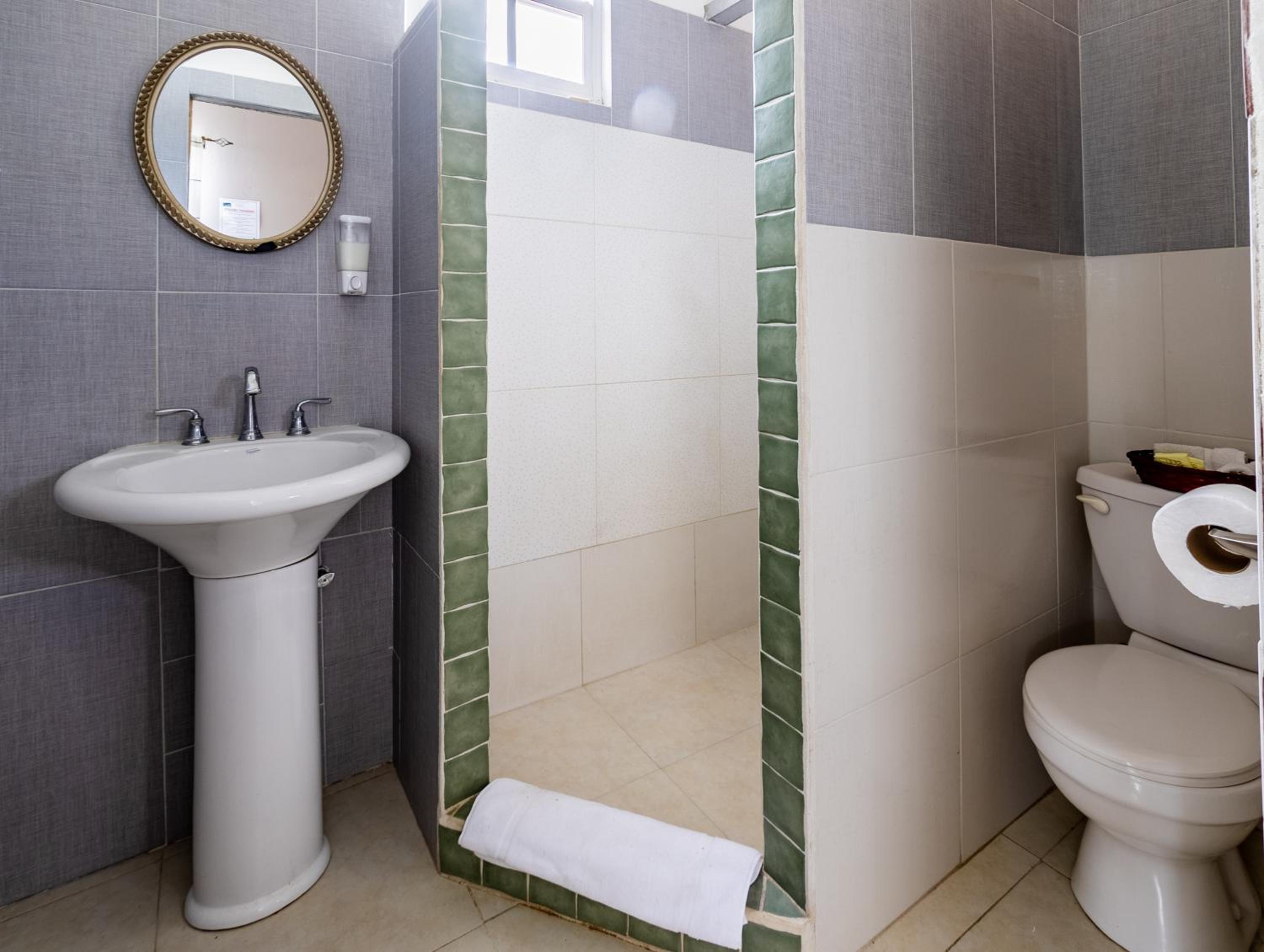 The bathroom was down stairs and it would have been nice to have some drawers in bedroom but staff did supply many coat hangers